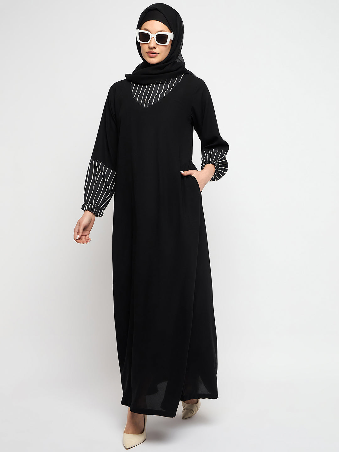 Discover elegance in simplicity with the A-line Abaya. Tailored with a shirt collar and puffed sleeves, it showcases timeless style. Crafted from breathable Nida matte fabric, this solid, modest abaya ensures comfort for Islamic women seeking both grace and contemporary sophistication.
