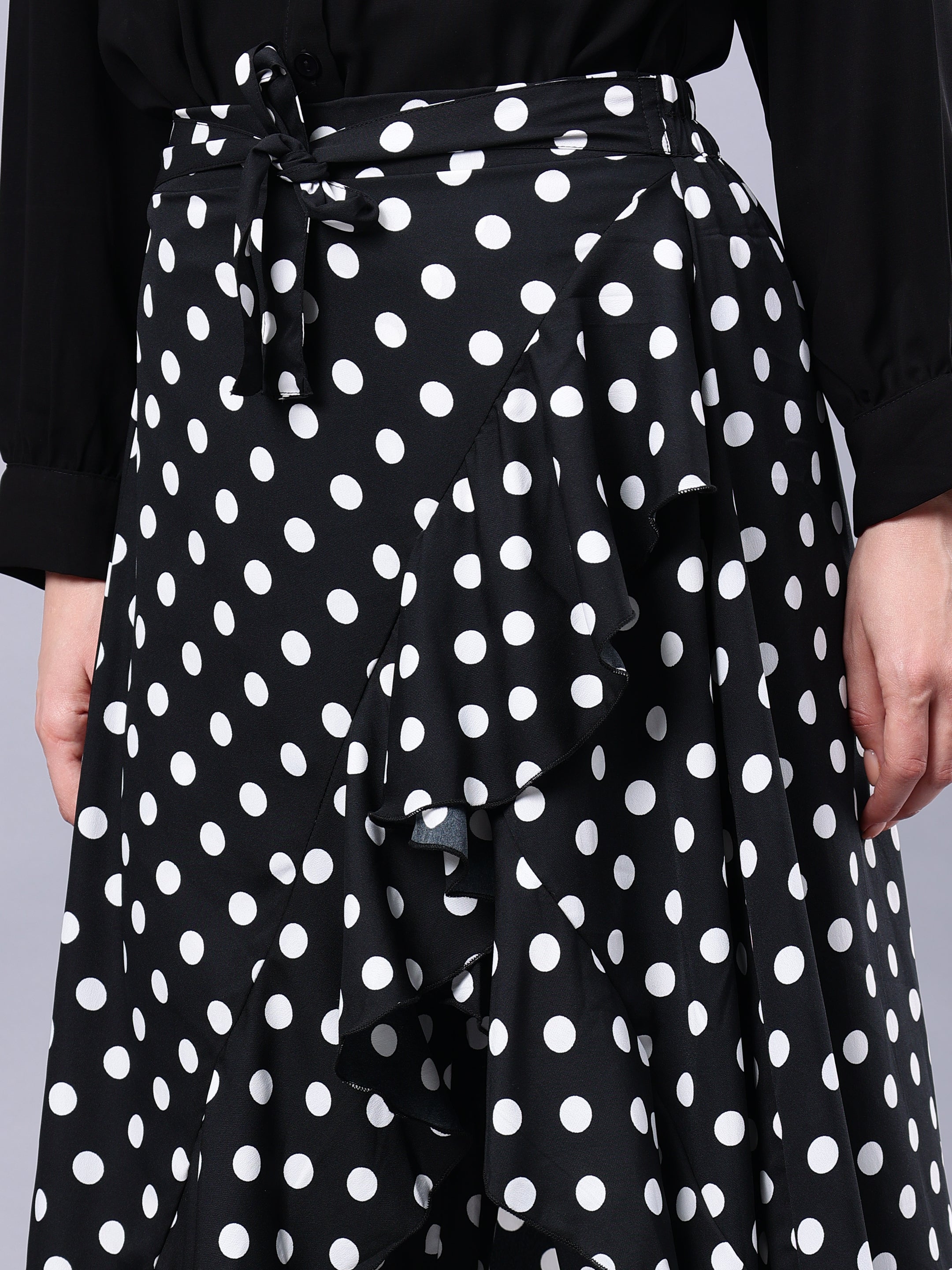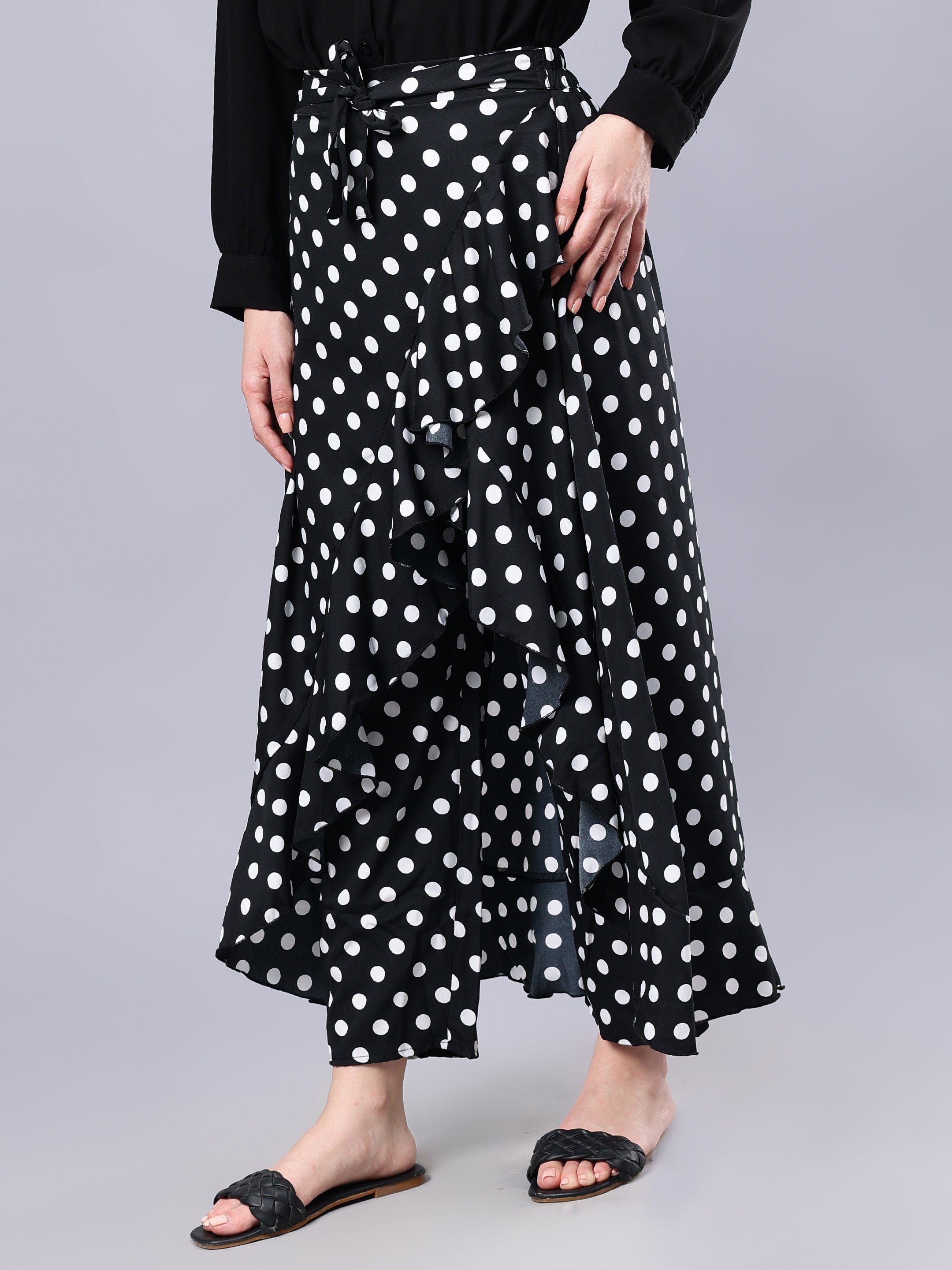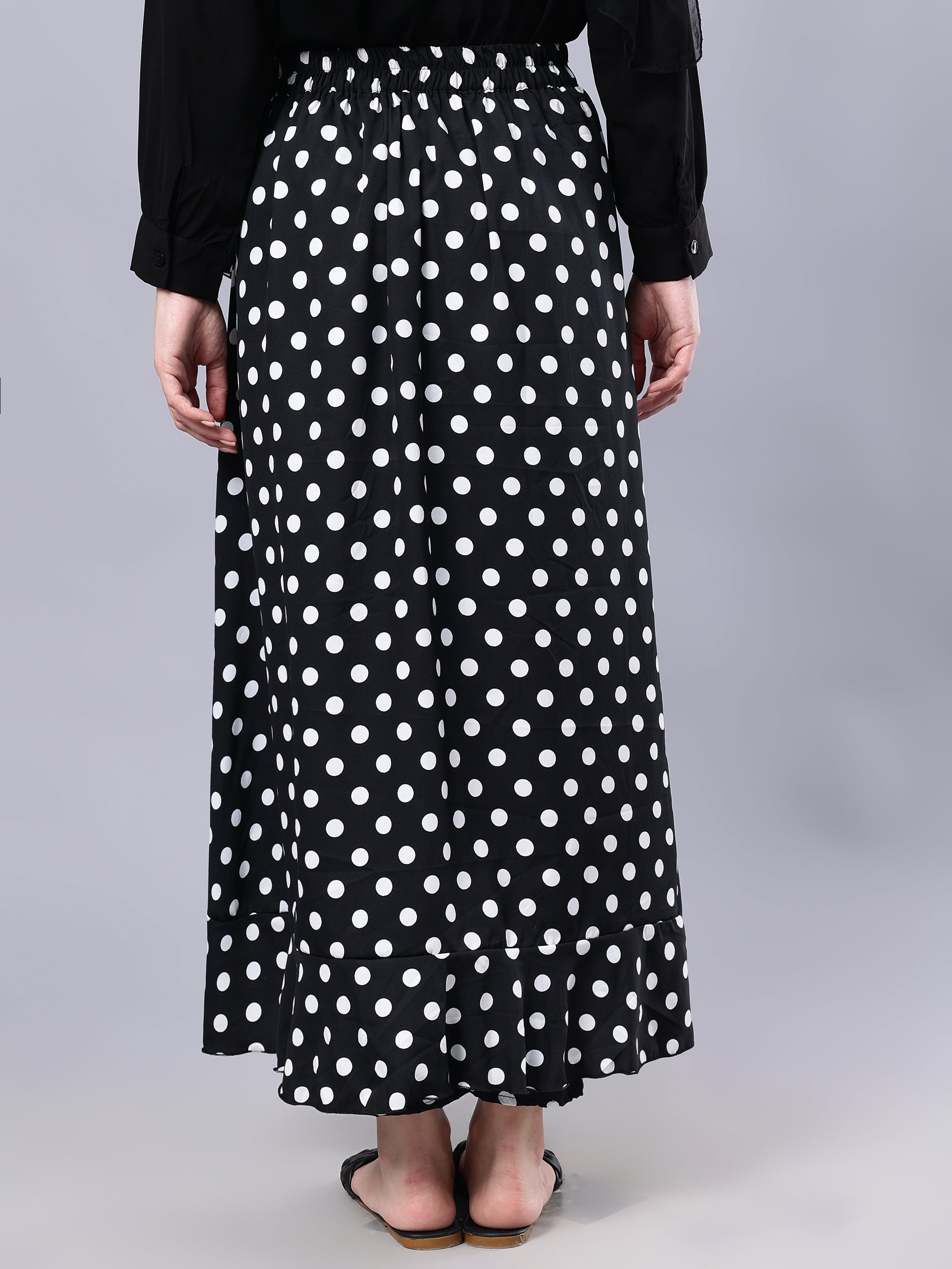 Enhance your style with our Nabia skirt adorned in timeless black and white polka dots. Made from comfortable crepe fabric with a convenient drawstring closure, it effortlessly complements chic hijabs, tunics, shades, and your favorite shoes, offering a glamorous and versatile ensemble.