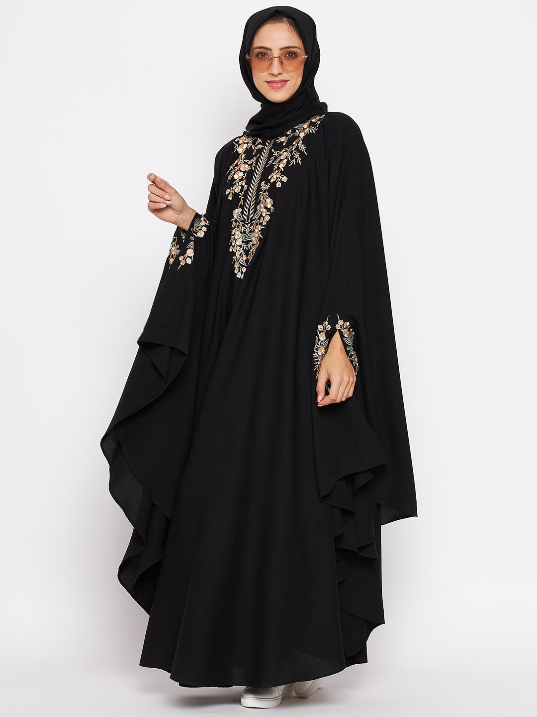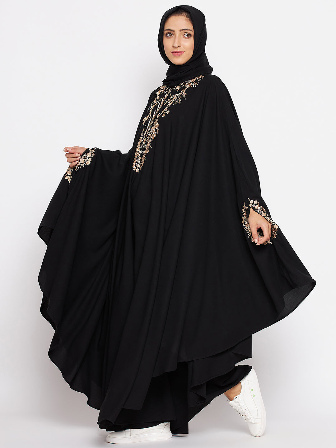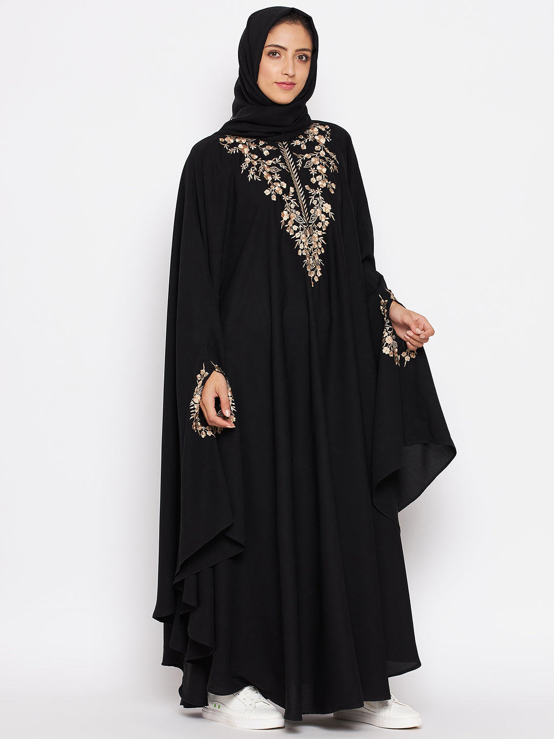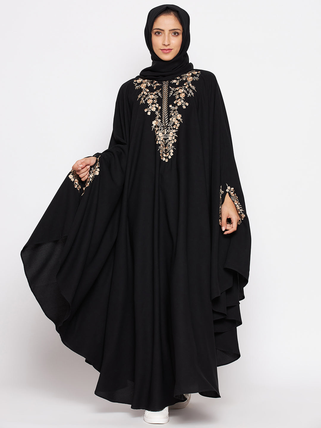 Chikan Hand Embroidered Irani Kaftan Abaya with Black Georgette Hijab