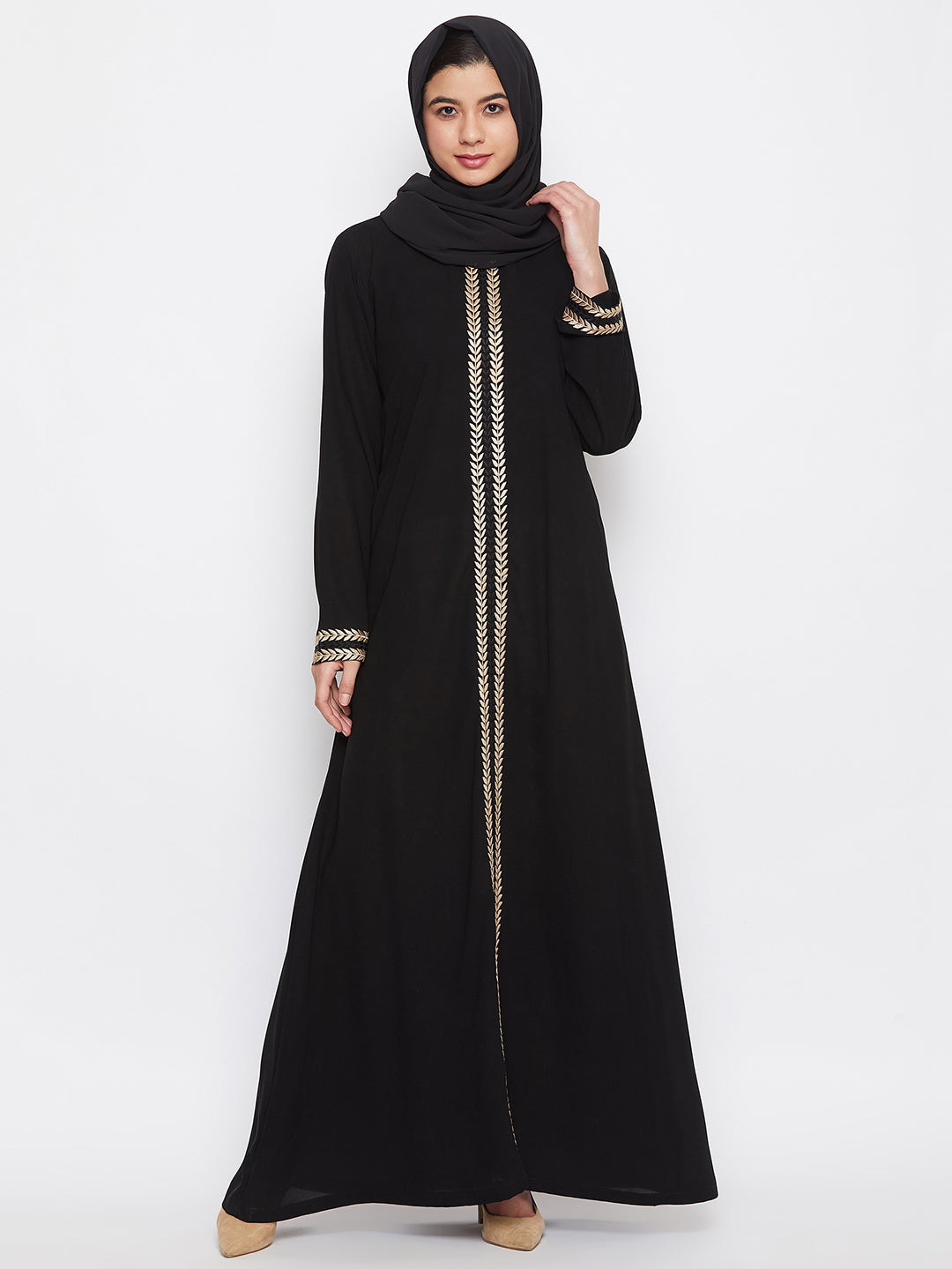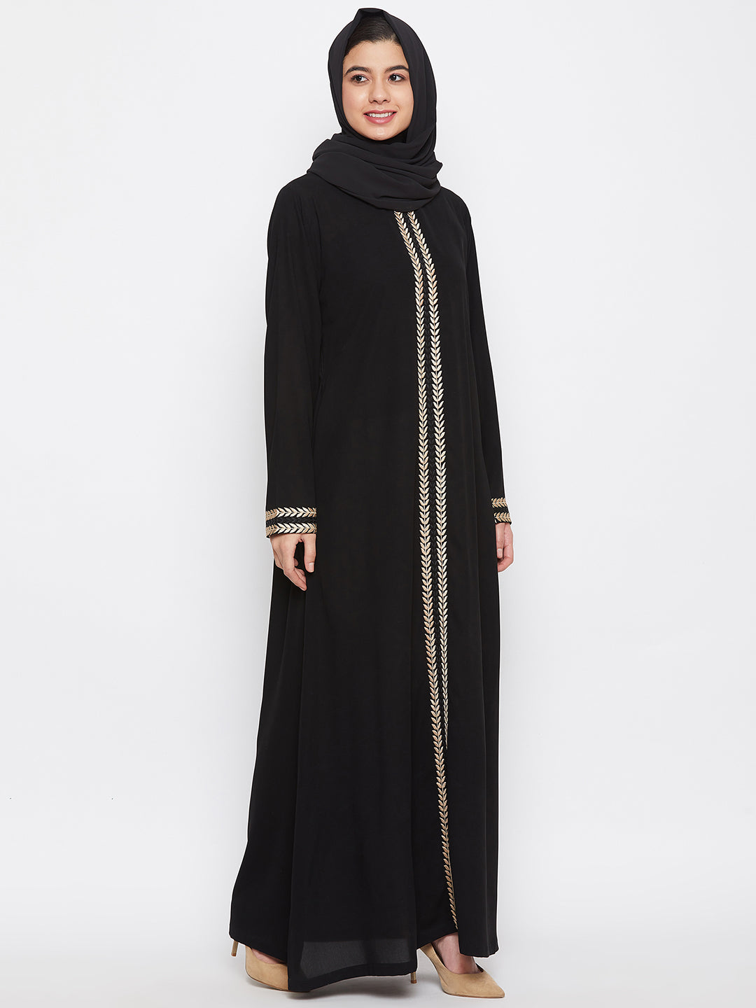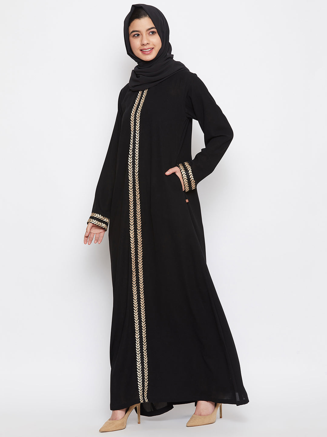 Nabia's Embroidery Abaya for Women is a perfect blend of modesty and style for Islamic women. Crafted from high-quality Nida Matte Fabric and adorned with intricate embroidery on the front and sleeves, it allows women to express their faith elegantly. Additionally, the two side pockets offer practicality for carrying belongings. Available online, it provides a convenient way to embrace modesty without compromising on fashion.