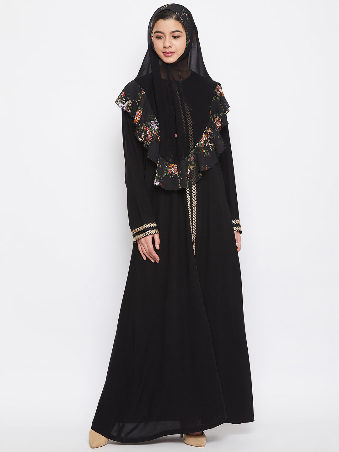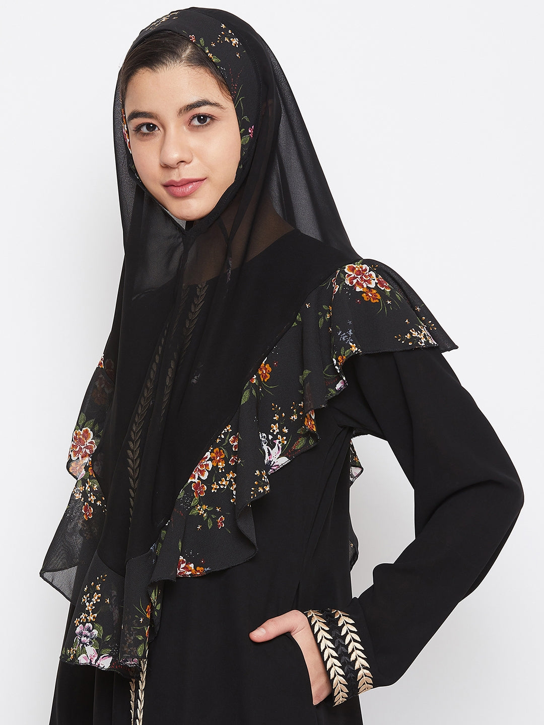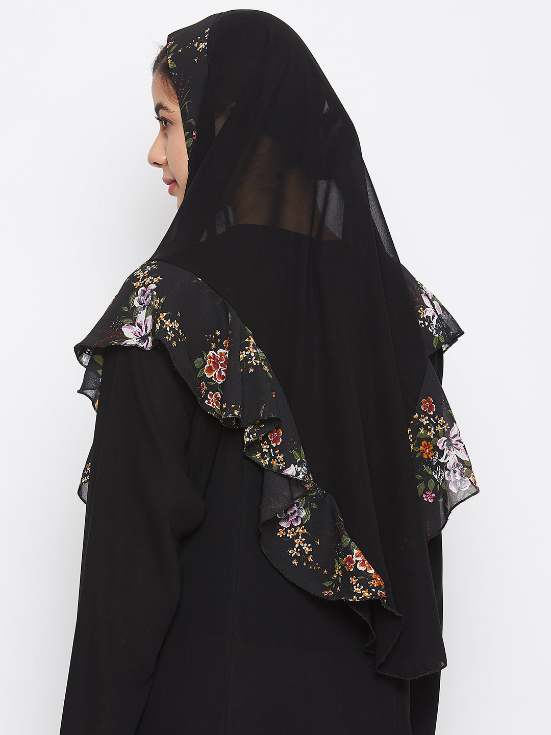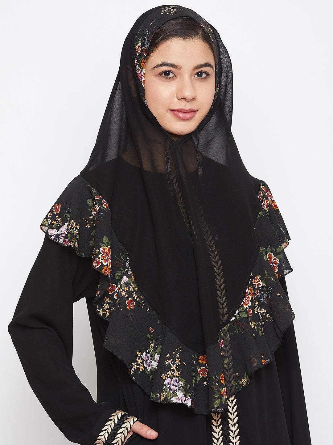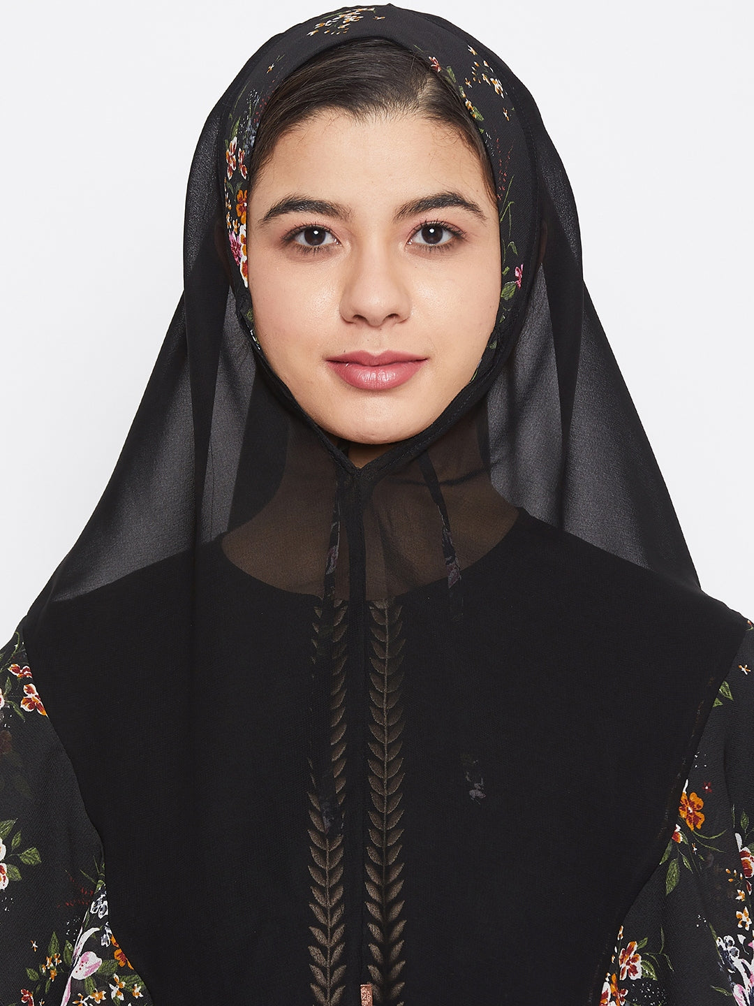 This uniquely designed black khimar / nakab/ hijab provides you comfort with your favorite style in every season. It is printed pattern, which is made of soft georgette fabric. It is smooth, lightweight and used for casual, daily, evening and festive occasions.