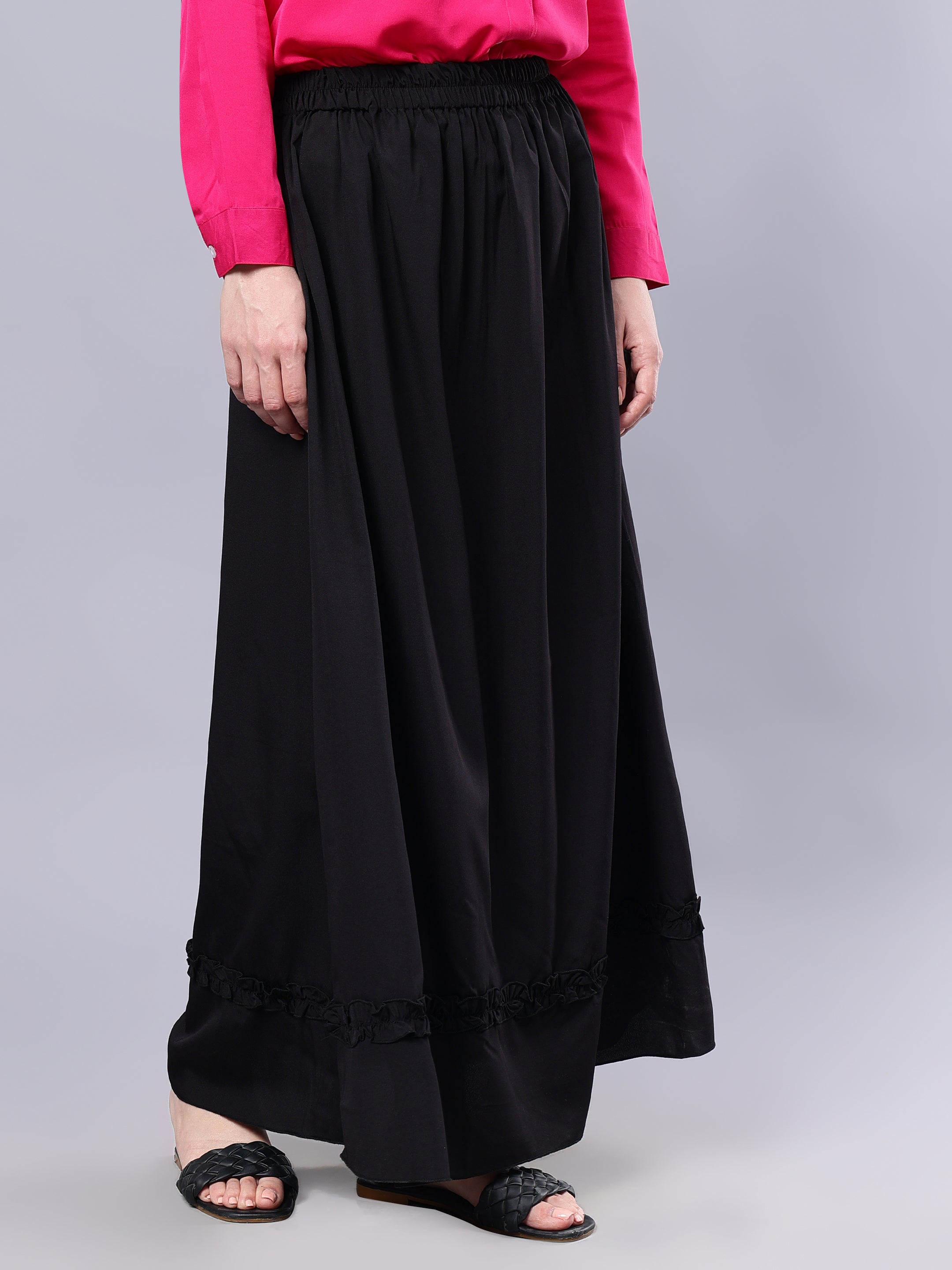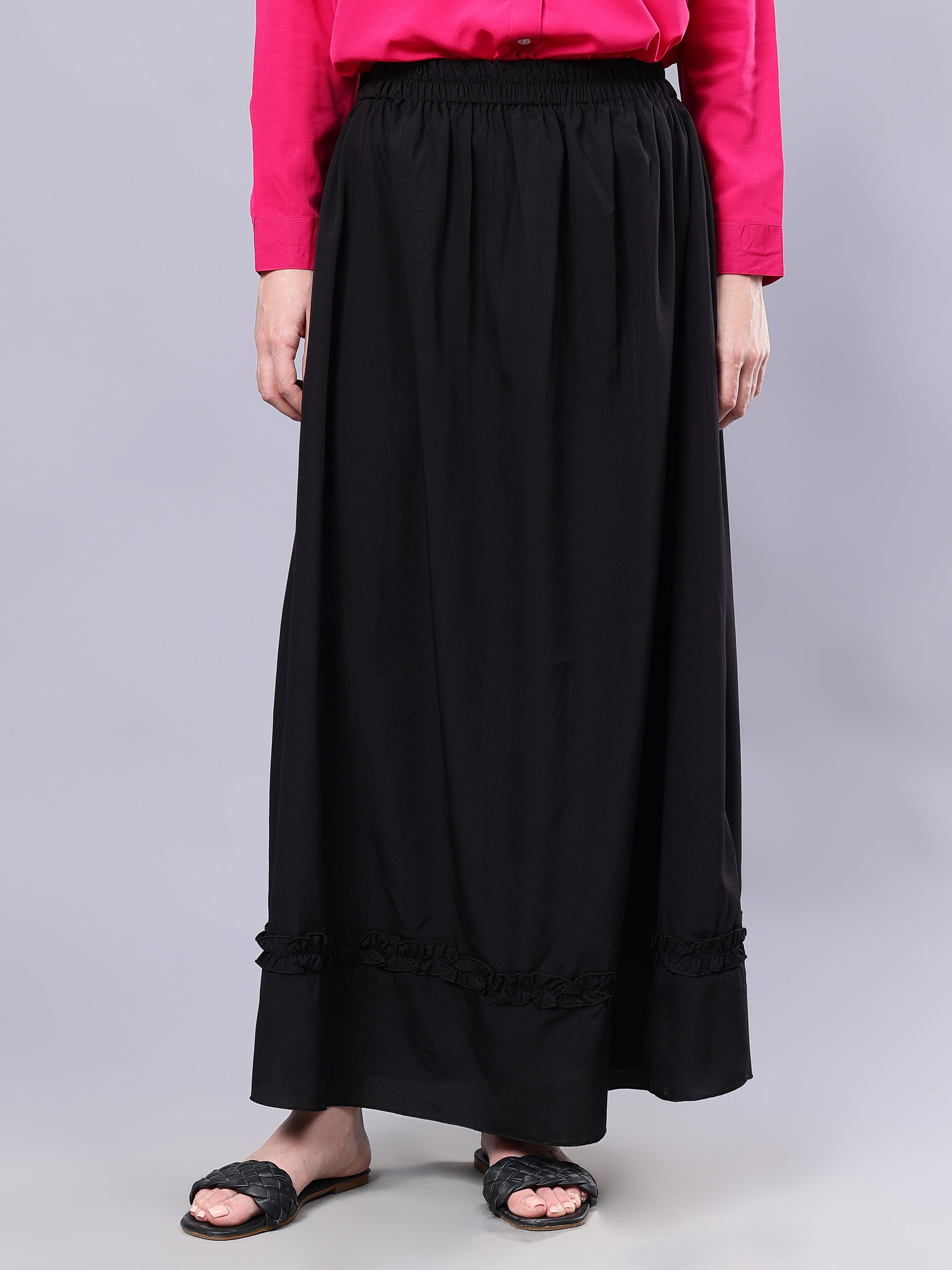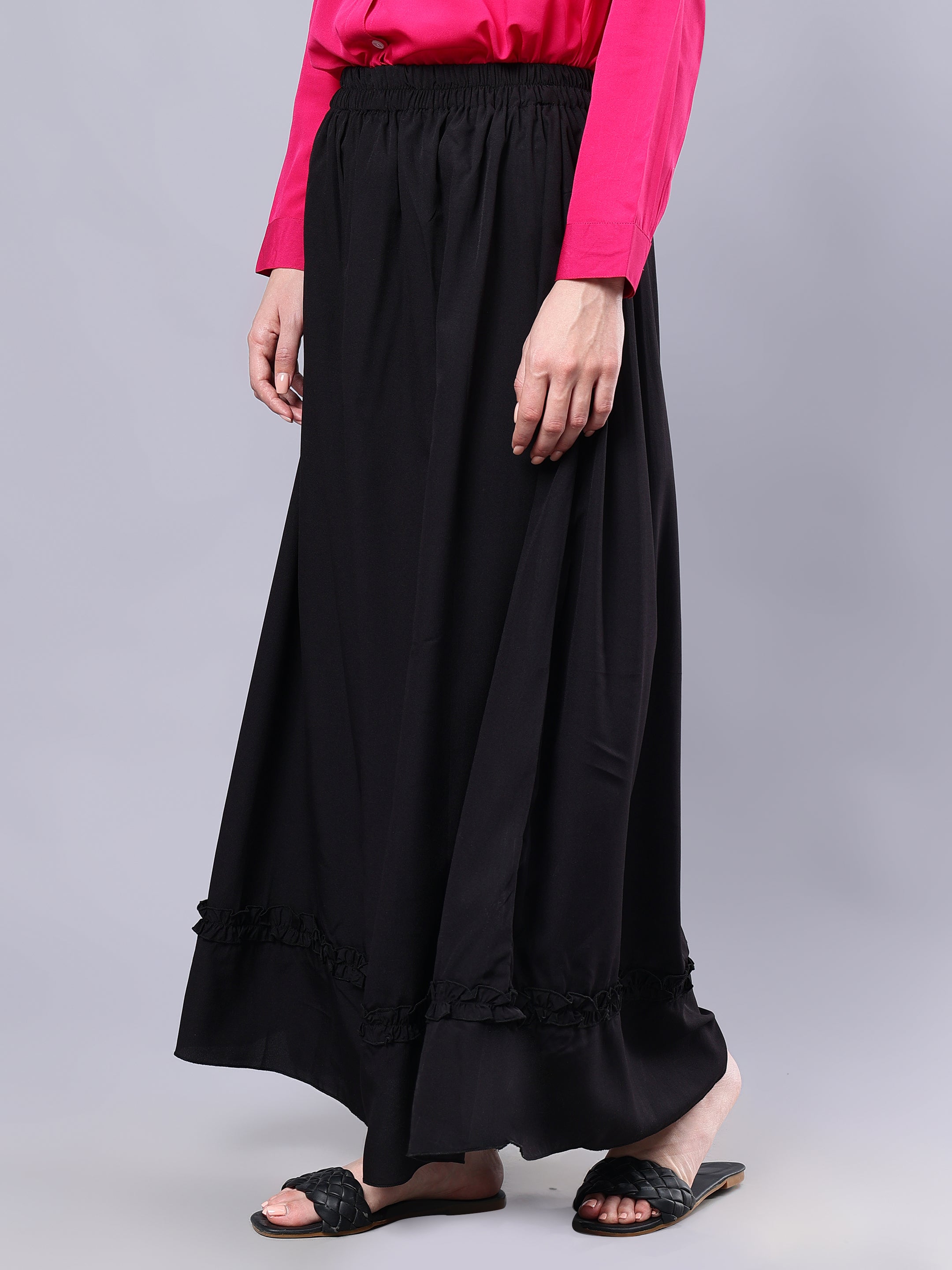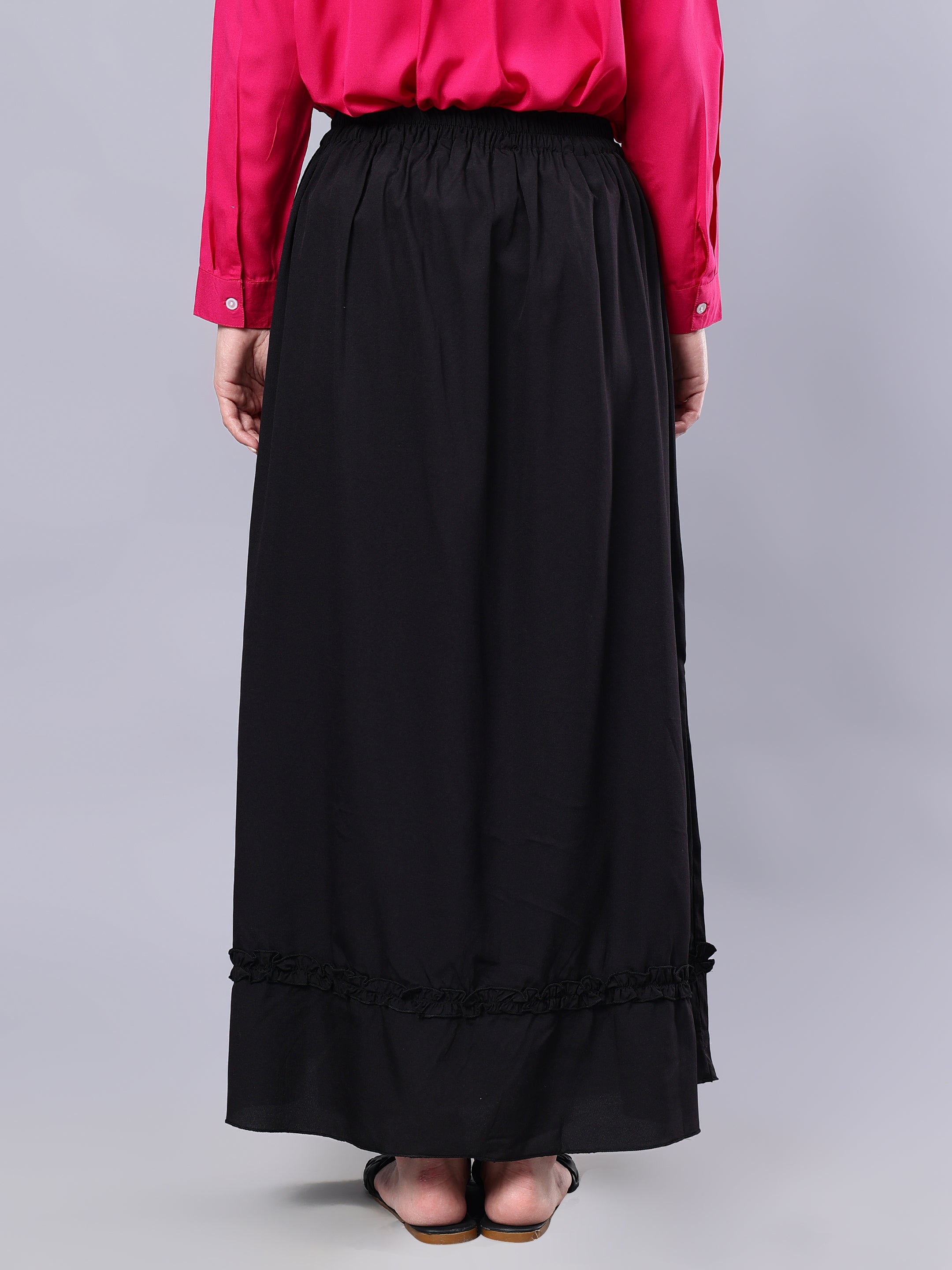 Elevate your wardrobe with our Nabia skirt in solid black. Crafted from comfortable polyster fabric, its slip-on closure ensures ease. Pair effortlessly with chic hijabs, tunics, shades, and favorite shoes for a glamorous, versatile ensemble that exudes timeless sophistication.
