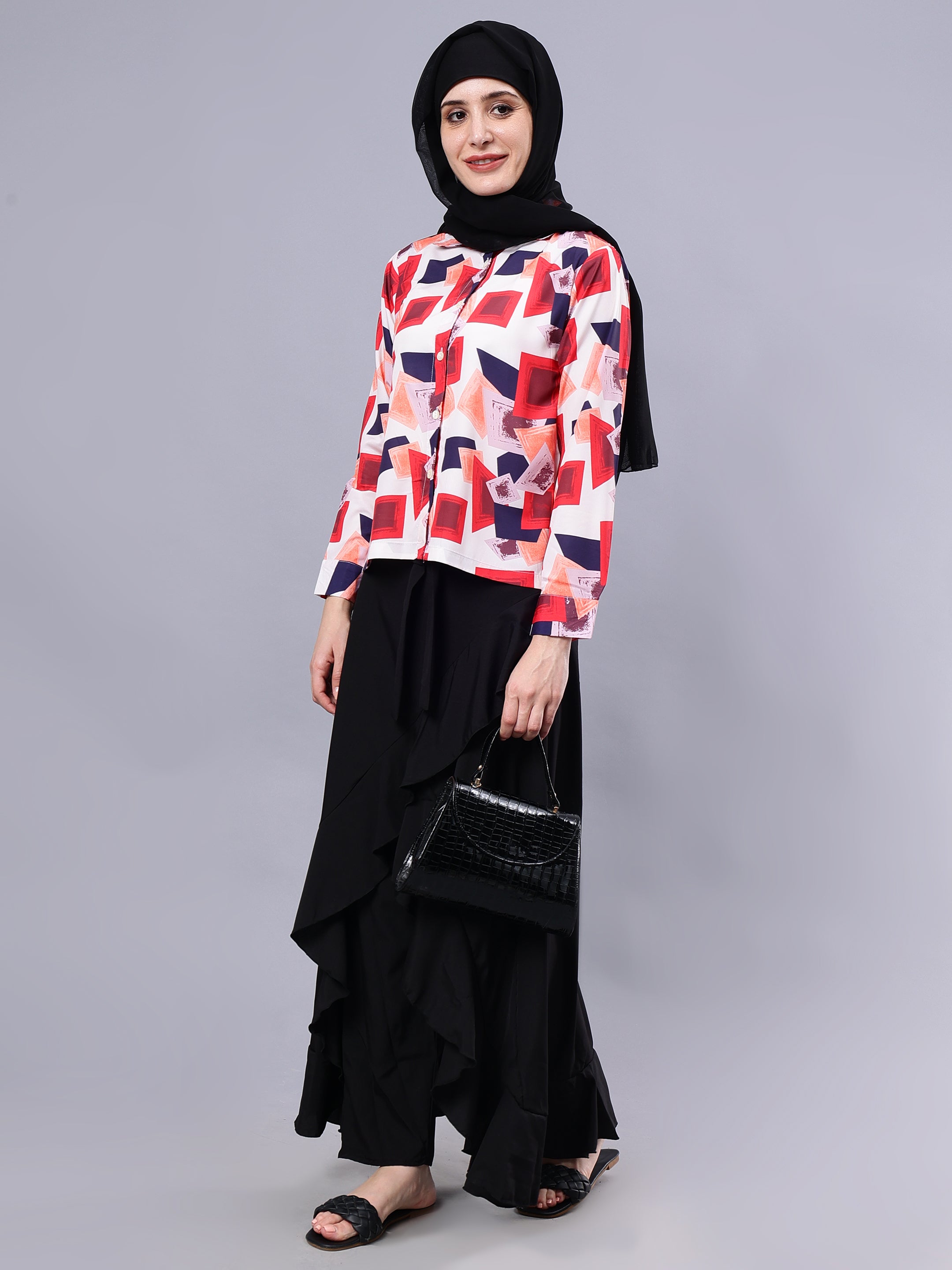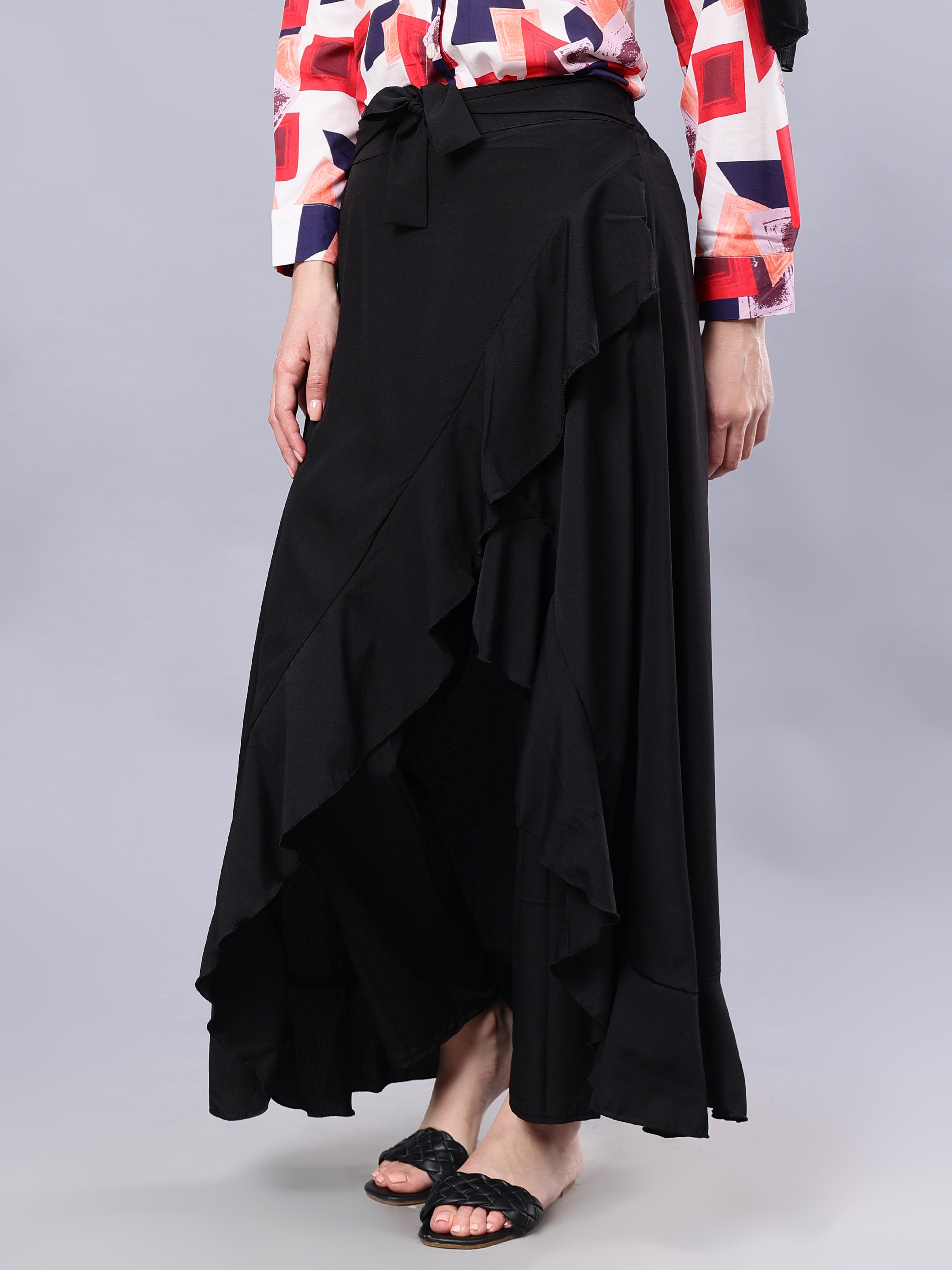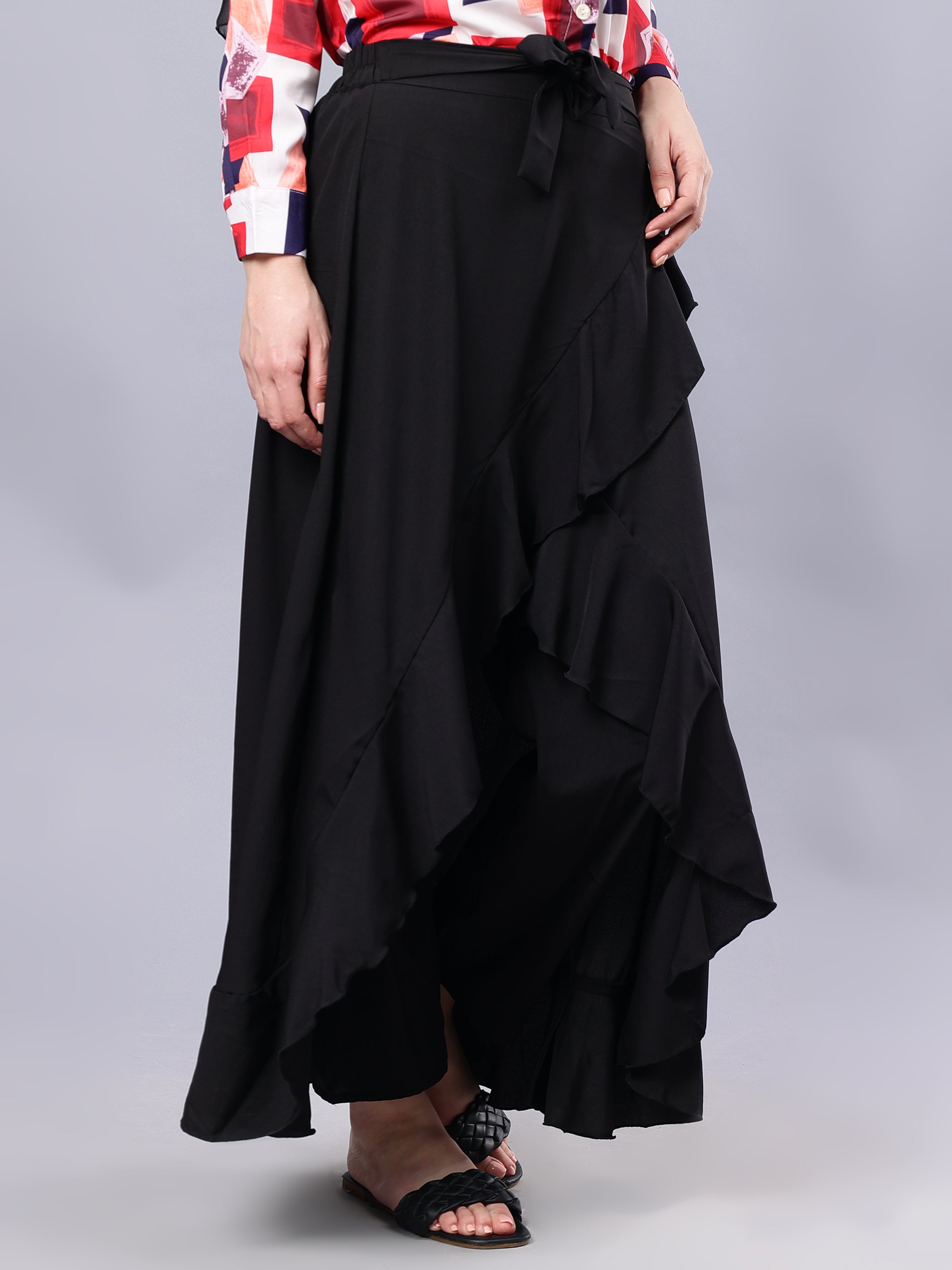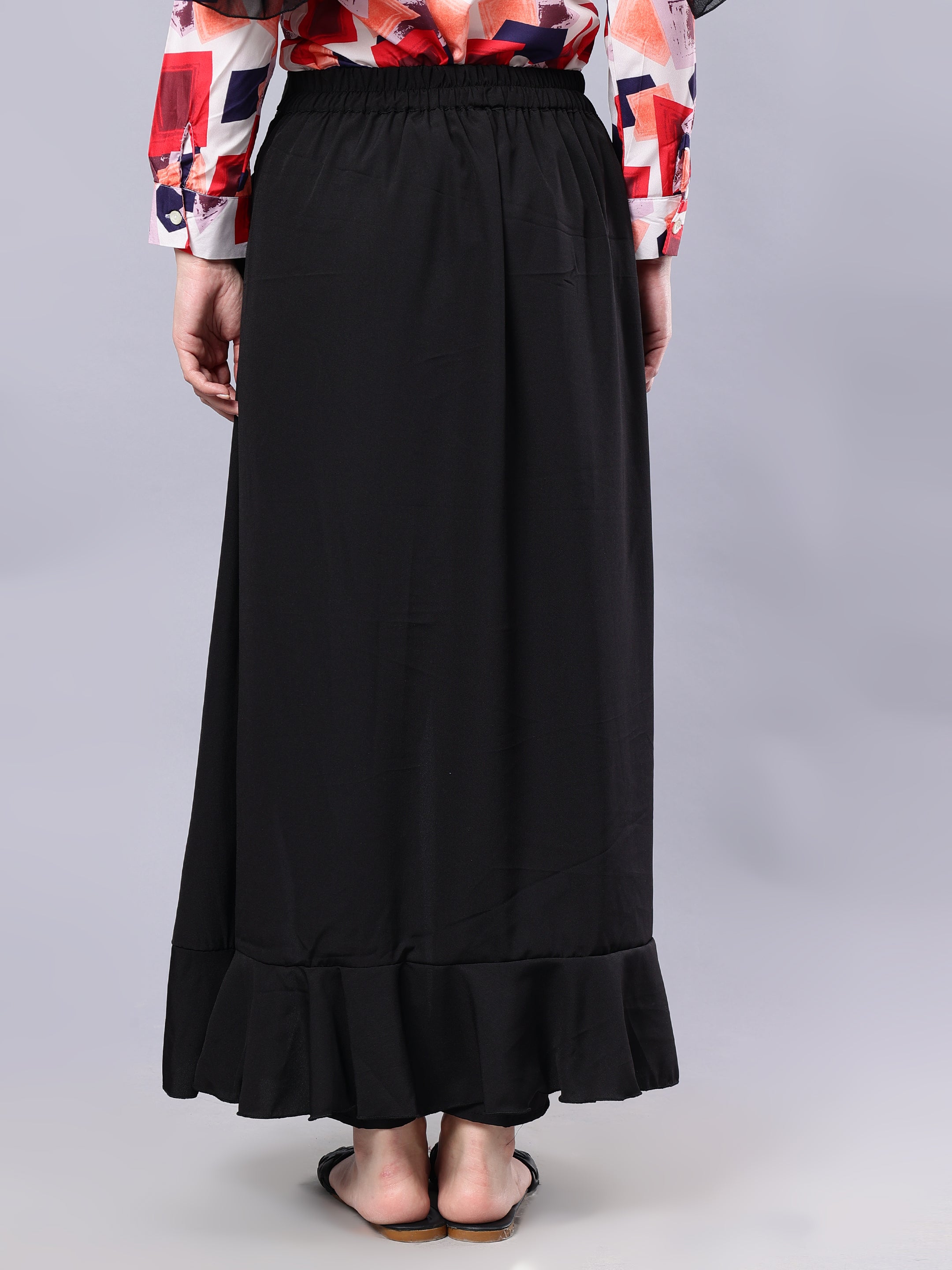 Enhance your style with our Nabia skirt adorned in timeless solid black color, made from comfortable polyester fabric with a convenient drawstring closure, it effortlessly complements chic hijabs, tunics, shades, and your favorite shoes, offering a glamorous and versatile ensemble.