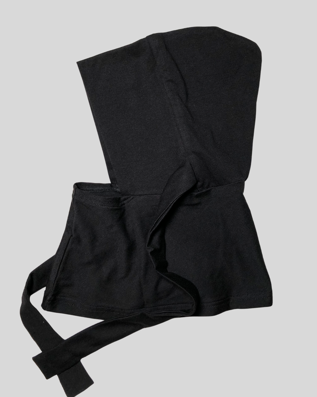 This plain black under scarf hood is crafted from soft, stretchable fabric, offering all-day comfort and a breathable fit. Designed to be worn under hijabs or scarves, it provides extra coverage and ensures your hijab stays securely in place. The attached tie-back allows adjustable comfort, giving you a snug and reliable hold throughout the day.