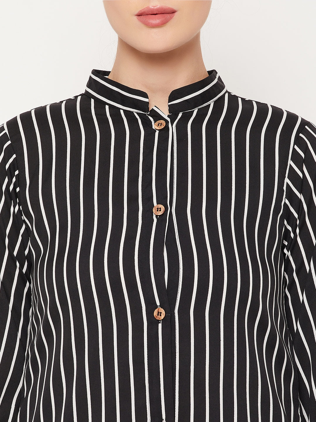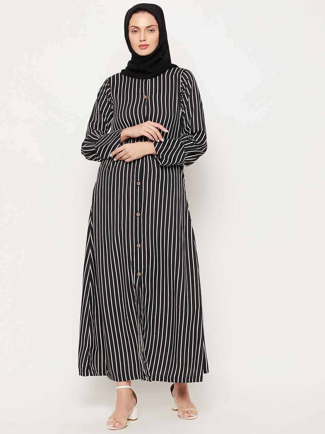 Stripes can never go out of trend. Nabia has a striped abaya design that is very highly appreciated that allows you to make a fashion statement wherever you go. This black daily wear front open side pocket Abaya dress is an enduring addition to your wardrobe collection.