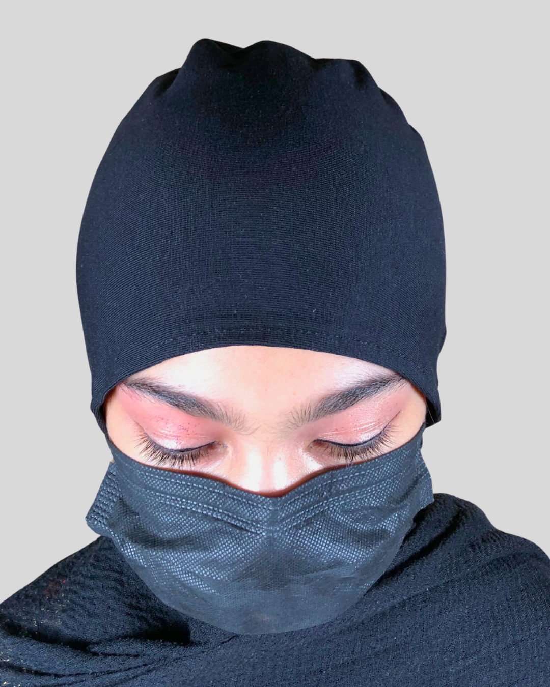 This plain black tie-back undercap is made from soft and stretchable fabric, offering comfort and ease for everyday wear. Designed to be worn under hijabs, it features long tie straps for a secure and adjustable fit, keeping your hijab in place all day. The breathable material makes it perfect for daily use.