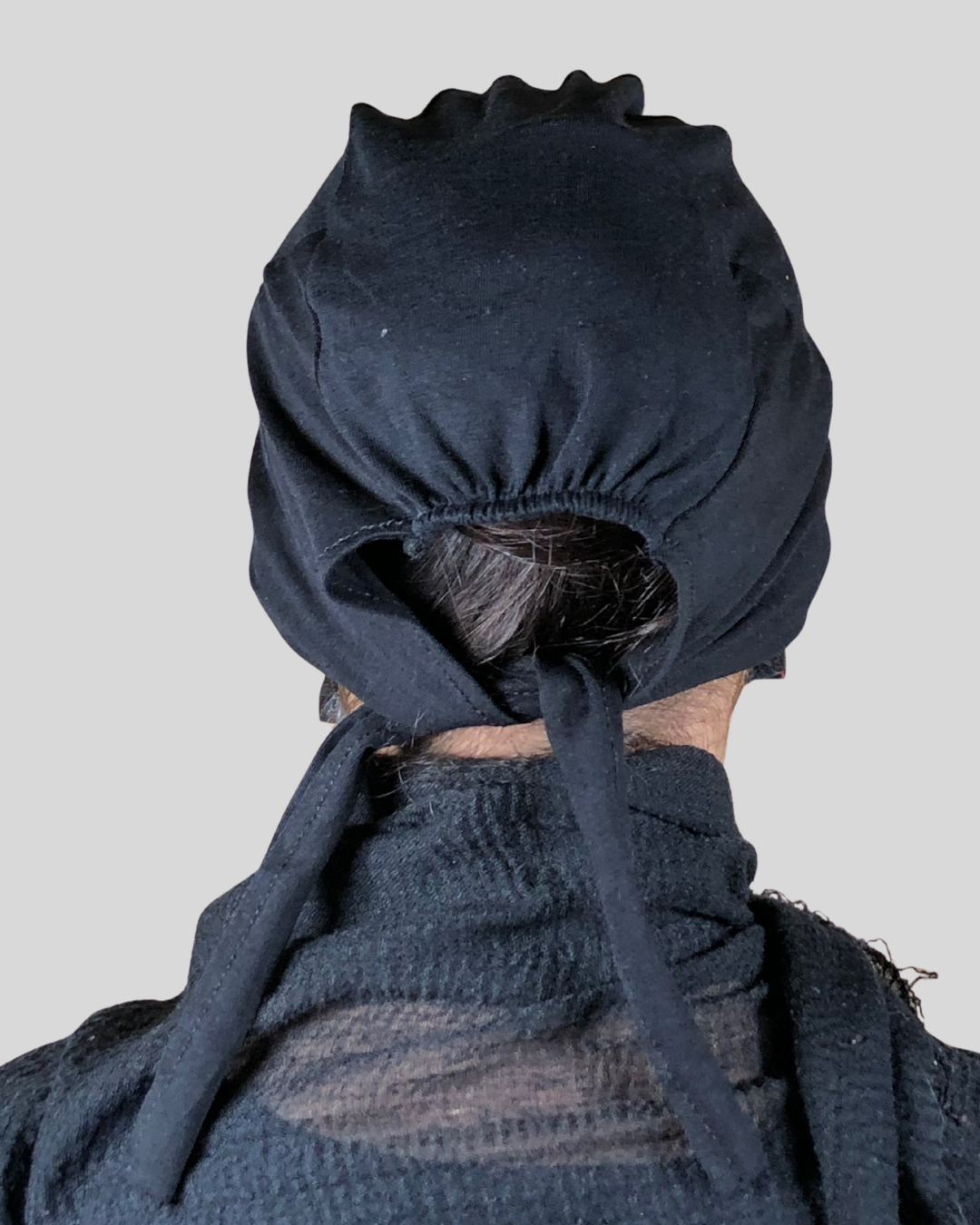This plain black full undercap is made from soft, breathable, and stretchable fabric for all-day comfort. Designed in a turban style, it offers modesty and protection while ensuring a secure fit. Perfect for wearing under hijabs, it provides complete coverage for hair, forehead, and face, keeping everything in place throughout the day.