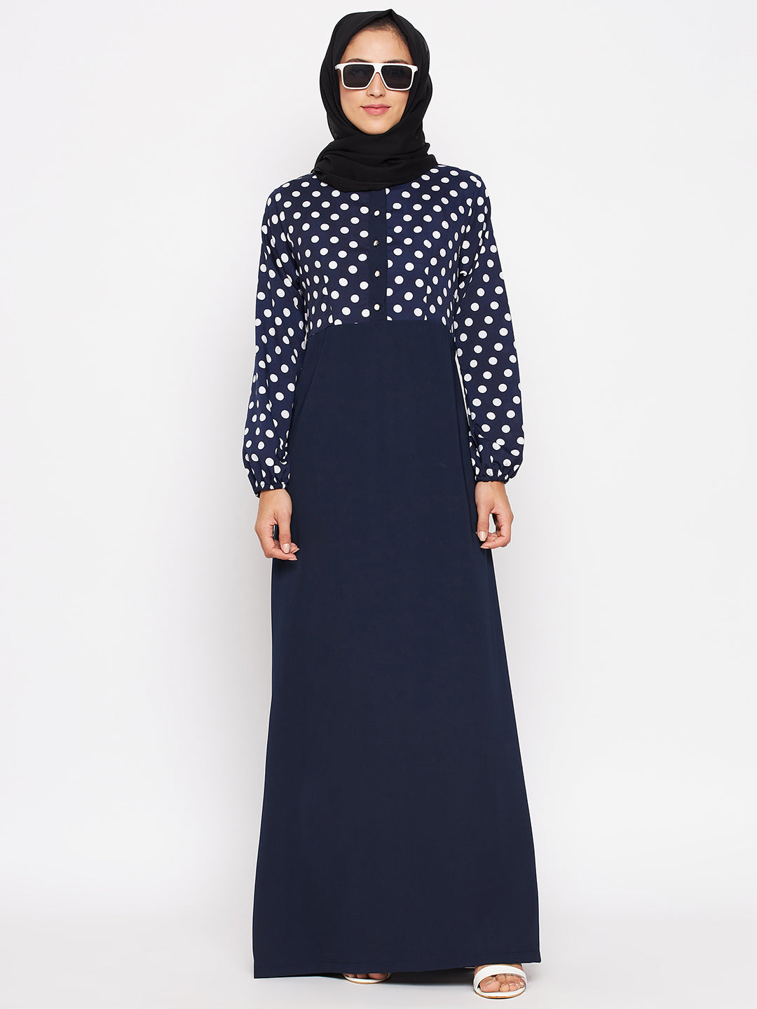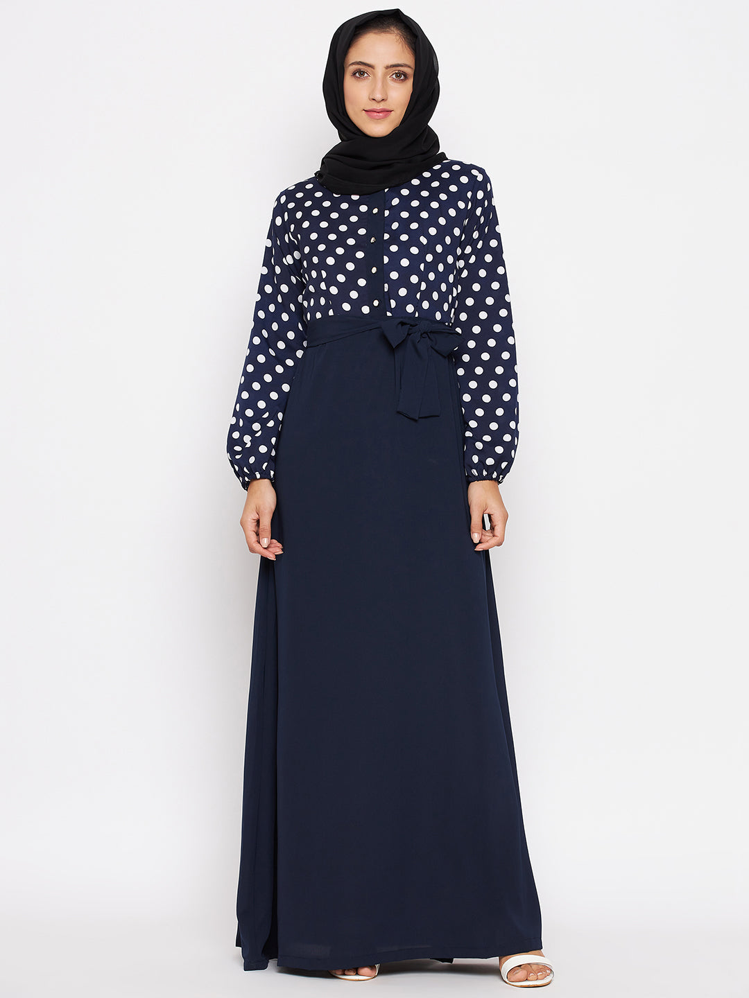 Nabia's Abaya Dress for women is a fusion of style and comfort in Nida Matte and crepe fabric. The button closure on the neck, long & cuffed sleeves, and a belt for adjustment add a touch of elegance. This dress is perfect for modern Muslim women seeking both fashion and modesty.