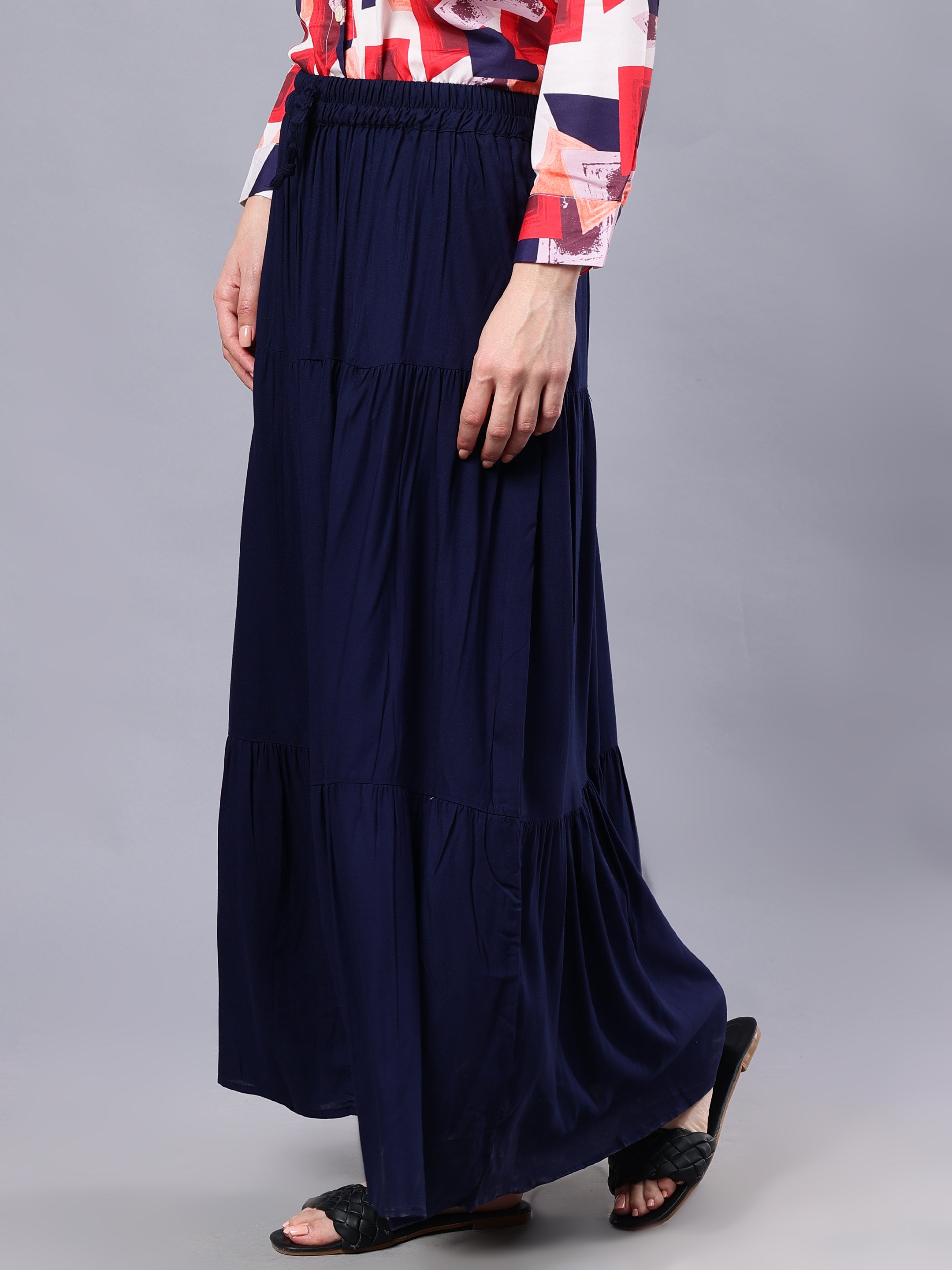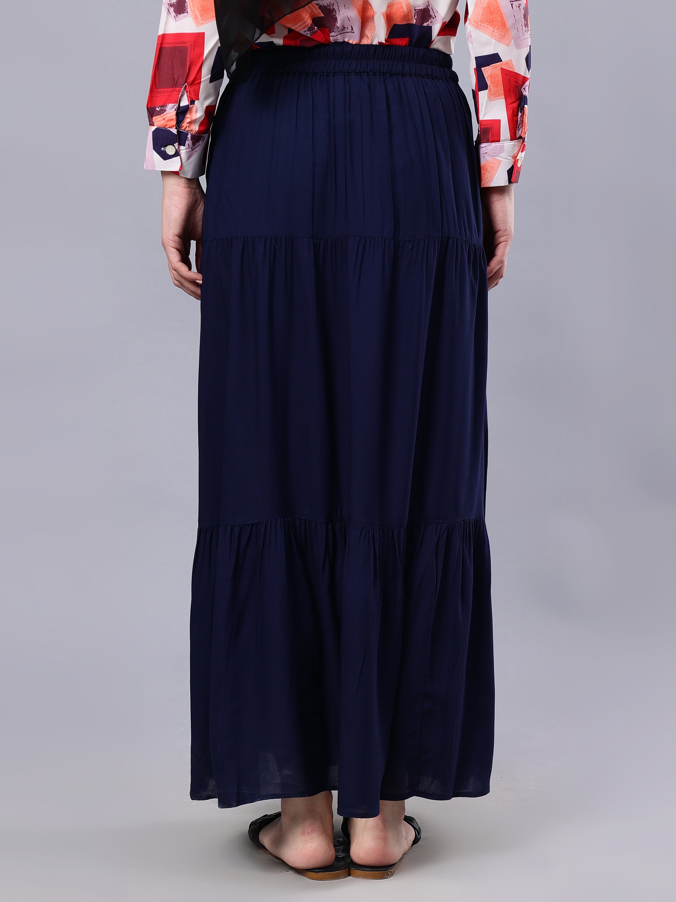 Elevate your wardrobe with our Nabia skirt in blue solid. Crafted from comfortable rayon fabric, its slip-on closure ensures ease. Pair effortlessly with chic hijabs, tunics, shades, and favorite shoes for a glamorous, versatile ensemble that exudes timeless sophistication.