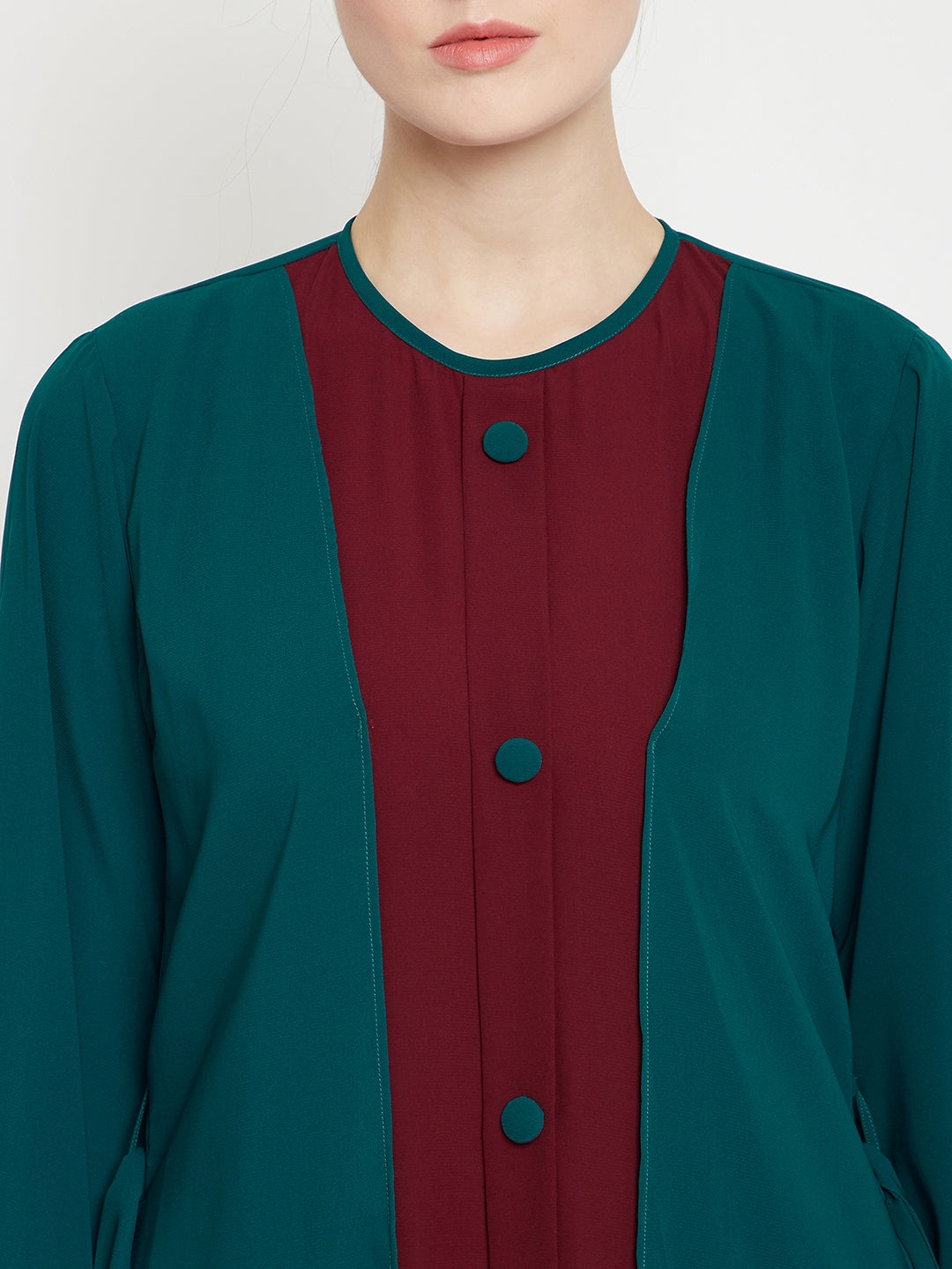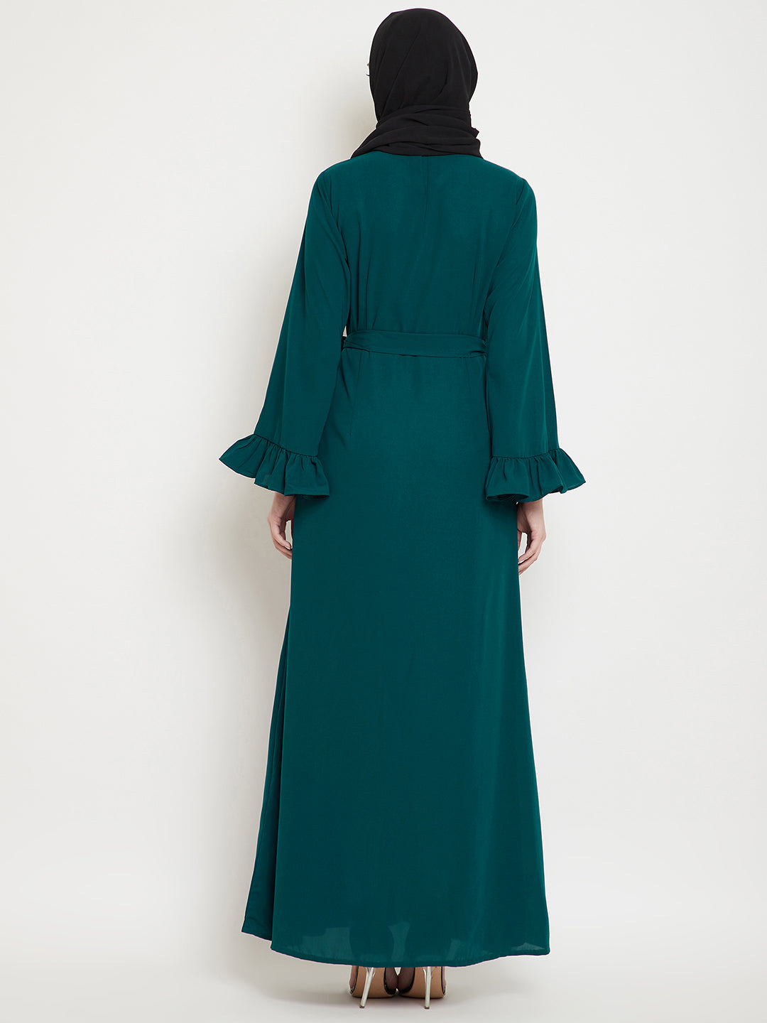 Nabia offers an exceptionally unique Abaya with two captivating color schemes. This features a beautiful combination of two distinct colours. . Made for your modesty and elegance while being a perfect comforting wear, it is adorned with two color combination, long bell sleeves, and round neck. The A-Line fit ensures supreme comfort and free movement while you are wearing it.