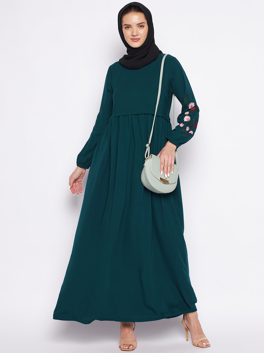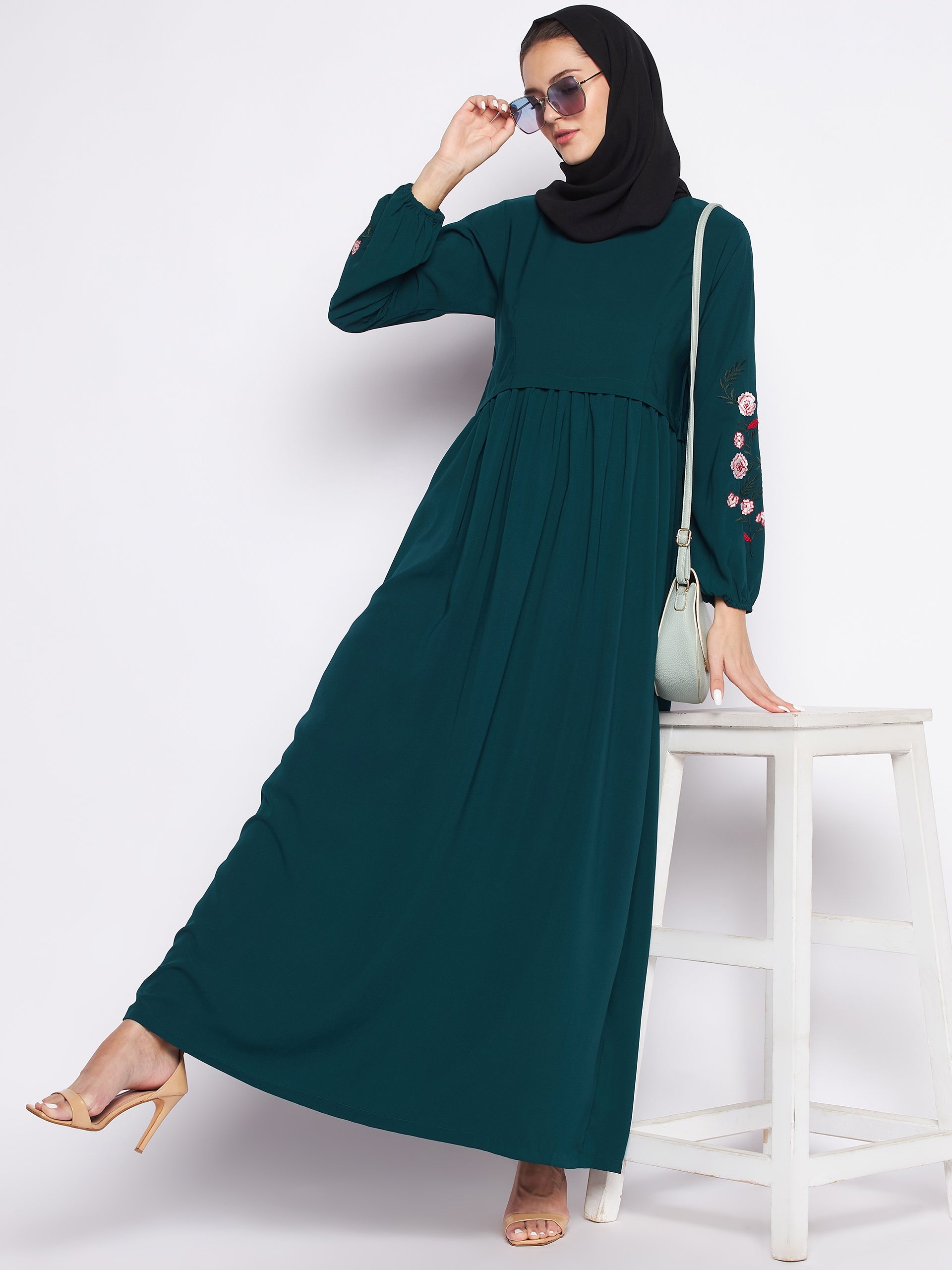 Made exclusively for women who want to embrace style and modernity without stepping out of traditional values and faith. Create your own aura wherever you are. This abaya will make you a symbol of style and tradition, at every place you step in. Providing free movement, comfortable fit, long sleeves and beautiful embroidery done on Sleeve. This will give you a sense of completeness and Confidence, Order yours today!