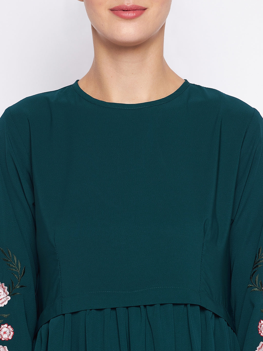 Sleeve Style: Long Puff Sleeve with embroidery