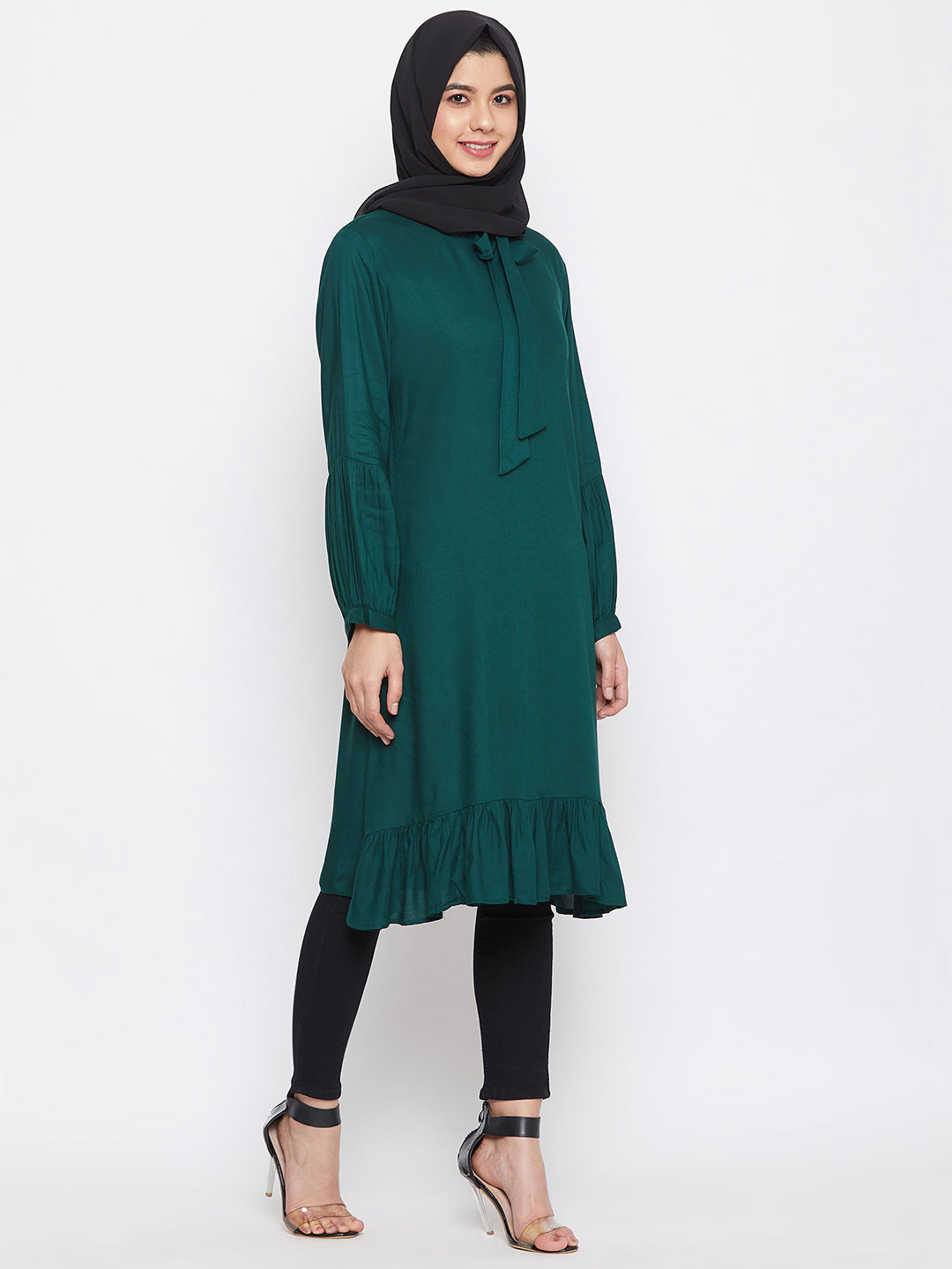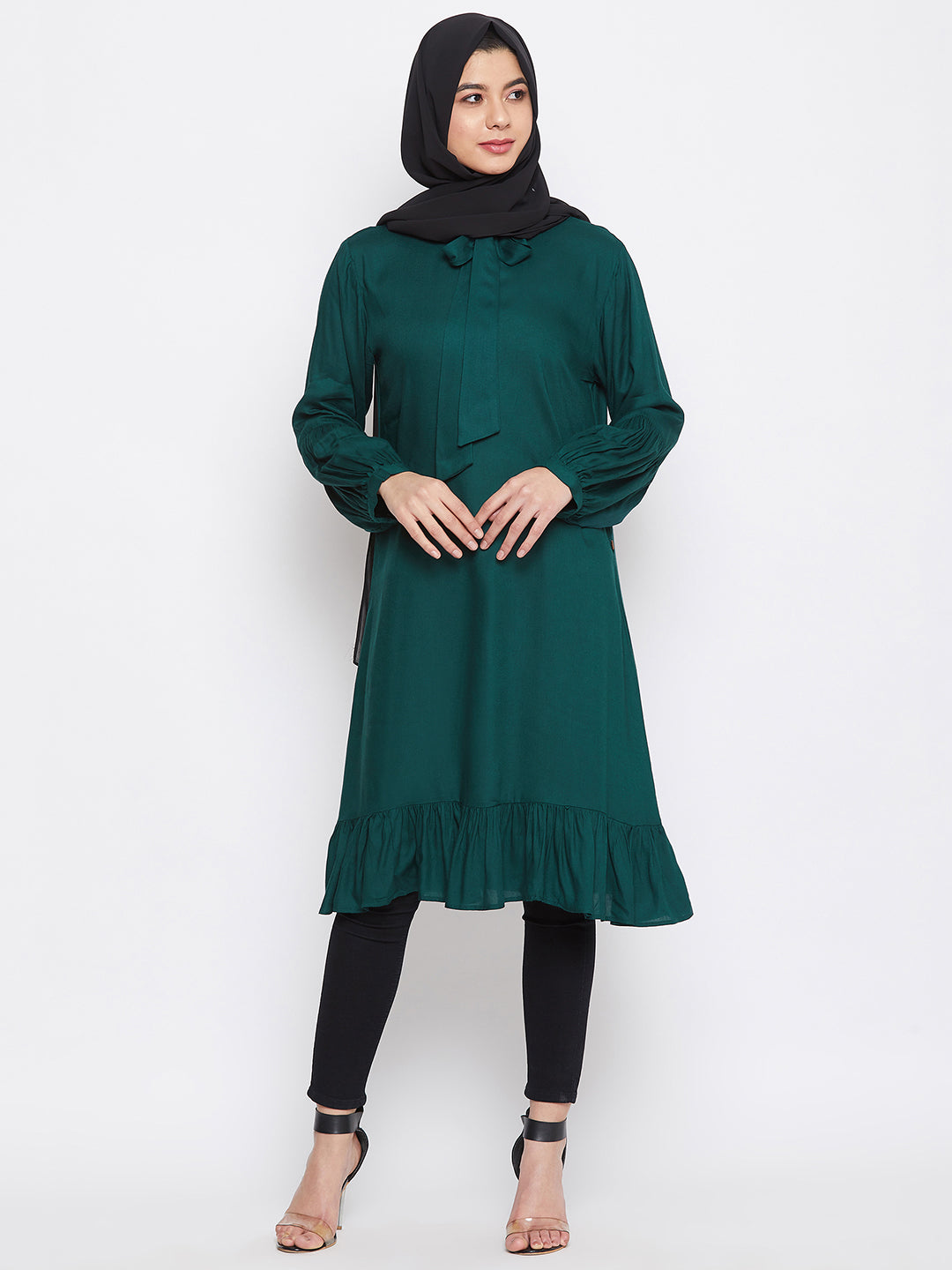 Whether you prefer a simple tunic or fancy something more elaborate, Nabia offers options to meet all your needs. From tunics featuring bold hues to vibrant shades and chic embellishments, our collection spans occasions and styles. This style has tie-up neck, long sleeves, solid pattern and made of soft rayon fabric which is comfortable for long time use.