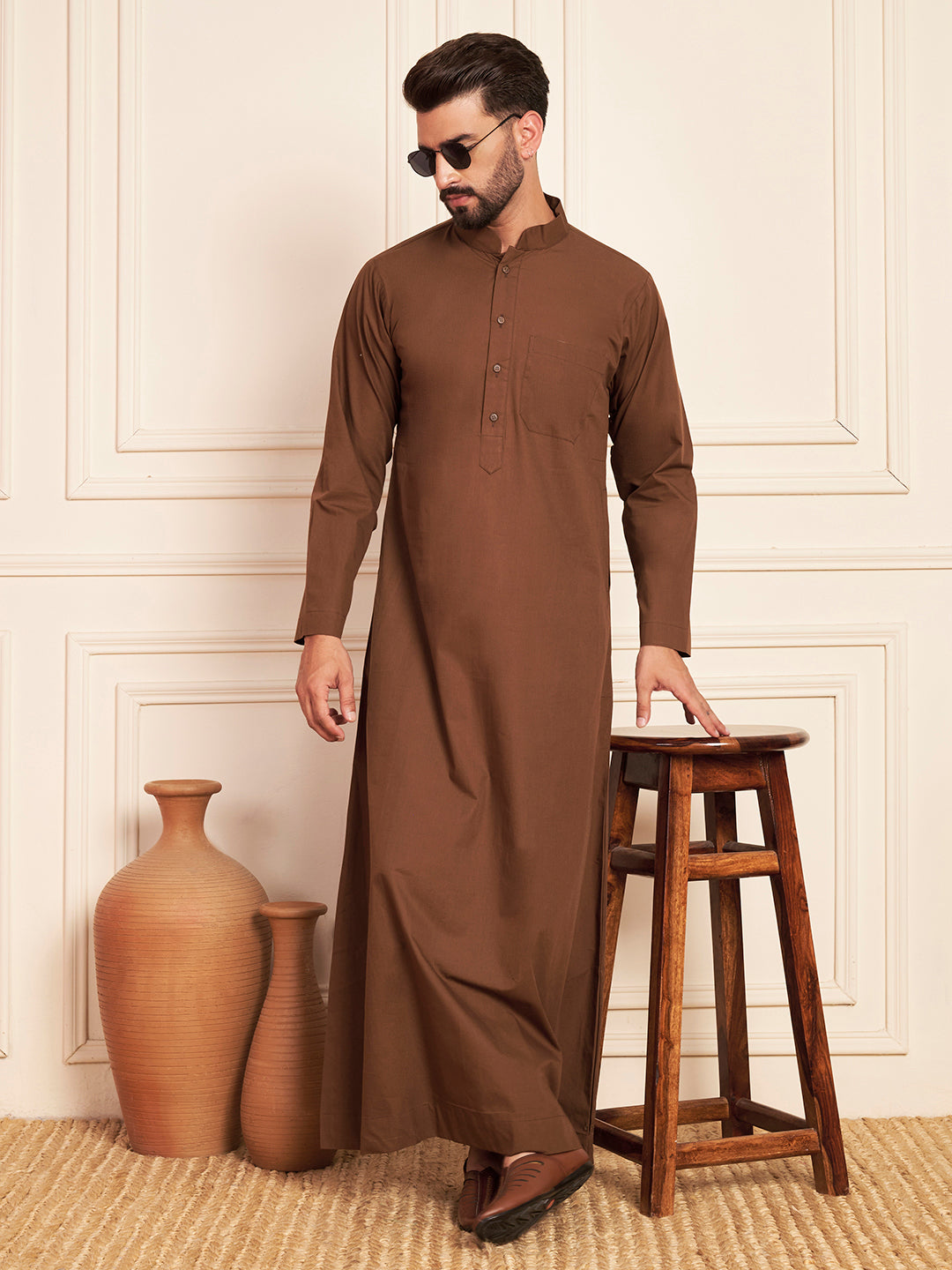 Stay comfortable and stylish with this brown men’s thobe, crafted from lightweight, breathable cotton fabric for all-day wear. Featuring a mandarin collar, button placket, and a clean, modern finish, this Islamic men’s jubba is perfect for prayer, casual outings, mosque visits, or daily wear. The rich brown tone offers a smart and elegant look that blends tradition with contemporary modest fashion.