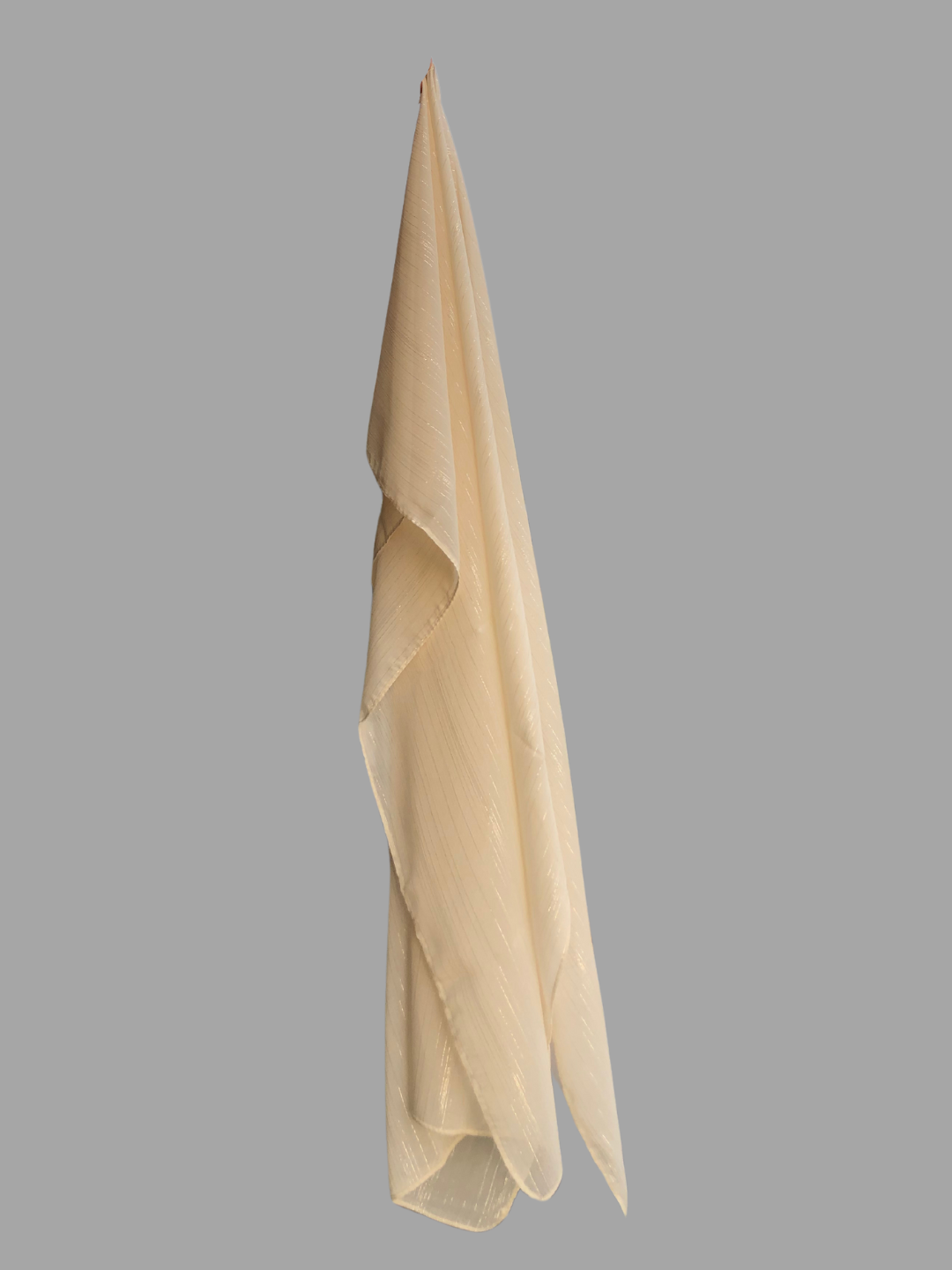 Elevate your look with our Chiffon Metallic Shimmer hijab. Crafted from lightweight chiffon fabric, this solid beige hijab adds a touch of glamour to any outfit. Comfortable for all-day wear, it's perfect for casual occasions when you want to shine.