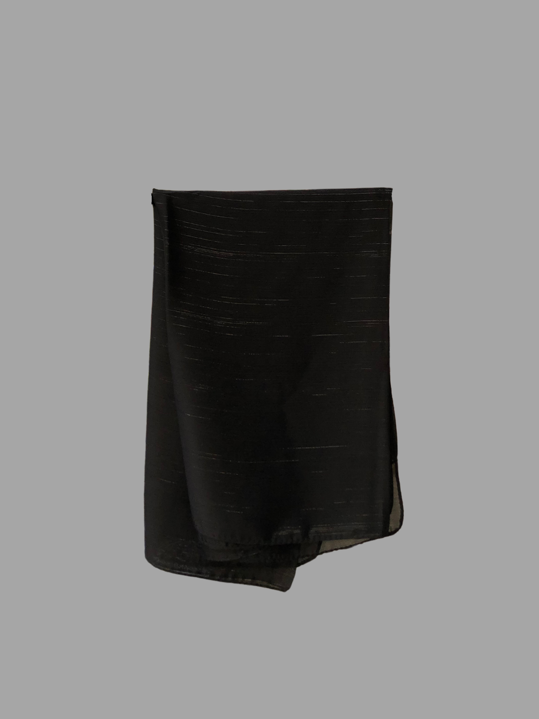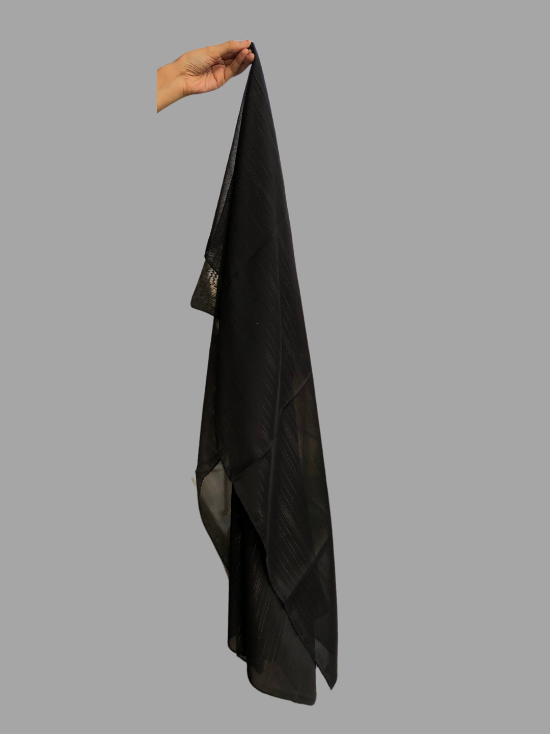 Elevate your look with our Chiffon Metallic Shimmer hijab. Crafted from lightweight chiffon fabric, this solid black hijab adds a touch of glamour to any outfit. Comfortable for all-day wear, it's perfect for casual occasions when you want to shine.