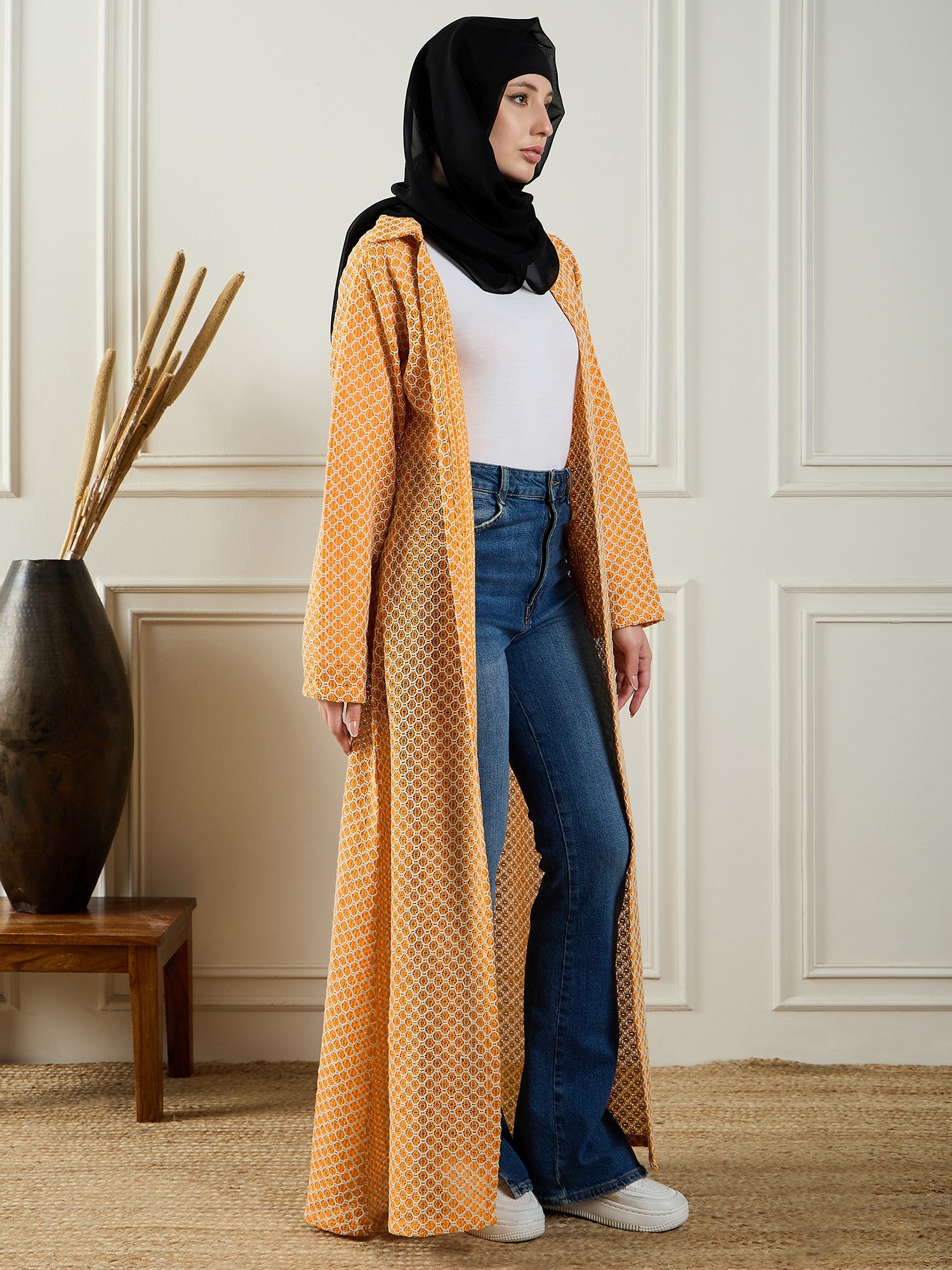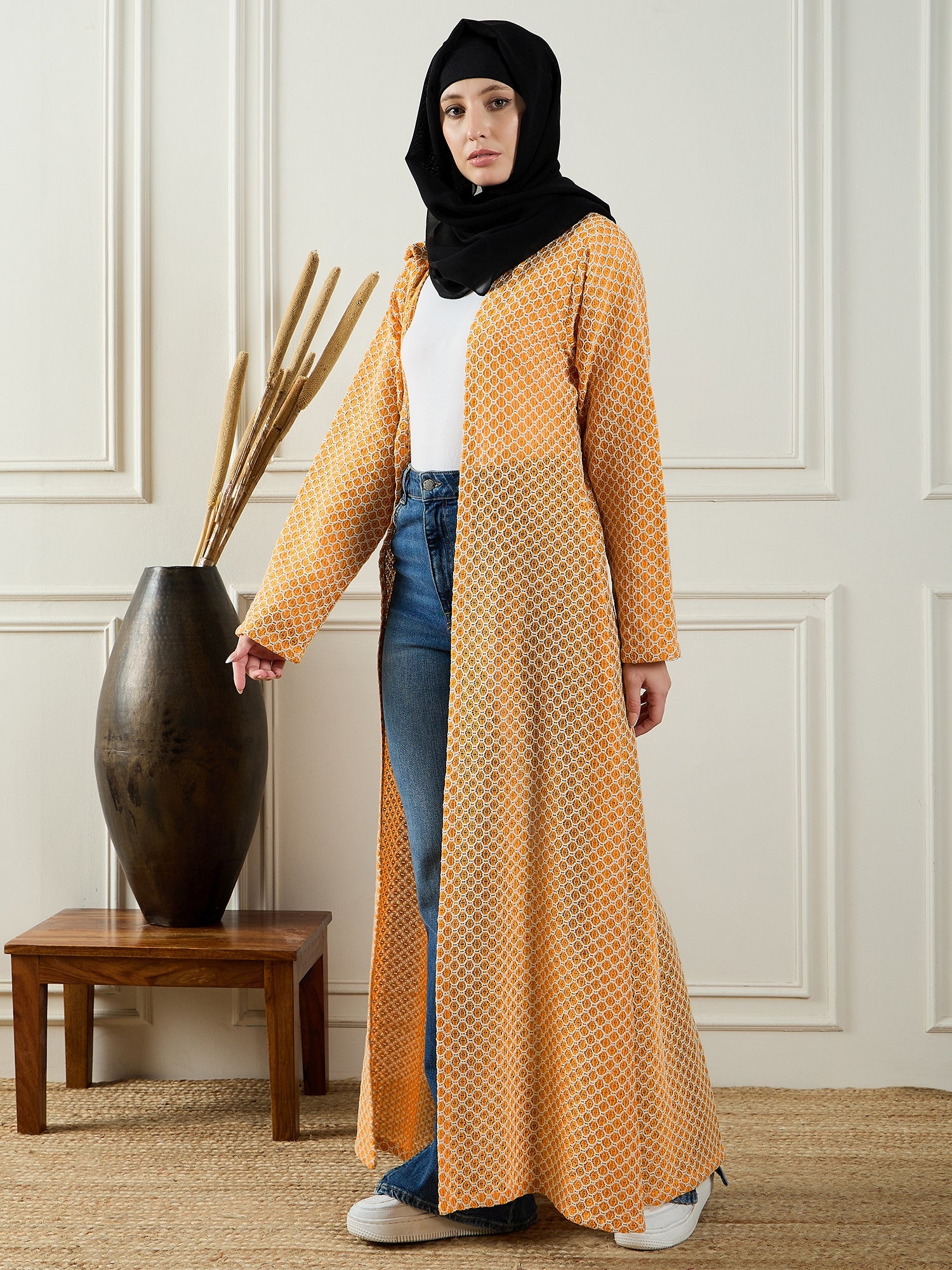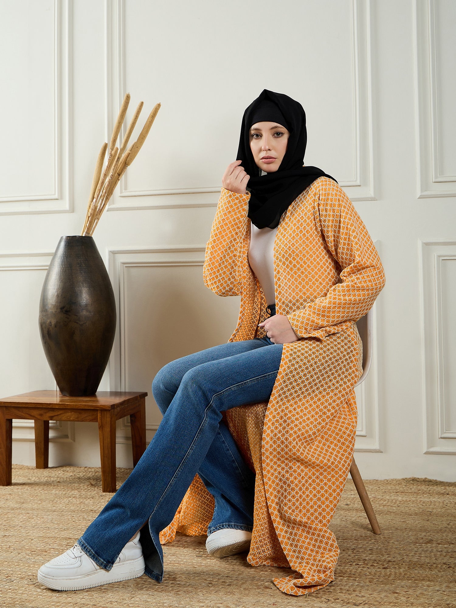 The Nabia Women’s Front Open Cotton Knitted Shrug, featuring stylish bell sleeves, is a lightweight, comfortable layering piece perfect for modest Muslim women. Its modern design offers a chic, modest look, making it ideal for adding versatility to any Islamic wardrobe. Effortlessly blending fashion and modesty, this shrug is perfect for today’s fashion-forward, modest-conscious women.