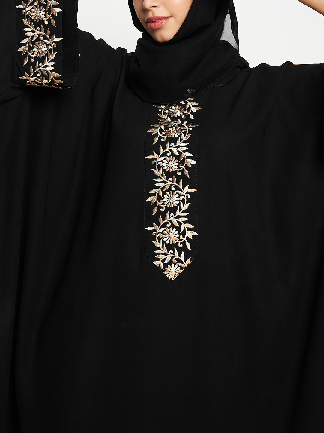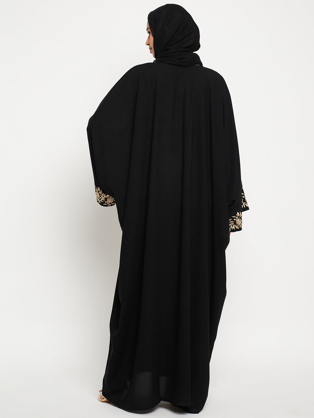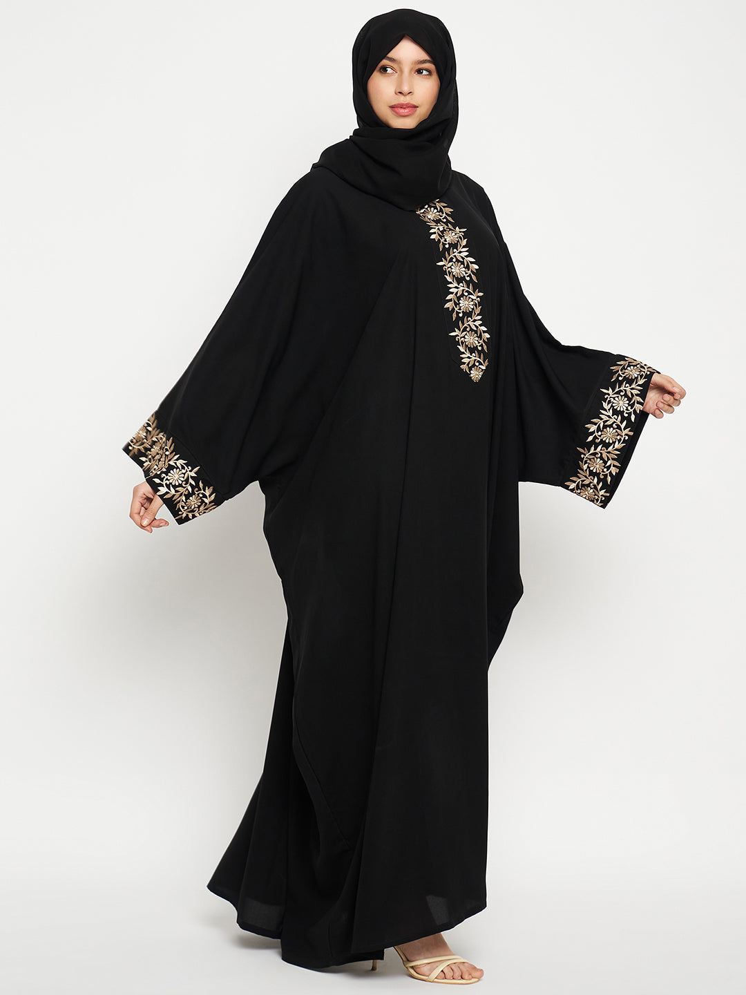 Exude sophistication in this black embroidery abaya burqa tailored for Islamic and Muslim women. The solid design, round neck, loose fit and free sleeves create an elegant silhouette. Crafted from Nida matte fabric, with a slip-on closure, it effortlessly combines modesty and style.