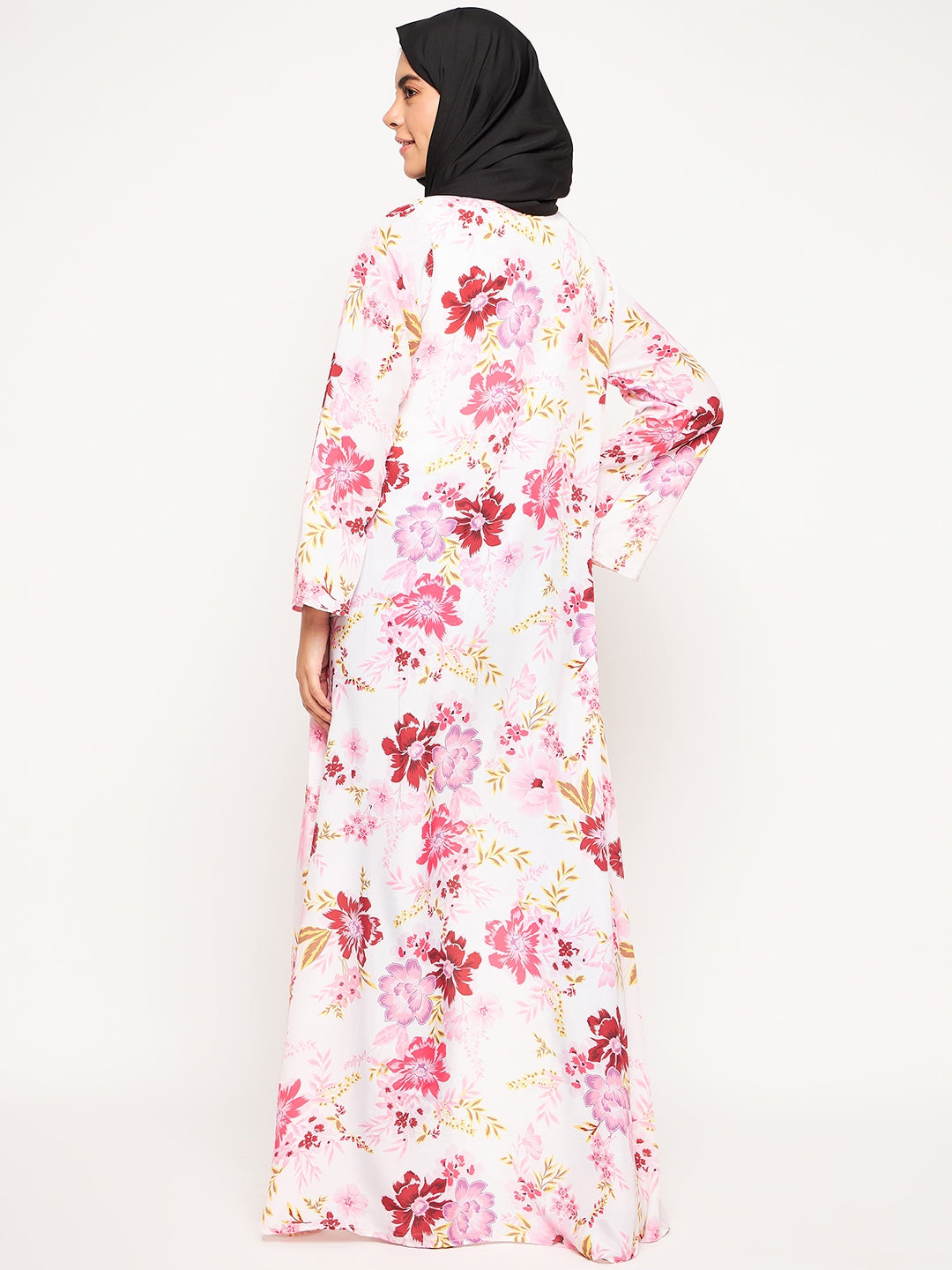 Introducing a vibrant multicolor Floral Printed Front Open Shrug, featuring long and free sleeves, a round neck, and a loose fit. Crafted from satin fabric, it provides a relaxed and comfortable feel, tailored for Islamic and Muslim women, adding a stylish touch to your wardrobe for various occasions.