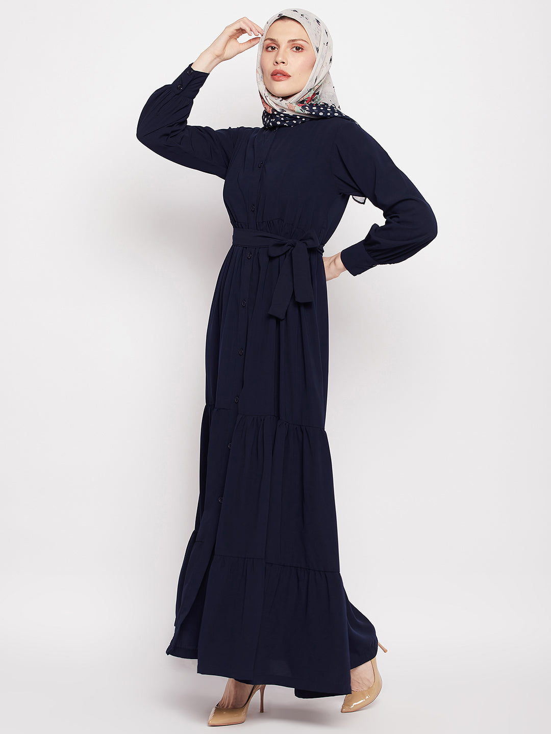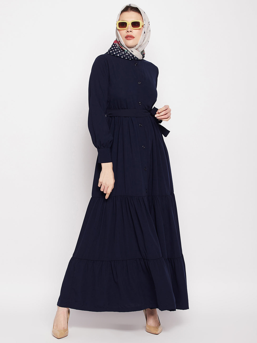 Package Content: One Abaya with waist belt and one black scarf