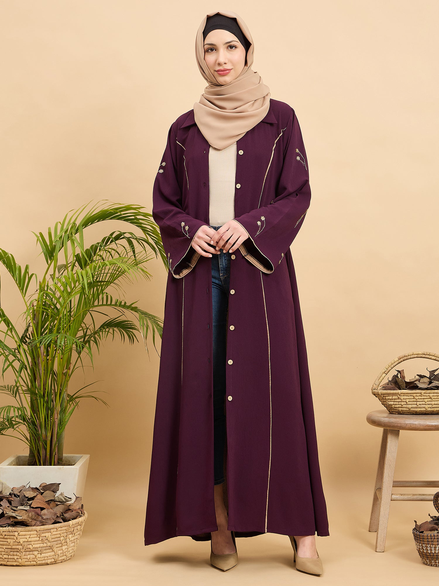 Upgrade your modest wardrobe with this luxury abaya burqa for women, crafted from premium cy crush fabric for a soft, lightweight, and flowy drape. Designed in a front-open style, it features elegant hand worked detailing and refined piping accents for a graceful finish. Perfect for office wear, parties, prayers, Ramadan, Eid, and formal occasions, it offers comfort, timeless elegance, and sophisticated modest fashion.