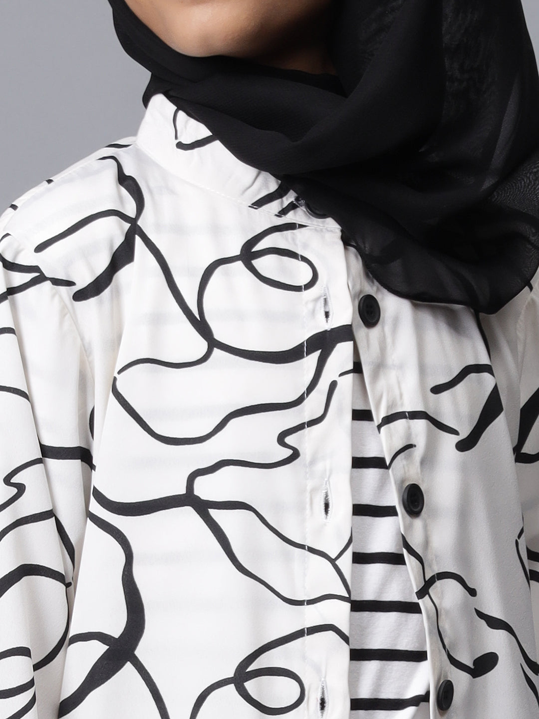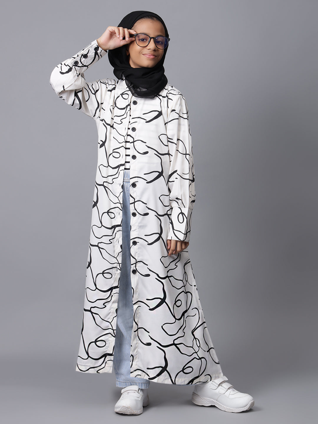 This front-open white Abaya for Muslim girls features a chic printed design, blending modesty with the latest fashion trends. Its stylish front opening adds ease of wear while maintaining a graceful silhouette. Perfect for everyday wear or special occasions, this Abaya ensures your child stays both fashionable and modest with a modern touch.