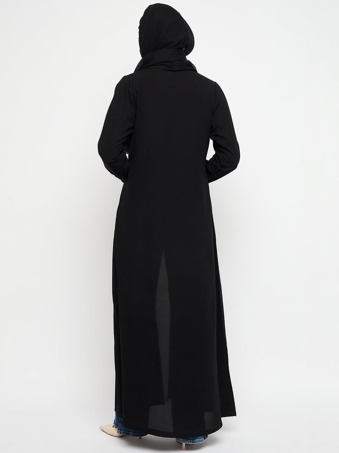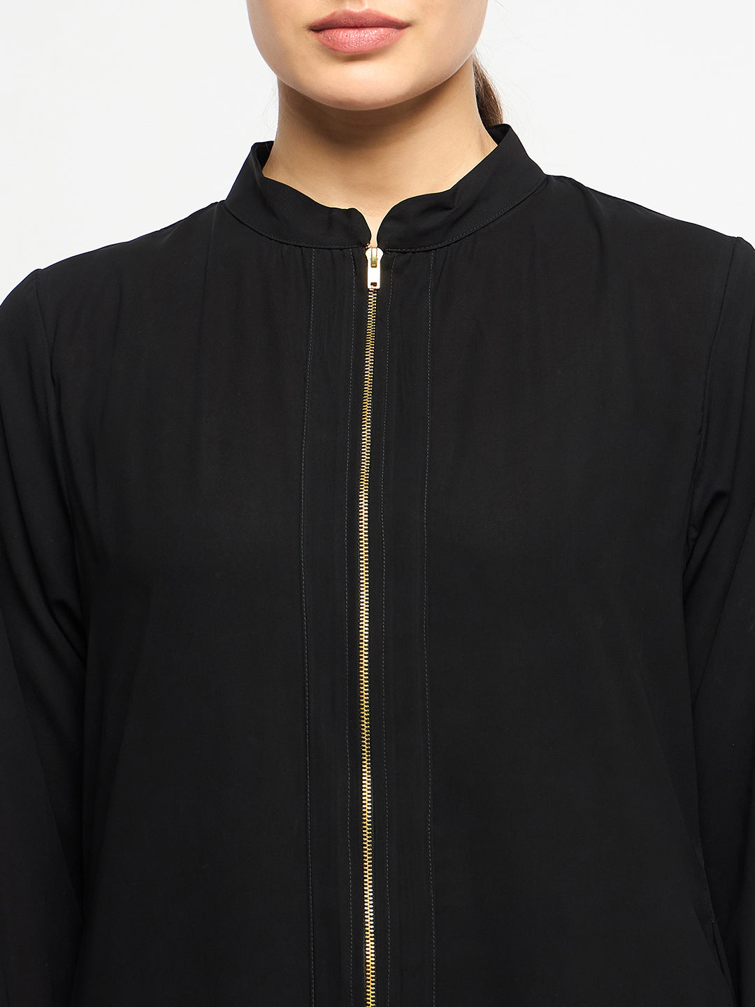 Indulge in femininity with the Black Abaya Dress. Featuring a front open, zip closure, mandarin collar, and cuffed sleeves, this solid nida matte fabric abaya combines comfort and style. Ideal for all seasons, it effortlessly embodies modesty, offering Islamic women a chic and comfortable fashion choice.