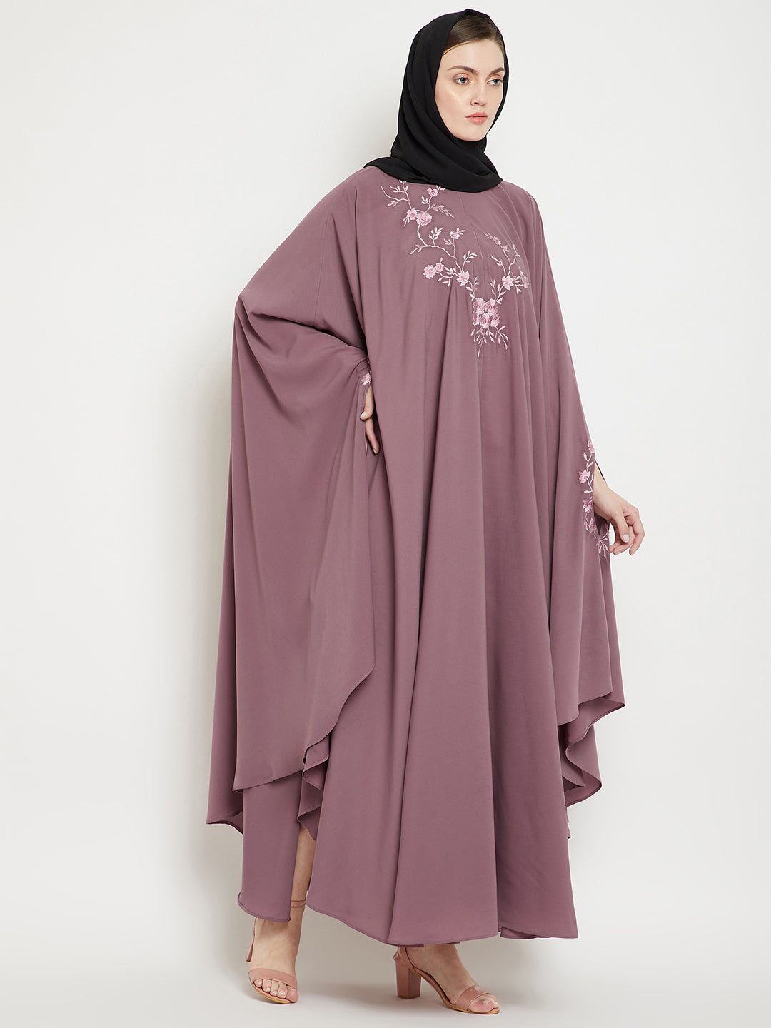 Thenabia free size Irani Kaftan providing free movement, comfortable fit and beautiful embroidery done on sleeves and Front. It has been made in ‘Nida Matte’ fabric which is soft and light weight