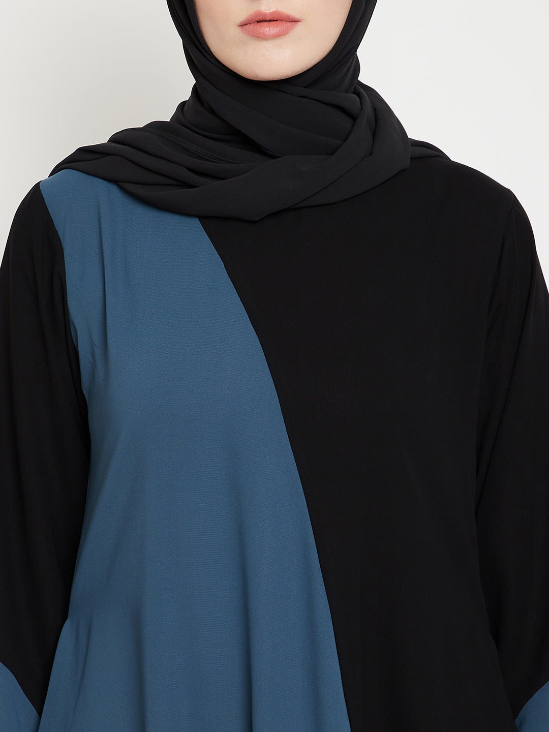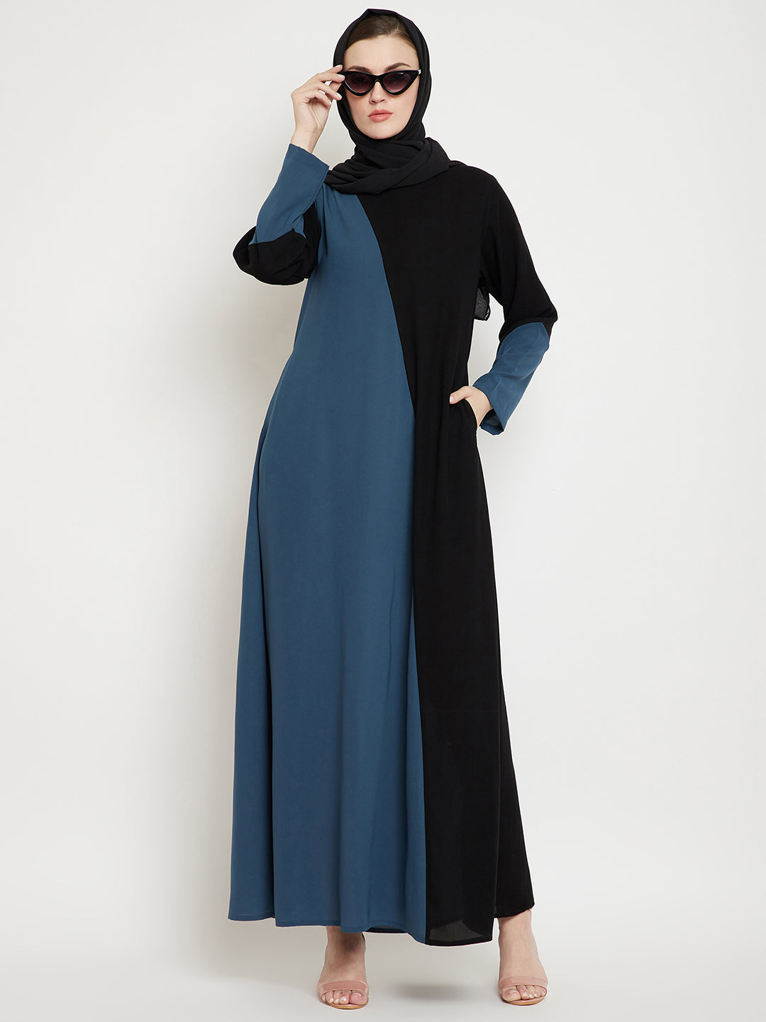Nabia's Abaya Dress for women is a sophisticated choice in a grey and black color combination, crafted from luxurious Nida Matte fabric. With both side pockets for added convenience, it seamlessly blends style and practicality. This abaya dress is perfect for contemporary Muslim women seeking a modern yet modest look.