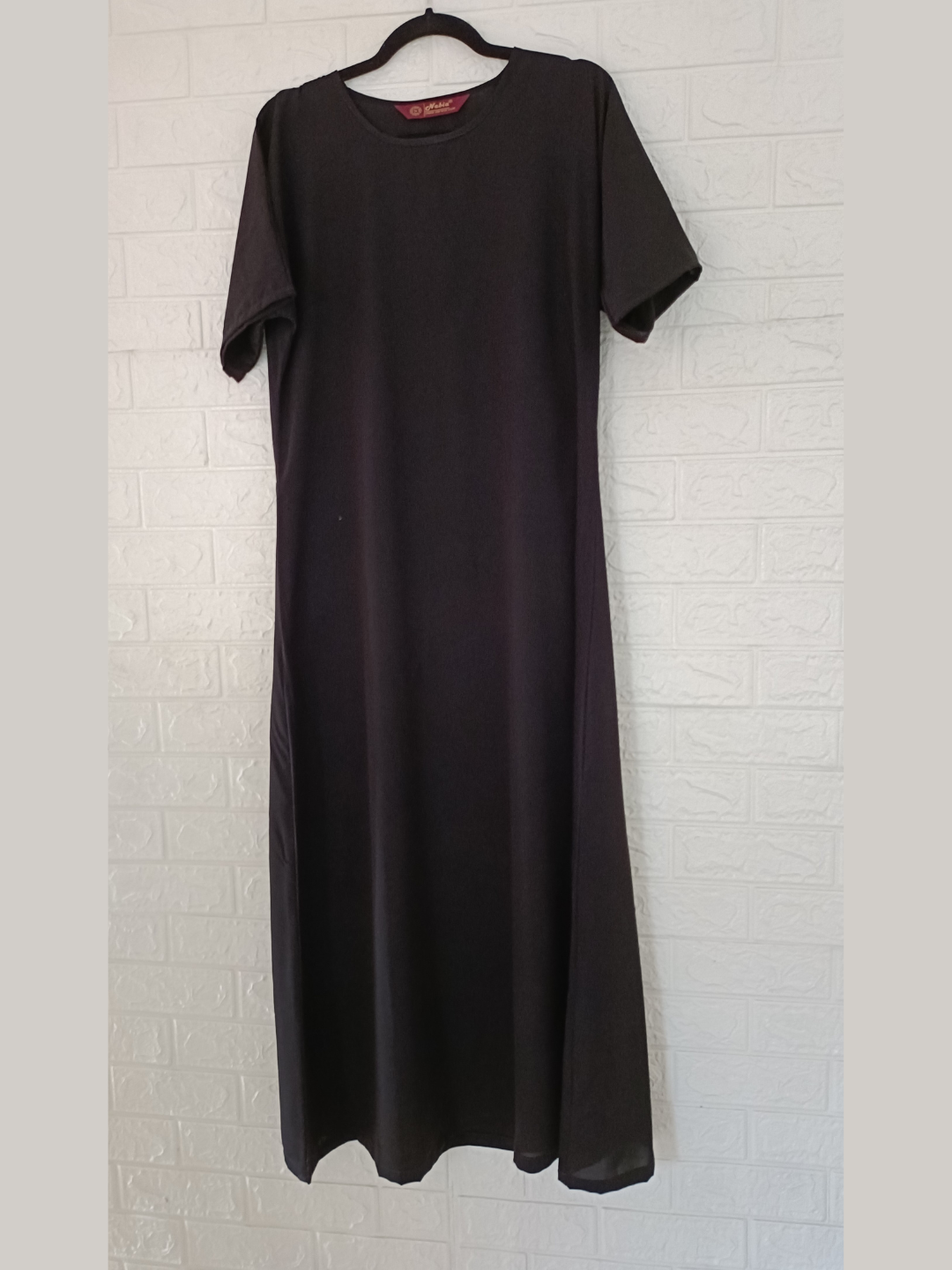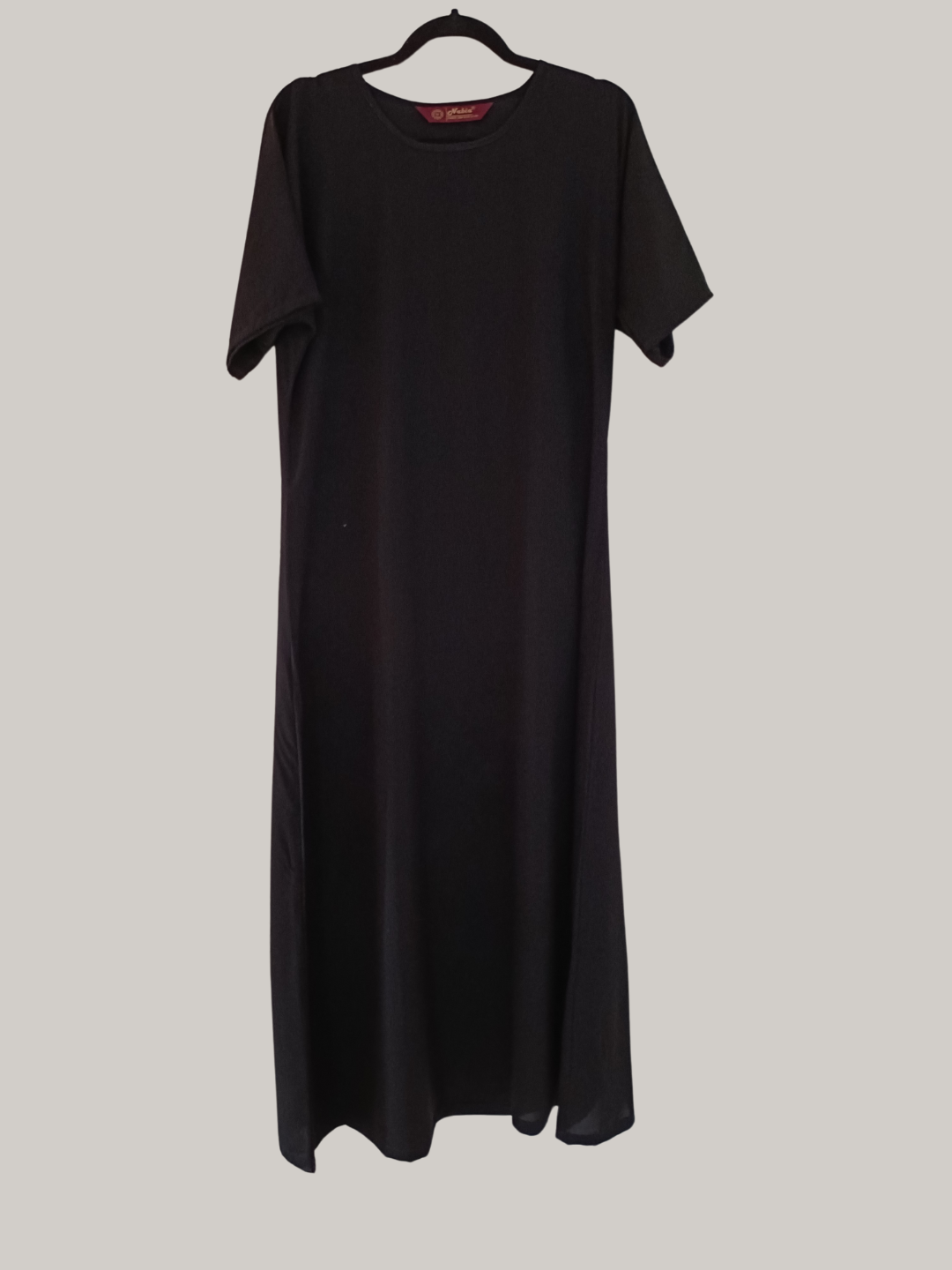 Enhance your look with our black half-sleeve inner layering slip in solid Nida Matte fabric. Its full-length design adds effortless elegance, pairing beautifully with trench coats, jackets, kimonos, and open abayas. Offering versatile style and timeless coverage, this slip is a perfect layering essential for any occasion.