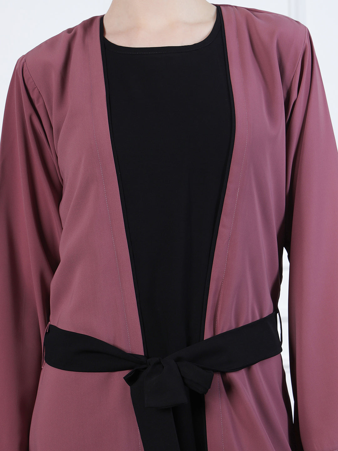 Elevate your style with inner included the Pink Solid Front Open Shrug Abaya Burqa. Featuring long, free sleeves, a round neck, and a belt, it offers a loose, comfortable fit. Made from nida matte fabric, this shrug is perfect for Islamic and Muslim women, adding a chic touch to any outfit. Ideal for various occasions, it combines modesty with contemporary flair.