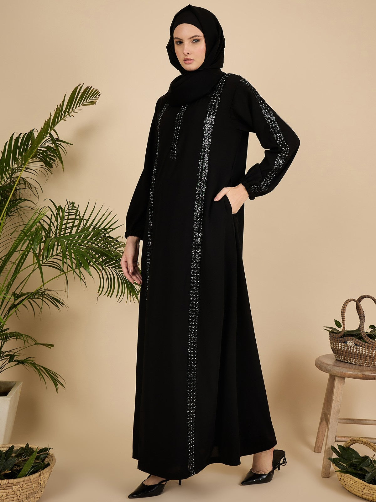Elevate your modest wardrobe with this Luxury Nida Matte Abaya, designed to blend sophistication, comfort, and elegance. Crafted from premium Nida matte fabric, it offers a smooth, flowy drape that feels soft against the skin and retains its refined look all day. Perfect for formal events, evening gatherings, or stylish daily wear, this abaya ensures you radiate grace and confidence wherever you go, making it an essential piece for the modern modest woman.