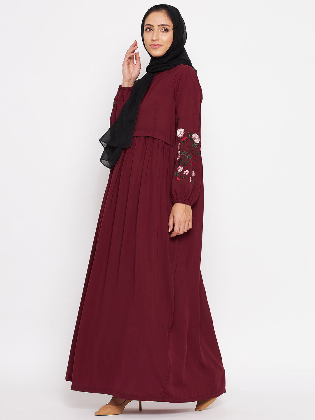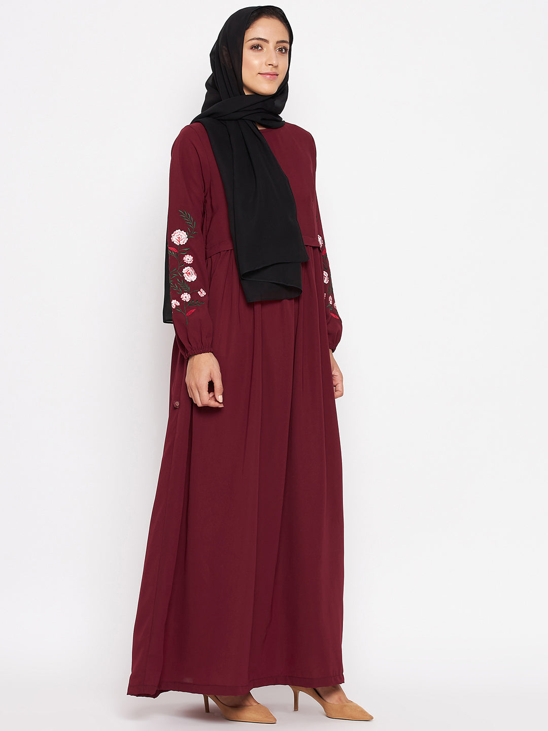 Made exclusively for women who want to embrace style and modernity without stepping out of traditional values and faith. Create your own aura wherever you are. This abaya will make you a symbol of style and tradition, at every place you step in. Providing free movement, comfortable fit, long sleeves and beautiful embroidery done on Sleeve. This will give you a sense of completeness and Confidence, Order yours today!