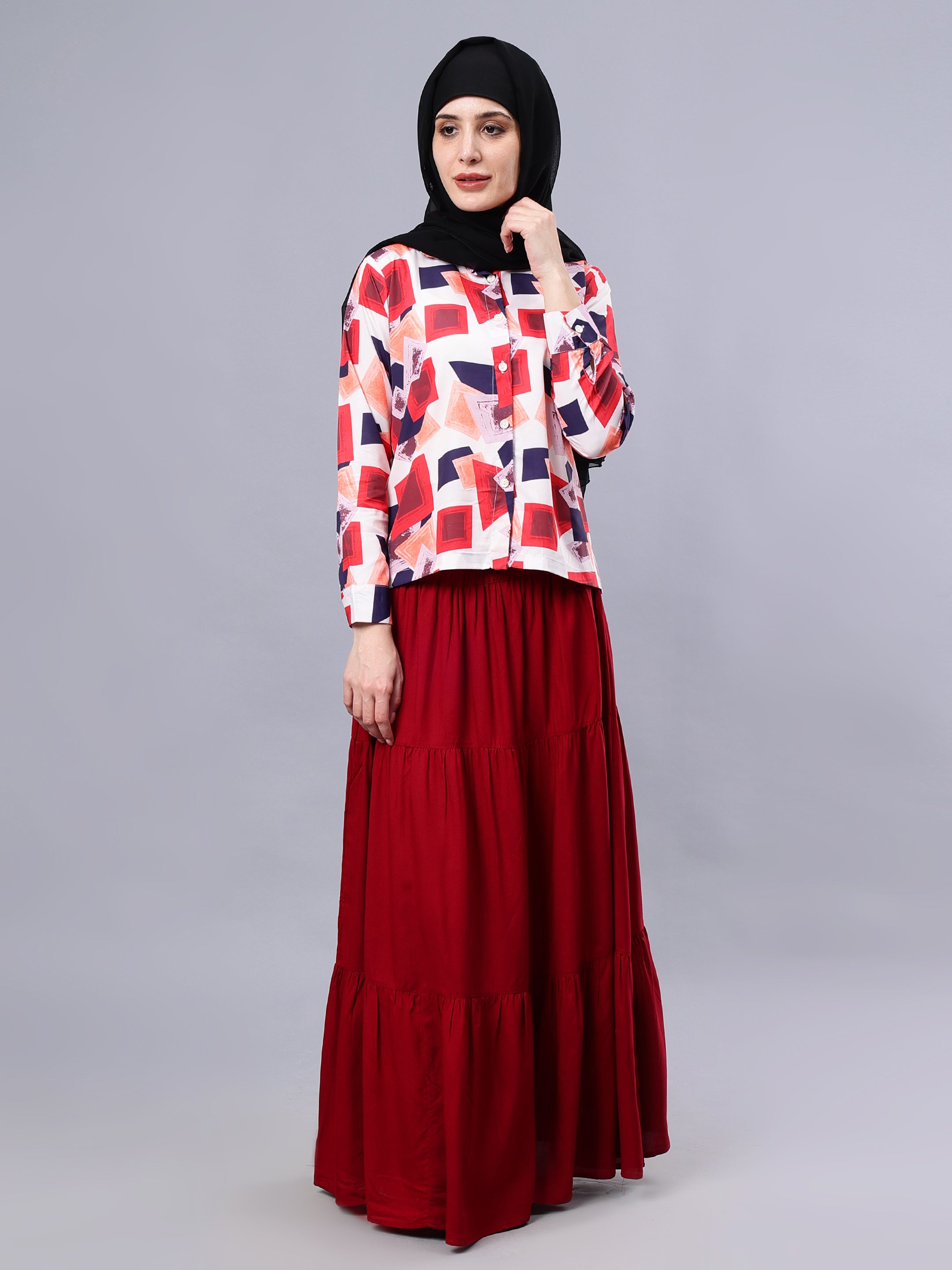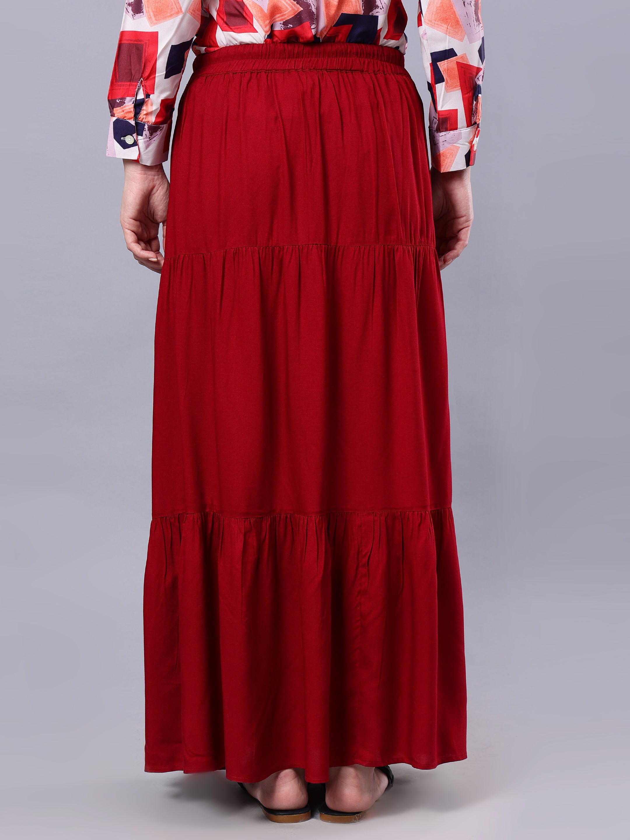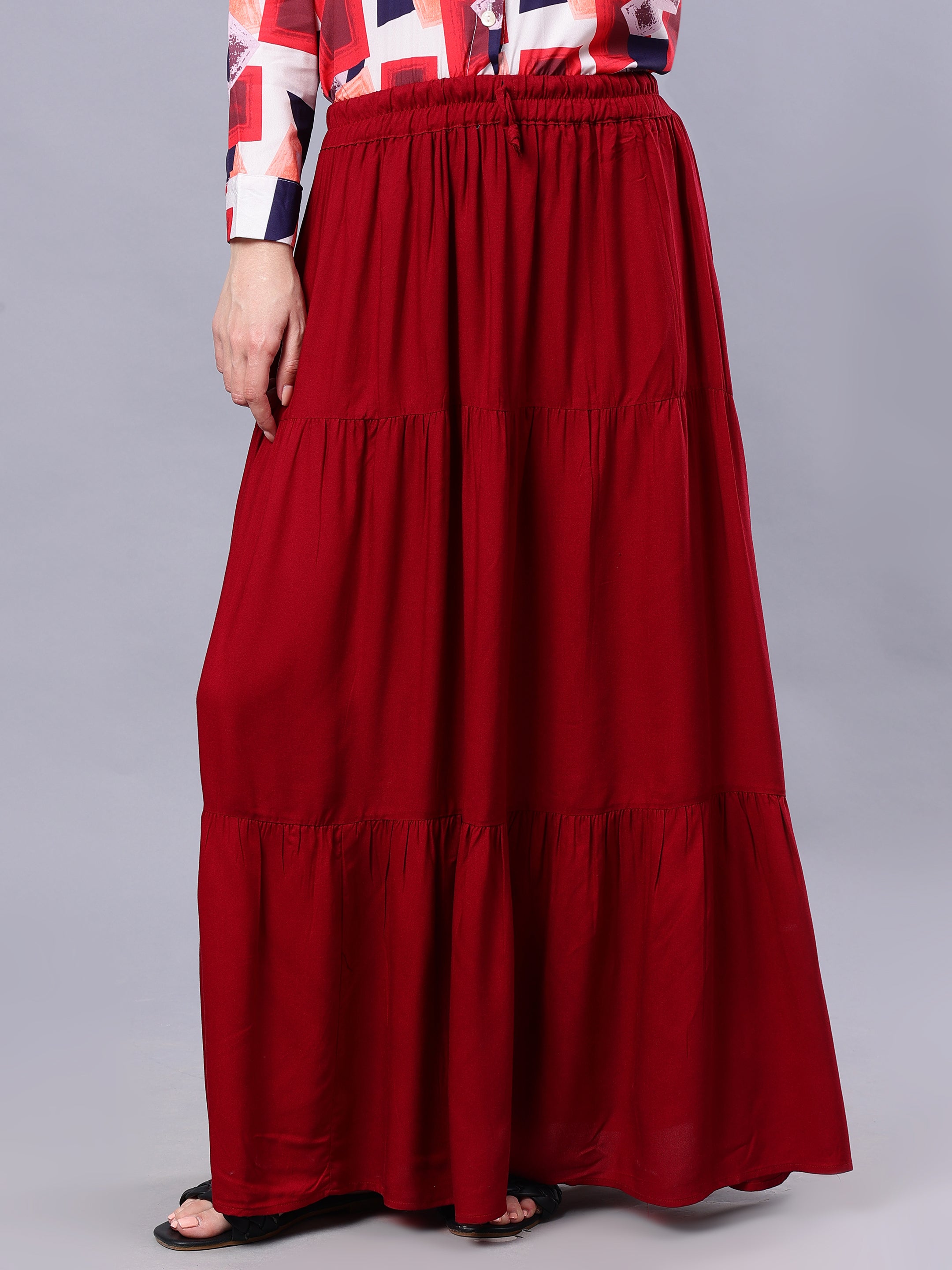 Elevate your wardrobe with our Nabia skirt in maroon solid. Crafted from comfortable rayon fabric, its slip-on closure ensures ease. Pair effortlessly with chic hijabs, tunics, shades, and favorite shoes for a glamorous, versatile ensemble that exudes timeless sophistication.