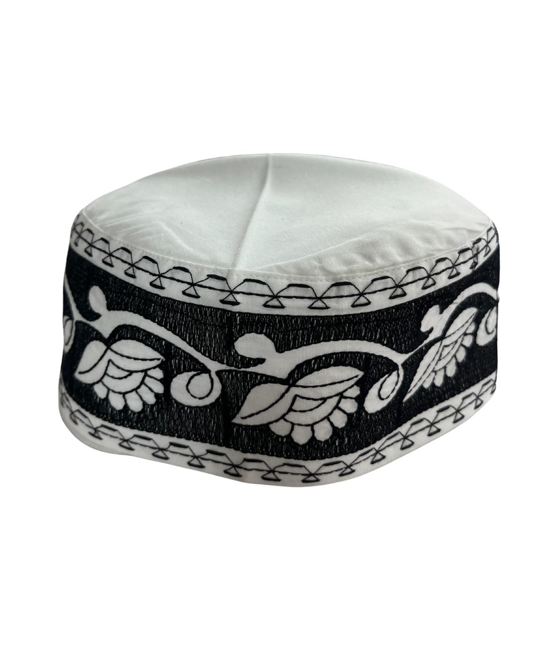 Step into prayer with style and grace wearing this white and black cotton kufi cap, thoughtfully designed for Muslim men who value both tradition and elegance. Featuring a crisp white top paired with a contrasting black band, this kufi is elevated by delicate floral embroidery, creating a clean, timeless, and dignified look. Crafted from soft, breathable cotton, this cap ensures maximum comfort, even in warm climates—making it ideal for daily Salah, Jummah, Eid, or special religious gatherings.