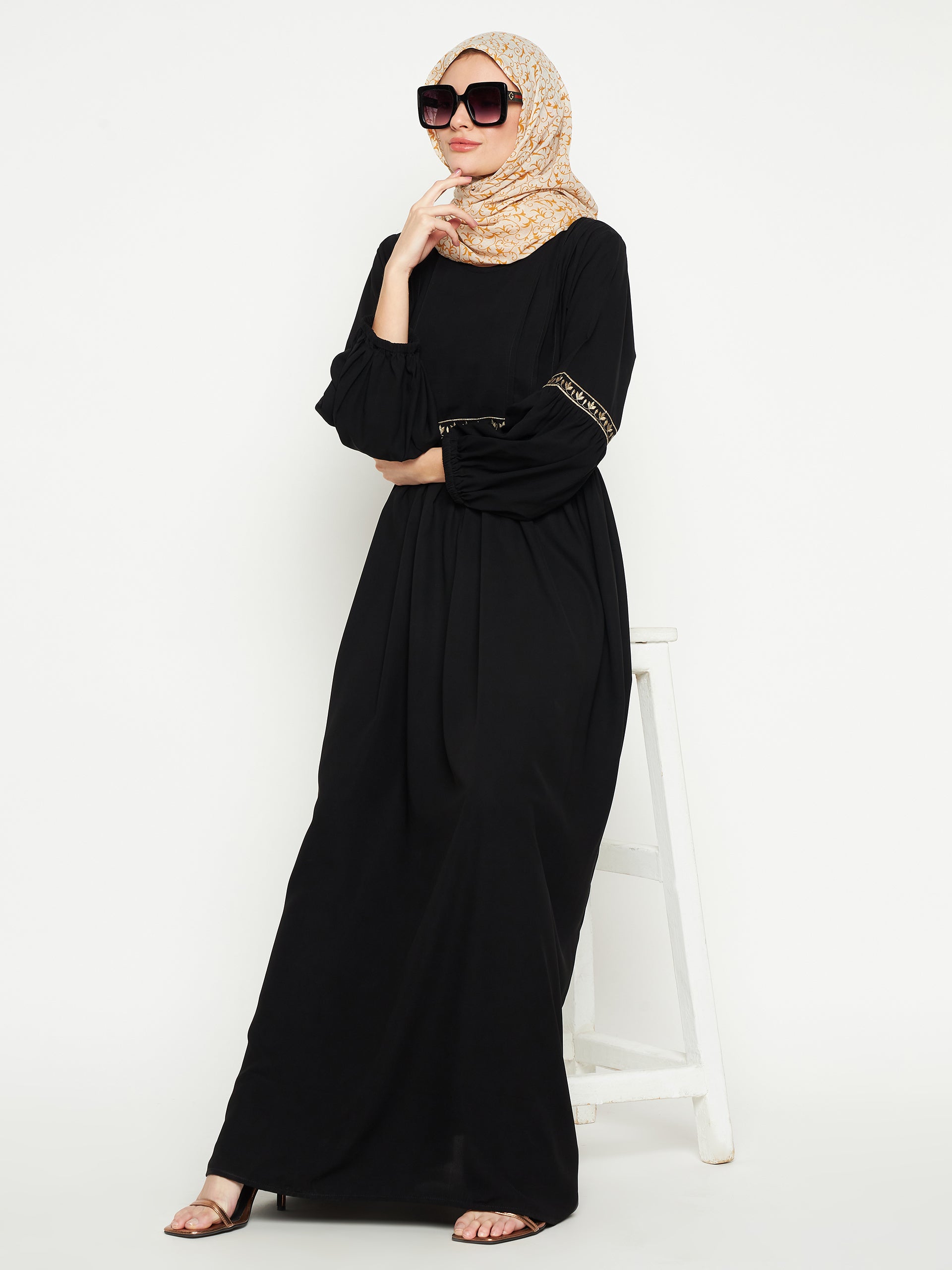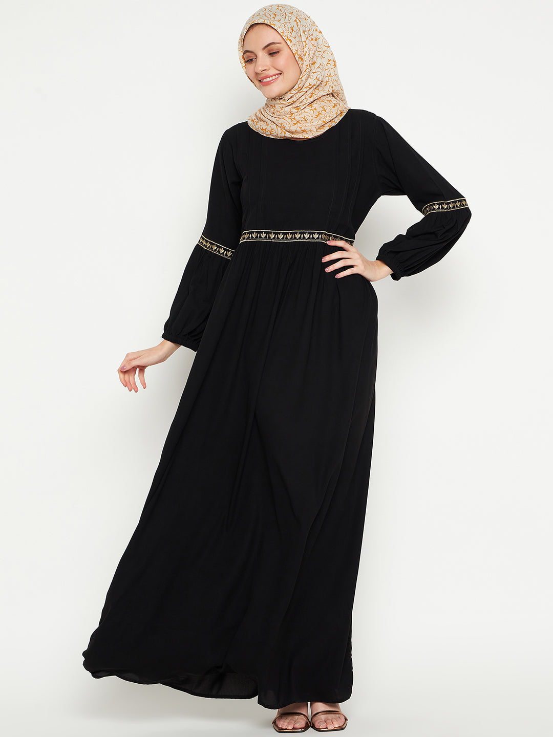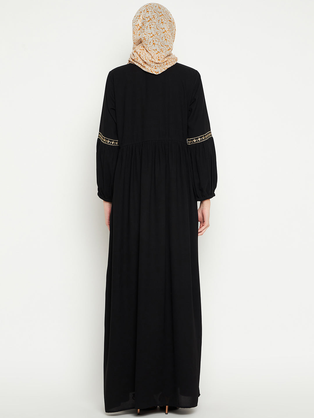 Discover the elegance of the Black Embroidery Abaya by Nabia, conveniently available online. This modest Islamic attire boasts intricate embroidery on the front and sleeves, providing a fashionable and graceful choice for Muslim women who value both their faith and style. Embrace your modesty with this beautifully crafted Abaya.