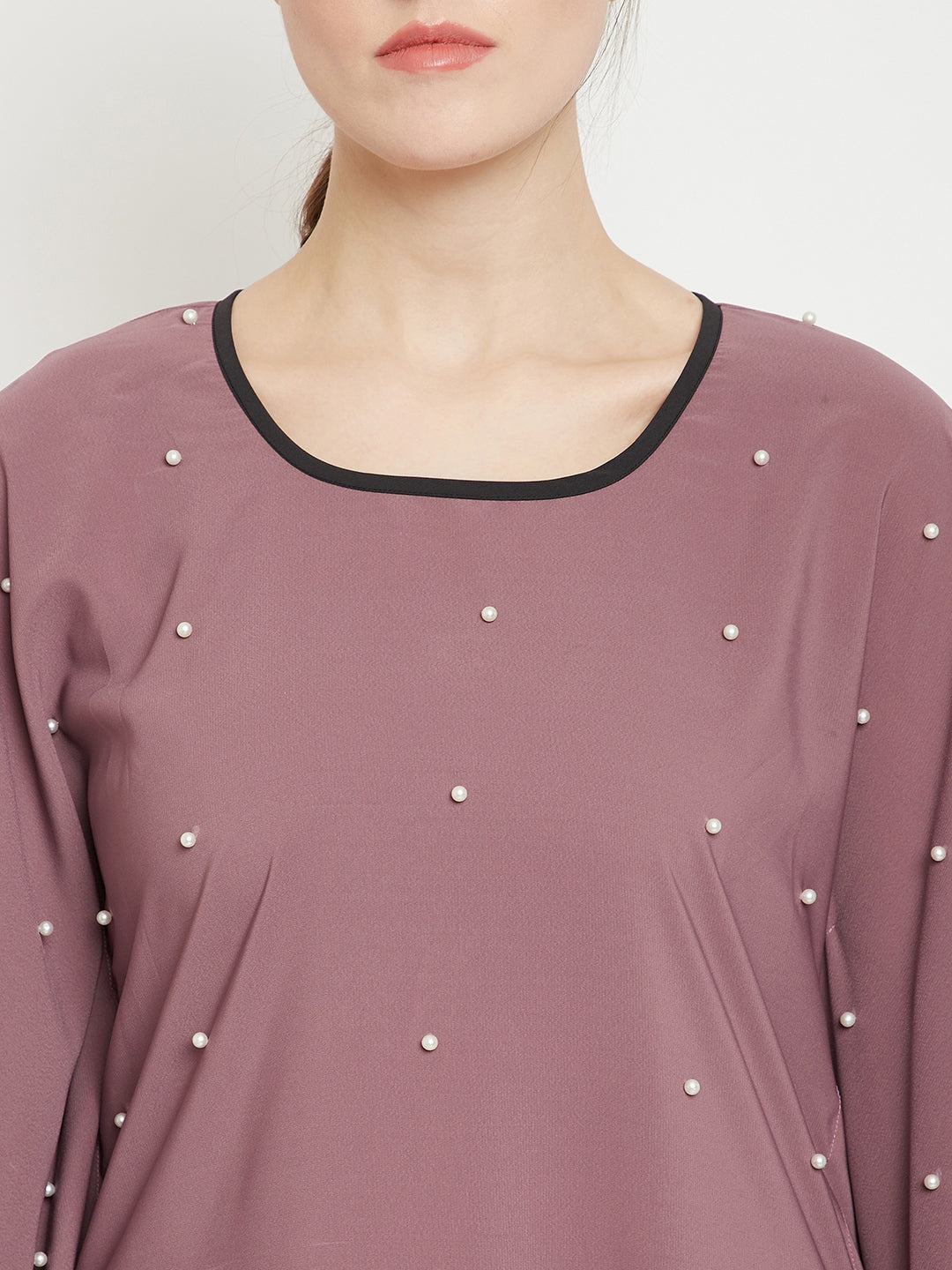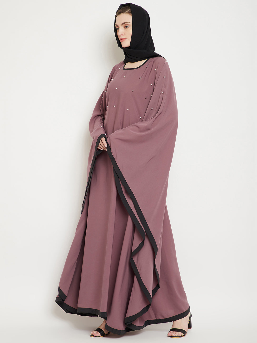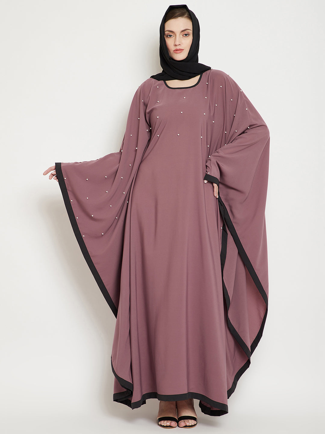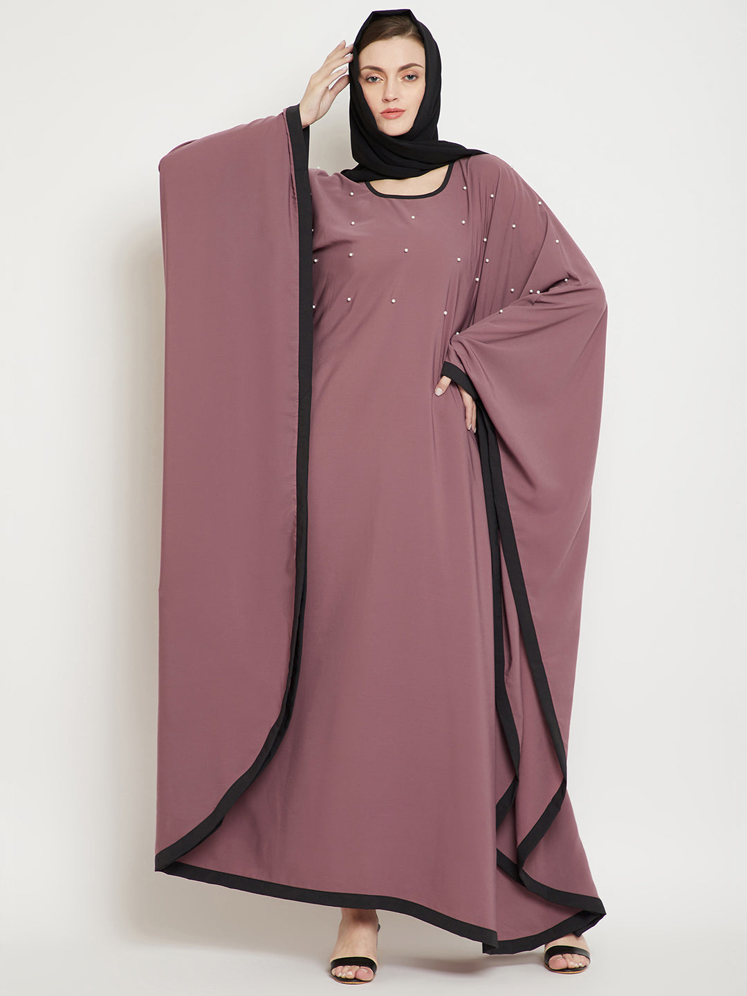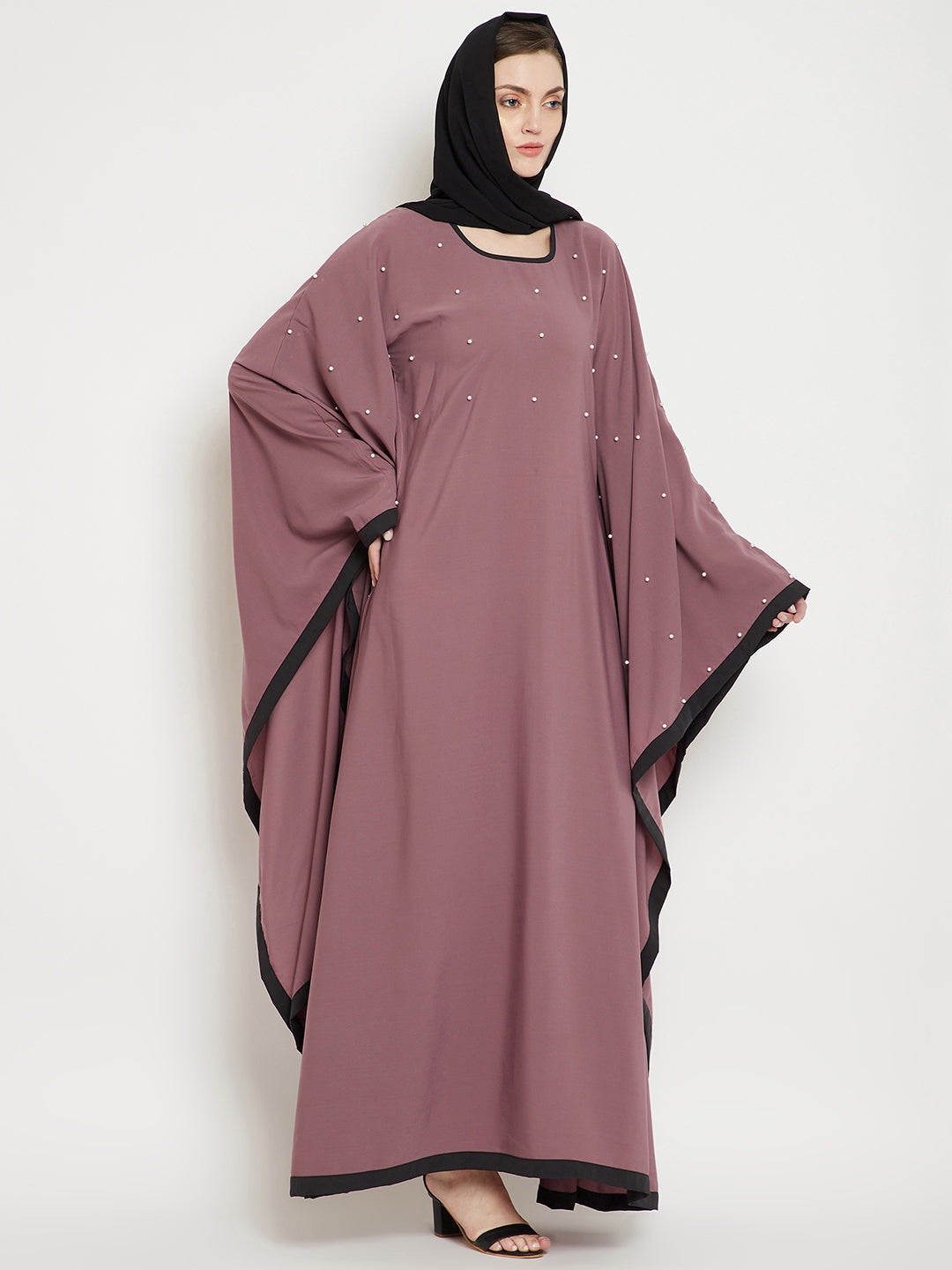 Thenabia solid kaftan made for your modesty and elegance while being a perfect comforting wear enhanced with Pearl Design. It has been made in ‘Nida Matte’ fabric which is soft and light weight.