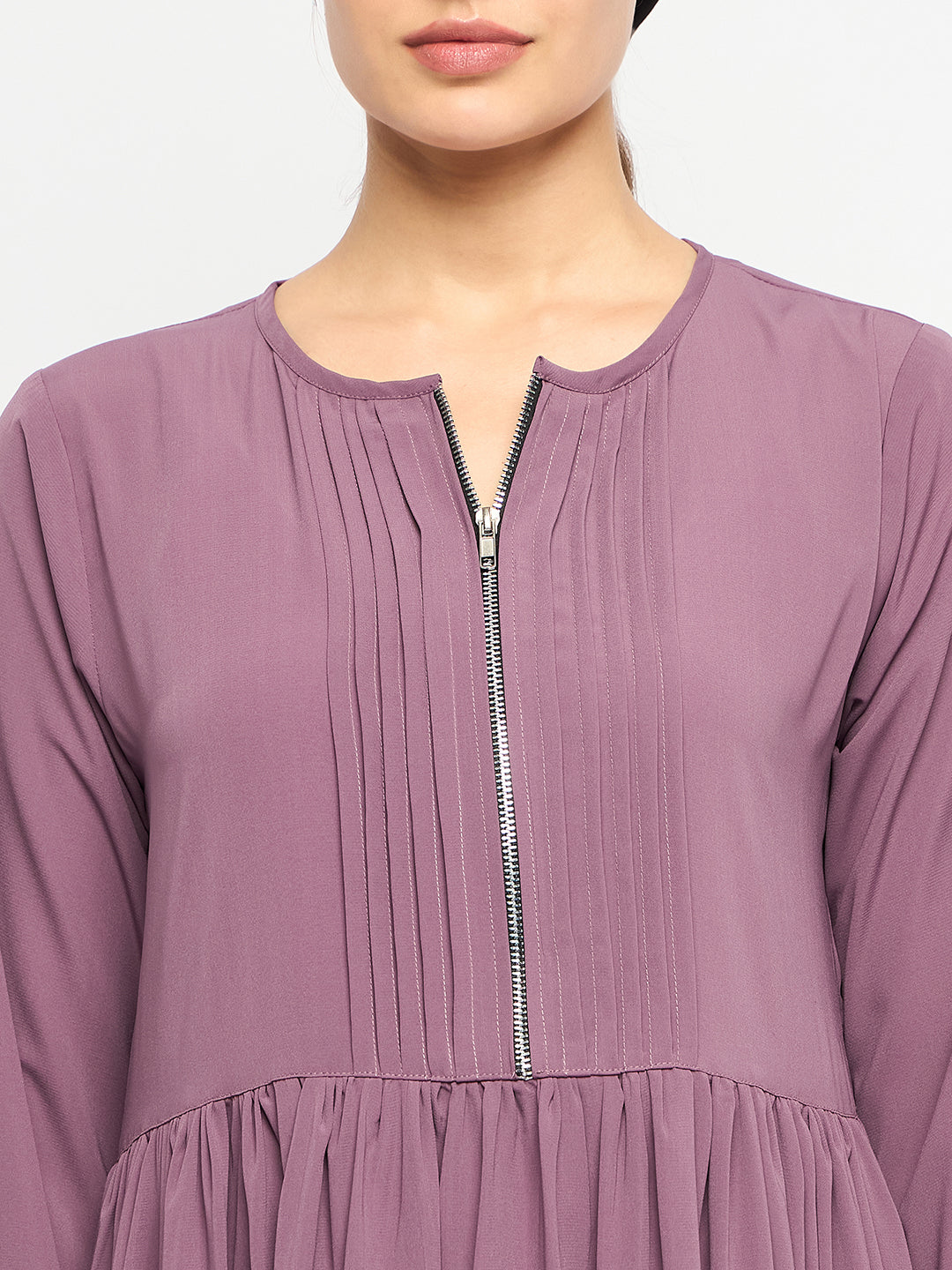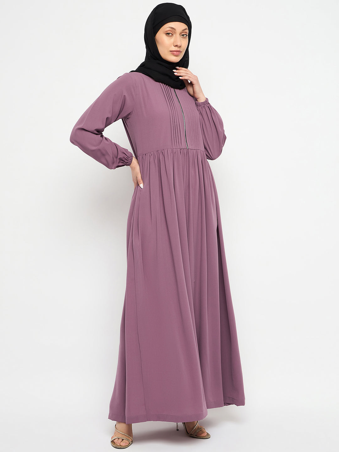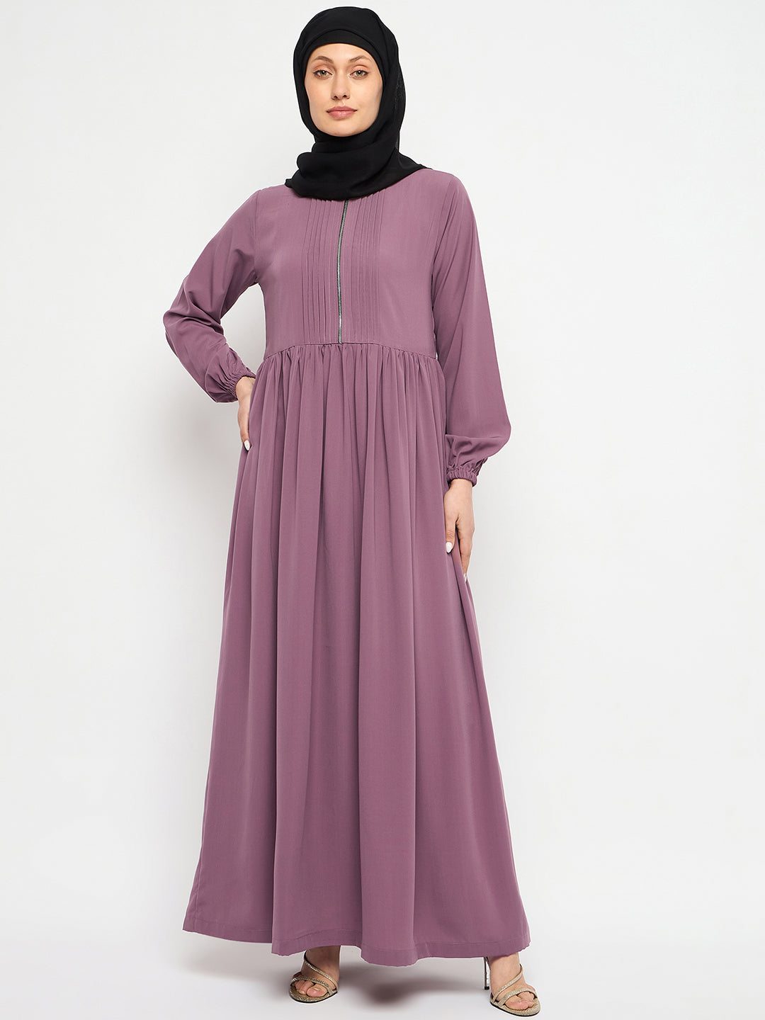 Indulge in femininity with the Pink Abaya Dress. Featuring a front zip closure, round neck, and puffed sleeves, this solid rayon fabric abaya combines comfort and style. Ideal for all seasons, it effortlessly embodies modesty, offering Islamic women a chic and comfortable fashion choice.