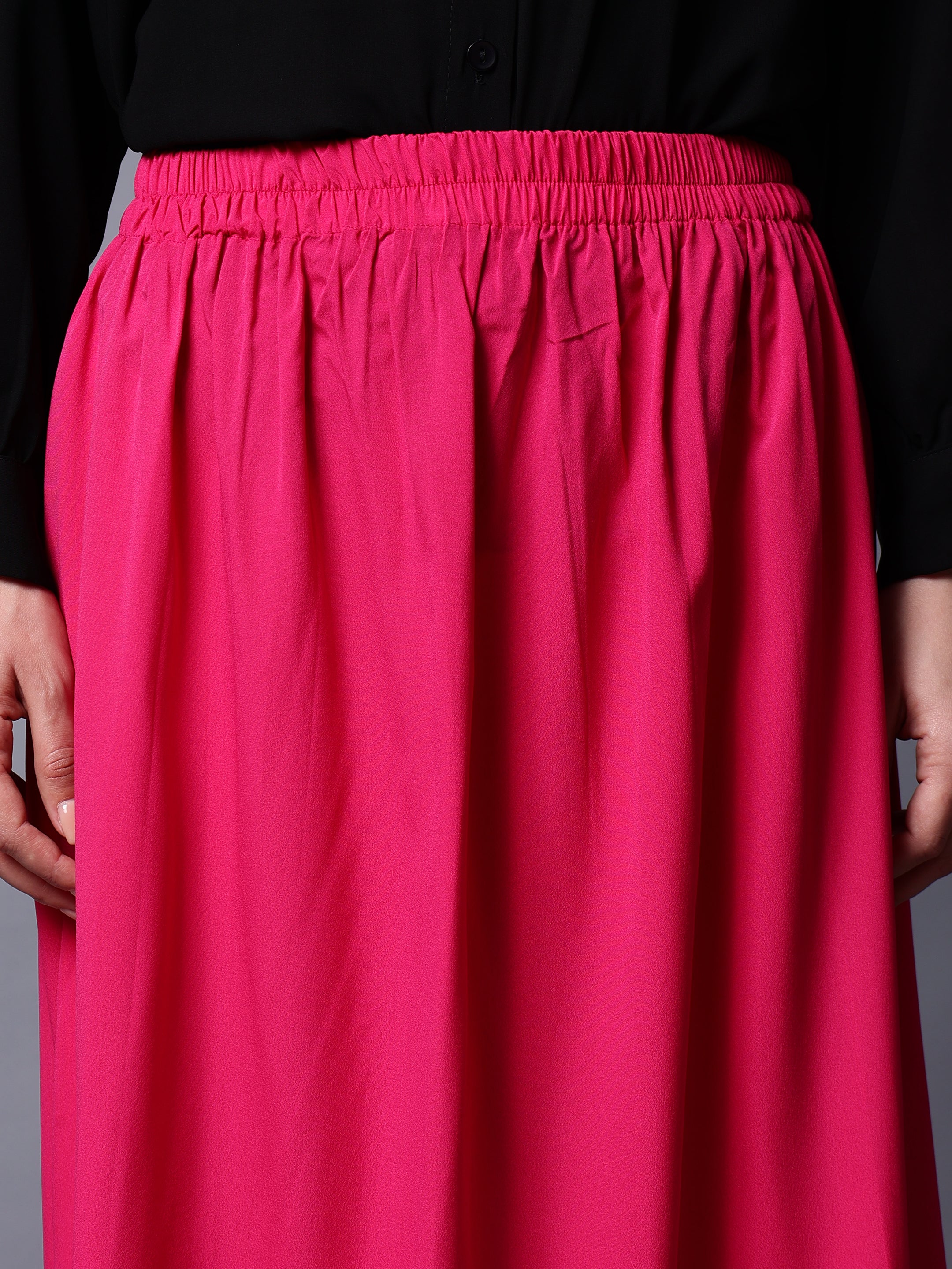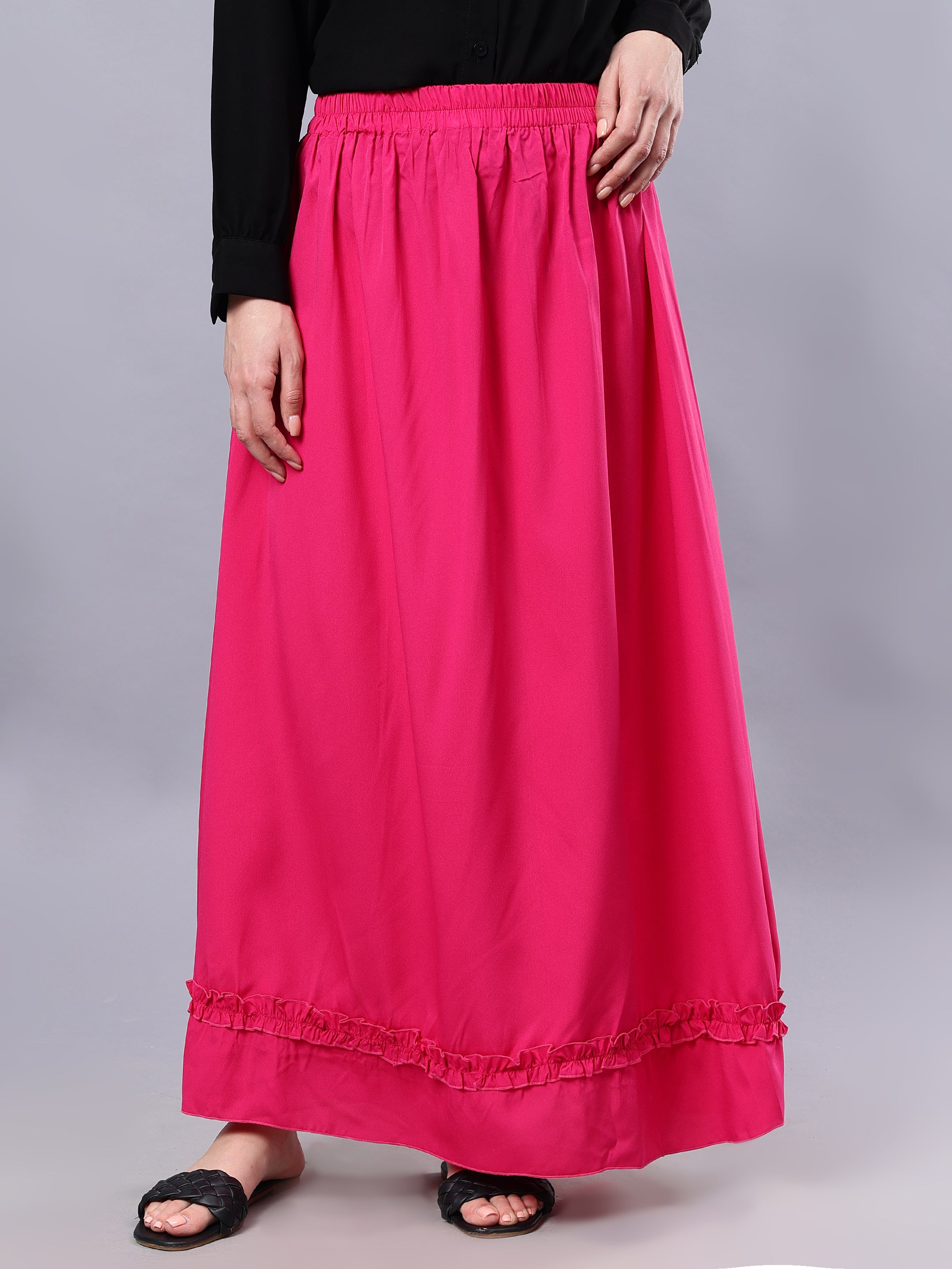 Elevate your wardrobe with our Nabia skirt in solid pink. Crafted from comfortable polyester fabric, its slip-on closure ensures ease. Pair effortlessly with chic hijabs, tunics, shades, and favorite shoes for a glamorous, versatile ensemble that exudes timeless sophistication.