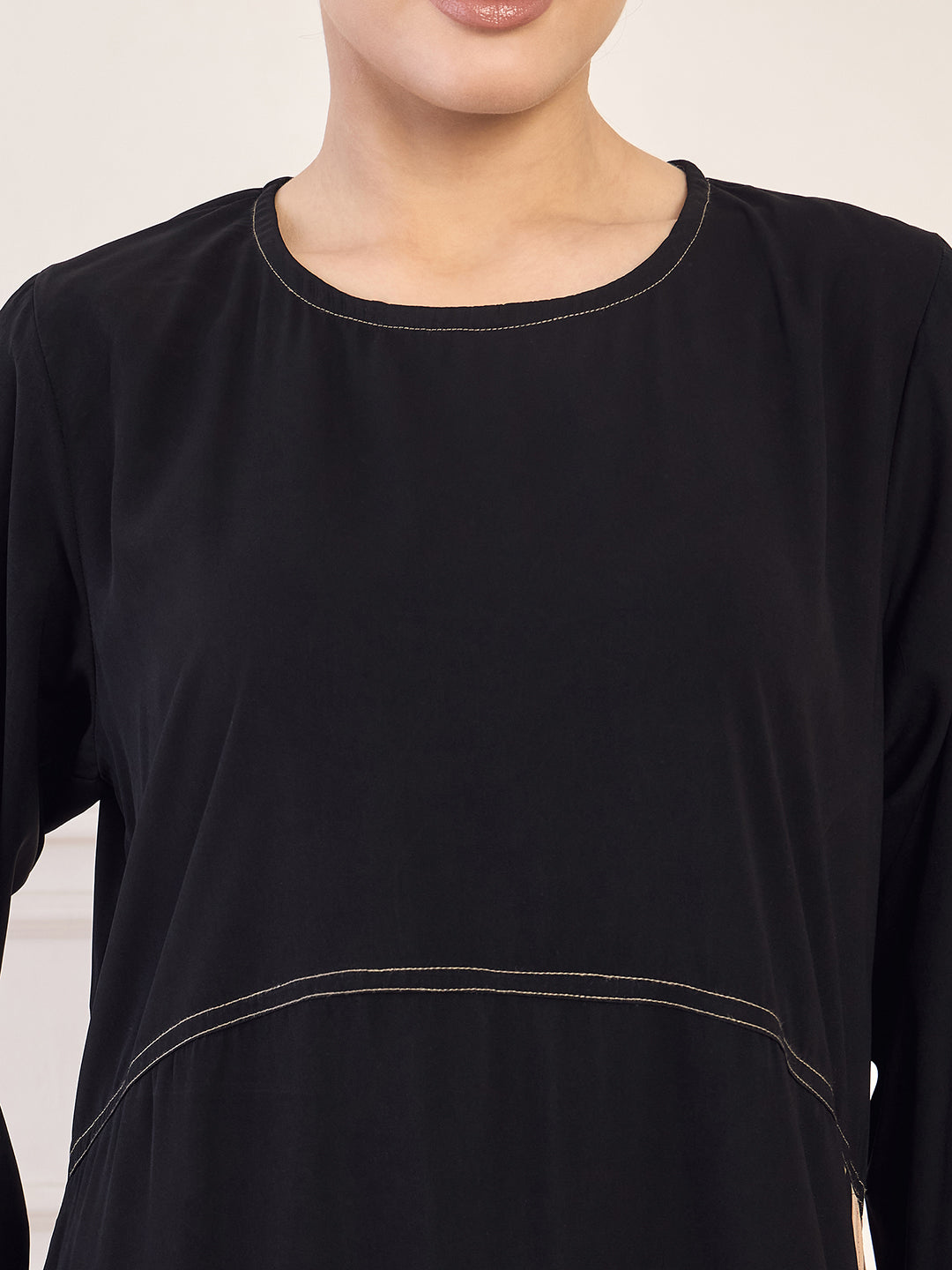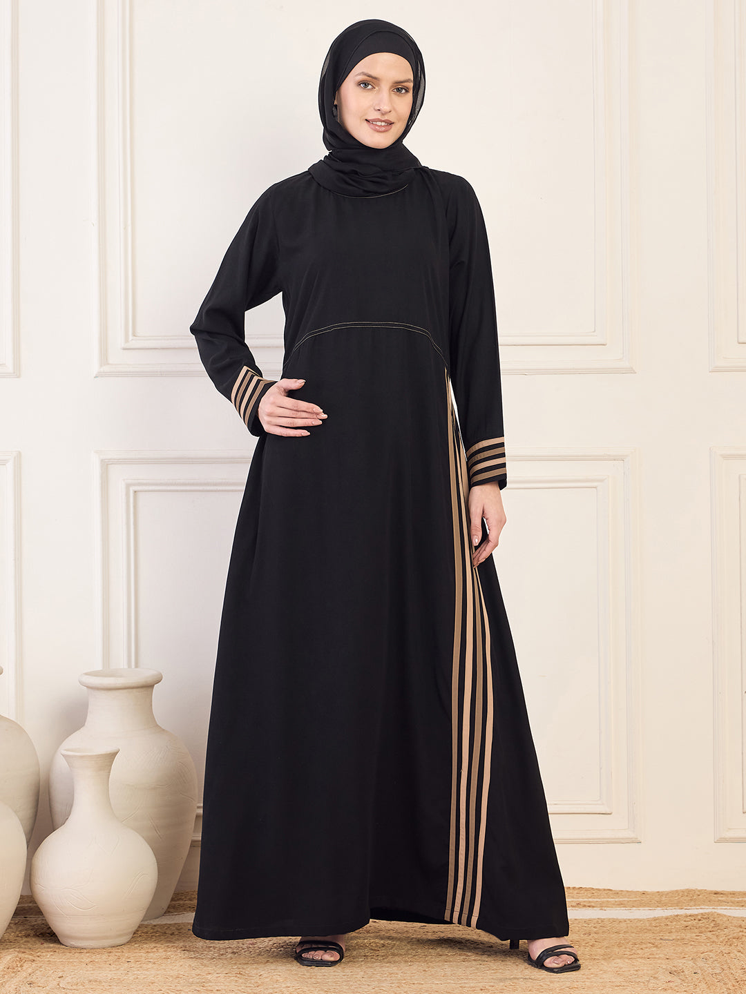 The black A-line abaya burqa is the epitome of modest elegance, tailored for Islamic and Muslim women. Crafted from premium Nida Matte fabric, it showcases graceful piping detailing that adds a refined touch. From the latest modest fashion collection, this abaya combines style and versatility, making it perfect for daily wear or special occasions. Embrace timeless sophistication with this beautifully designed piece, offering unmatched comfort and effortless grace.