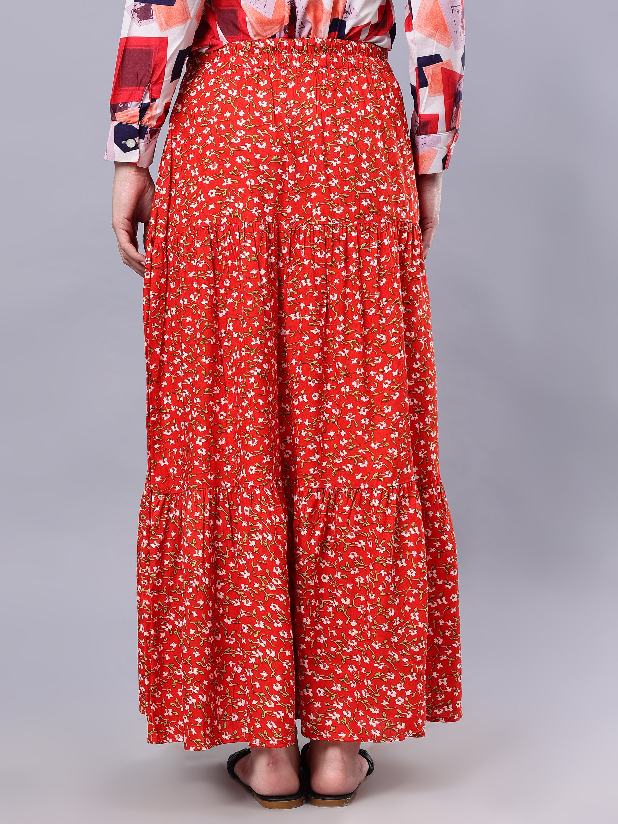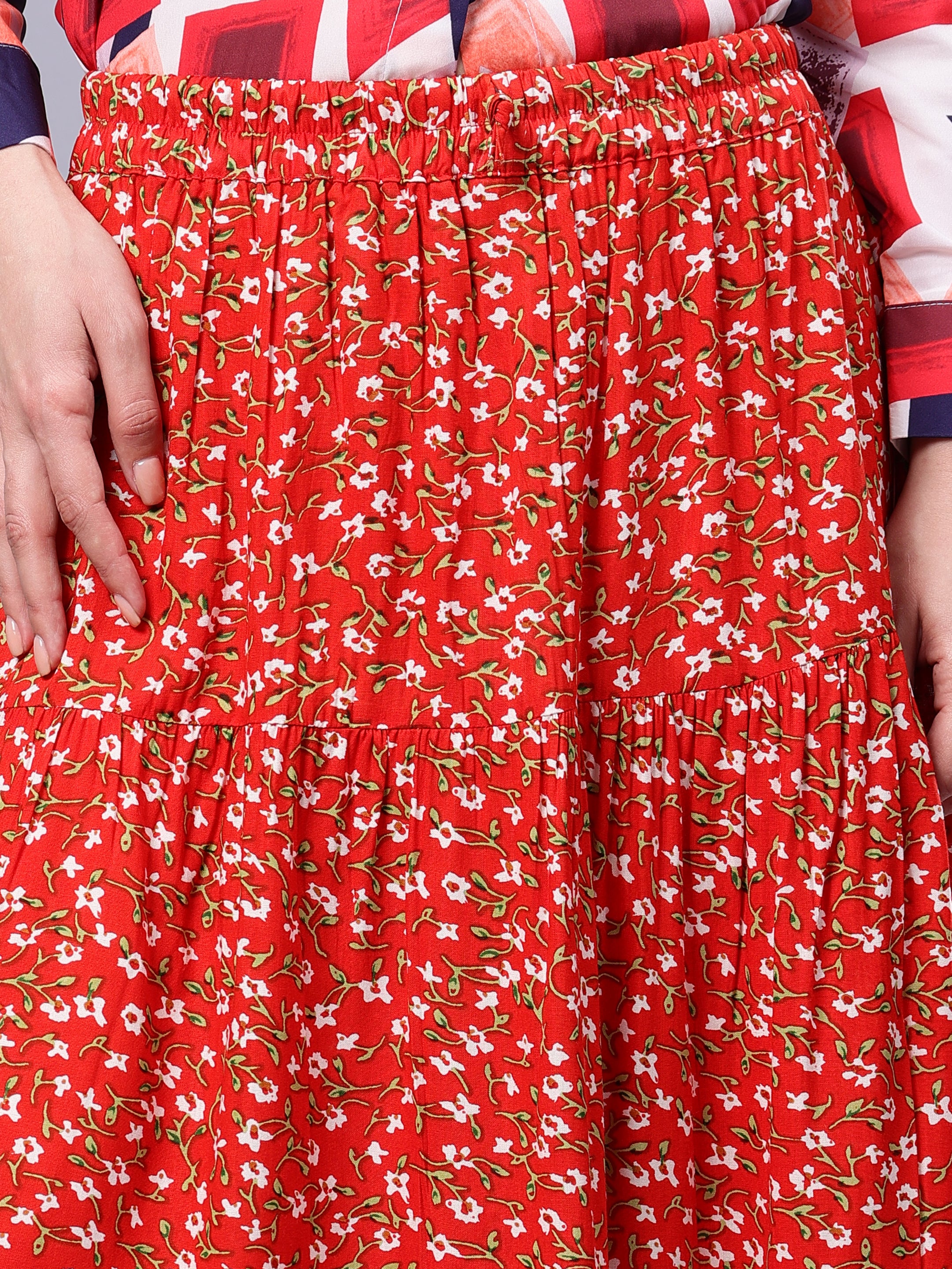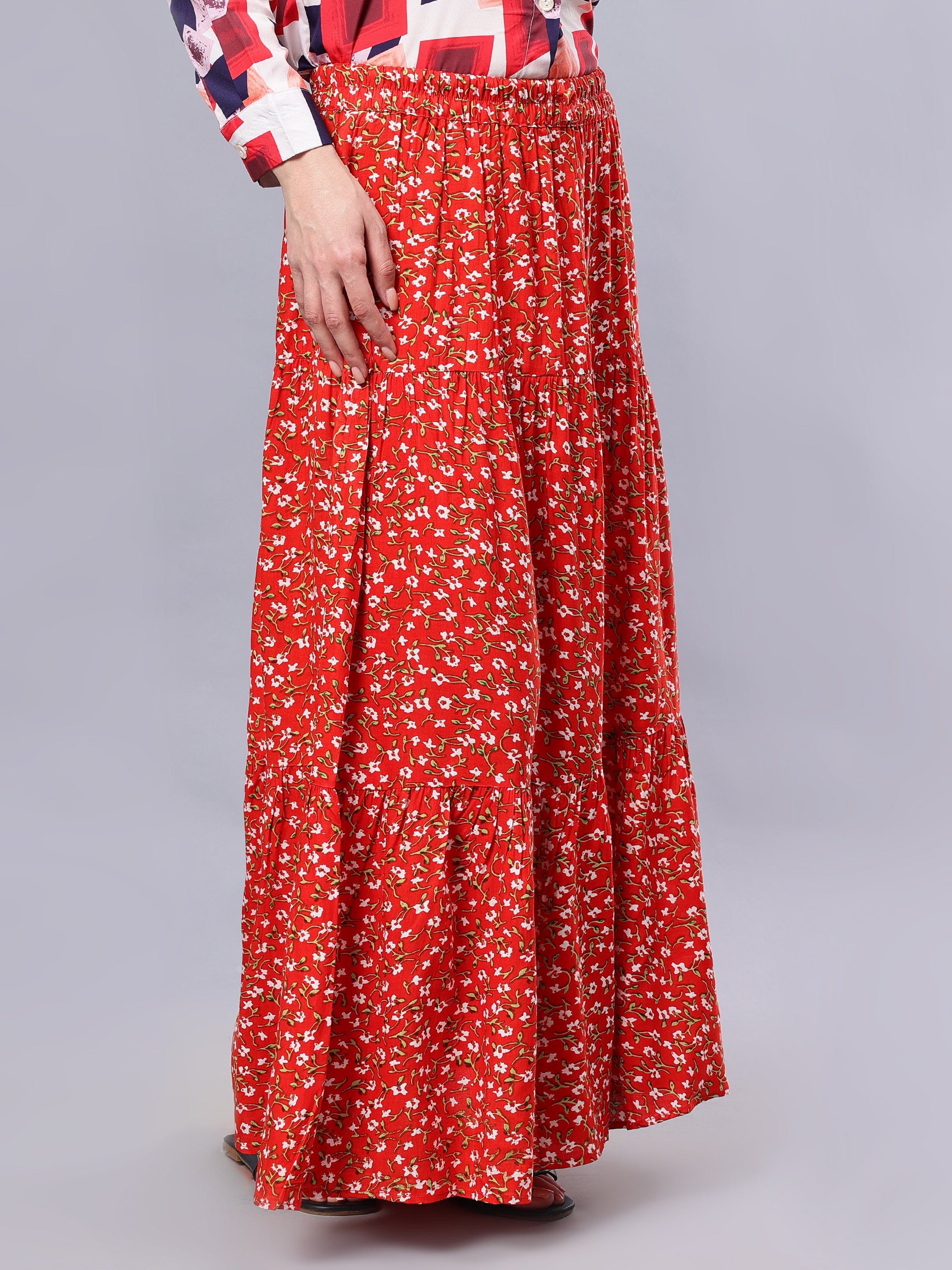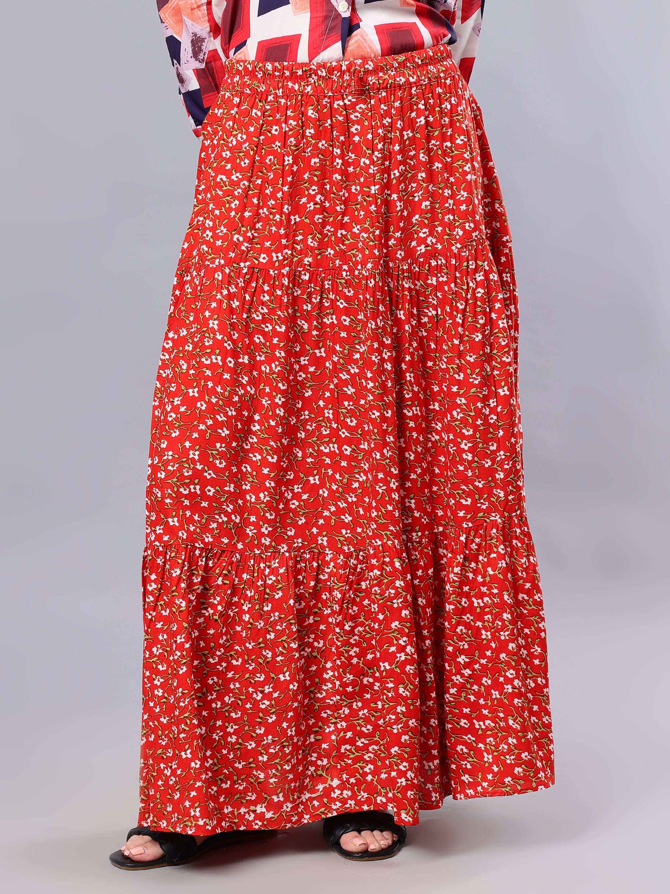 Elevate your wardrobe with our Nabia skirt in red floral printed. Crafted from comfortable rayon fabric, its slip-on closure ensures ease. Pair effortlessly with chic hijabs, tunics, shades, and favorite shoes for a glamorous, versatile ensemble that exudes timeless sophistication.