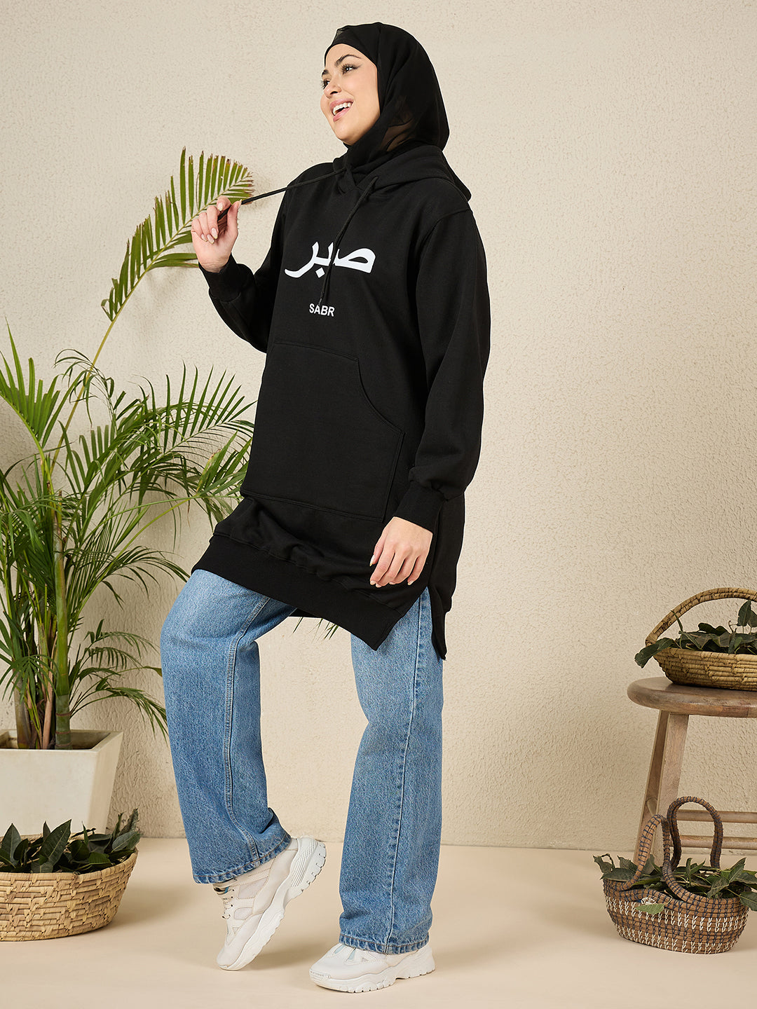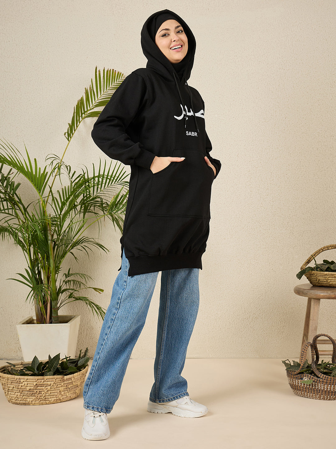 Bring a refined touch to your winter modest wardrobe with this Black Solid Fleece Long Hoodie for Women, thoughtfully made for cozy warmth, ease, and complete coverage. Tailored from high-quality, ultra-soft fleece, it offers a comfortable slip-on style, a snug hood for added protection, spacious front pockets, and relaxed full-length sleeves. Designed in a chic longline silhouette, this full-length fleece hoodie is perfect for layering on cold days while maintaining modesty. Ideal for everyday winter wear, travel, office, college, or casual outings, it delivers a blend of comfort, style, and practicality.