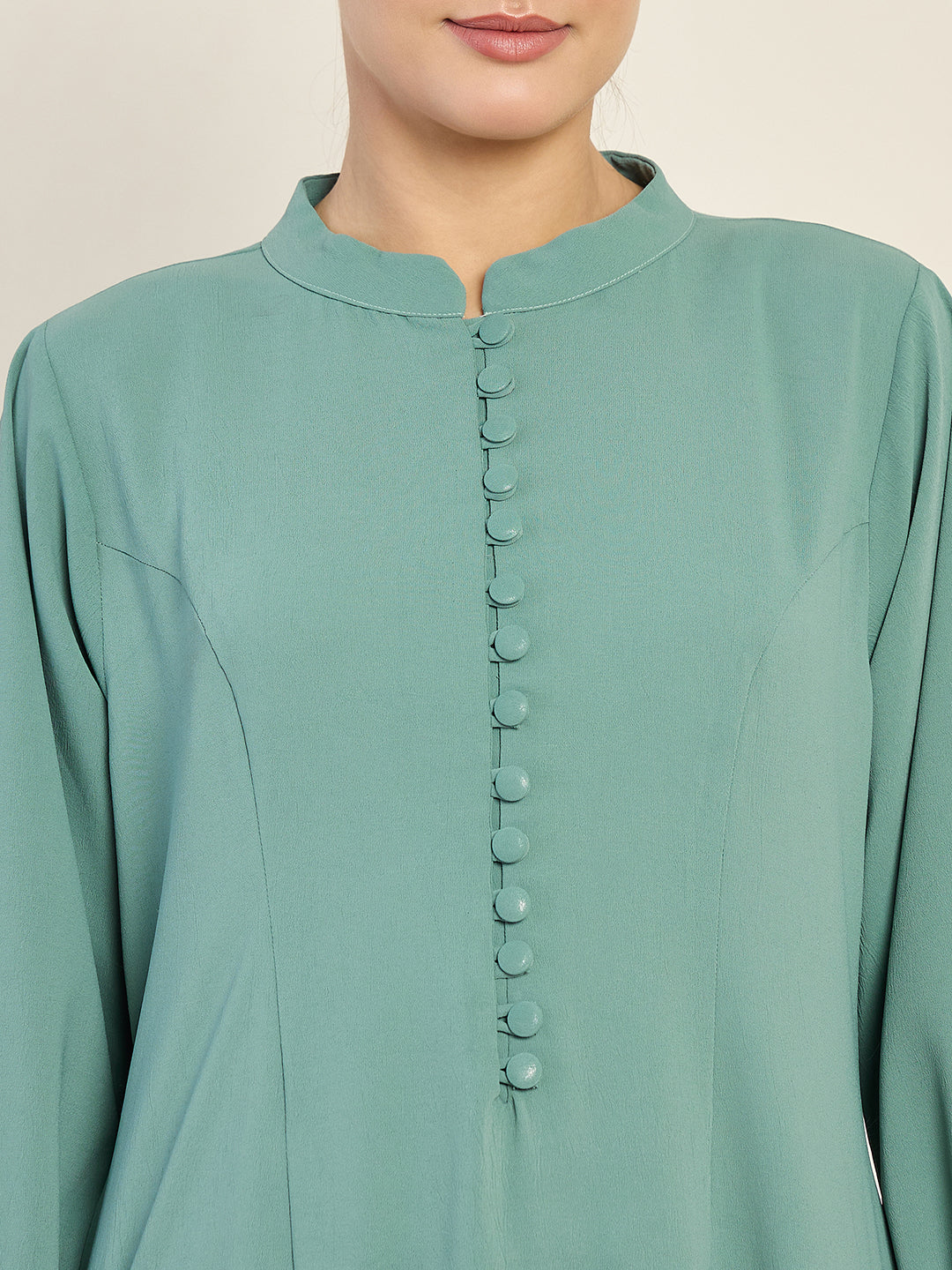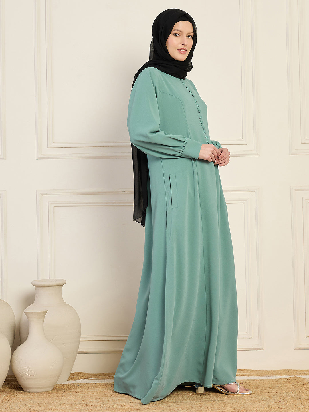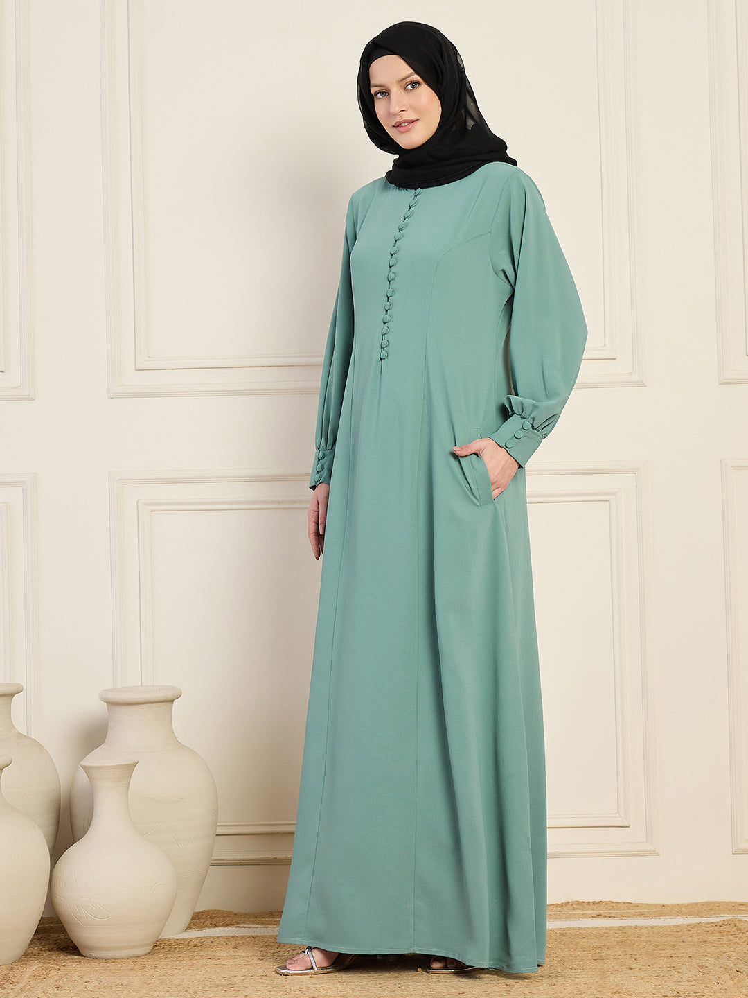 Experience grace and modesty with this exquisite sea green A-line abaya burqa, crafted from premium CY Crush fabric for superior comfort and style. Its flowing A-line silhouette flatters every figure, while the stunning sea green hue adds a touch of elegance. Perfect for Islamic and Muslim women, this versatile piece seamlessly transitions from daily wear to special occasions, making it an essential addition to your modest fashion collection.