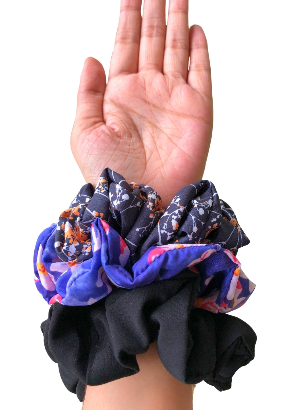 These scrunchies, designed for girls and women, offer comfortable wear for regular use. Featuring vibrant multicolor prints, they add an attractive touch to any hairstyle. Made from soft crepe fabric with elastic, they ensure a secure and gentle hold, perfect for both casual and stylish hair looks. Enhance your everyday hair routine with these eye-catching scrunchies.