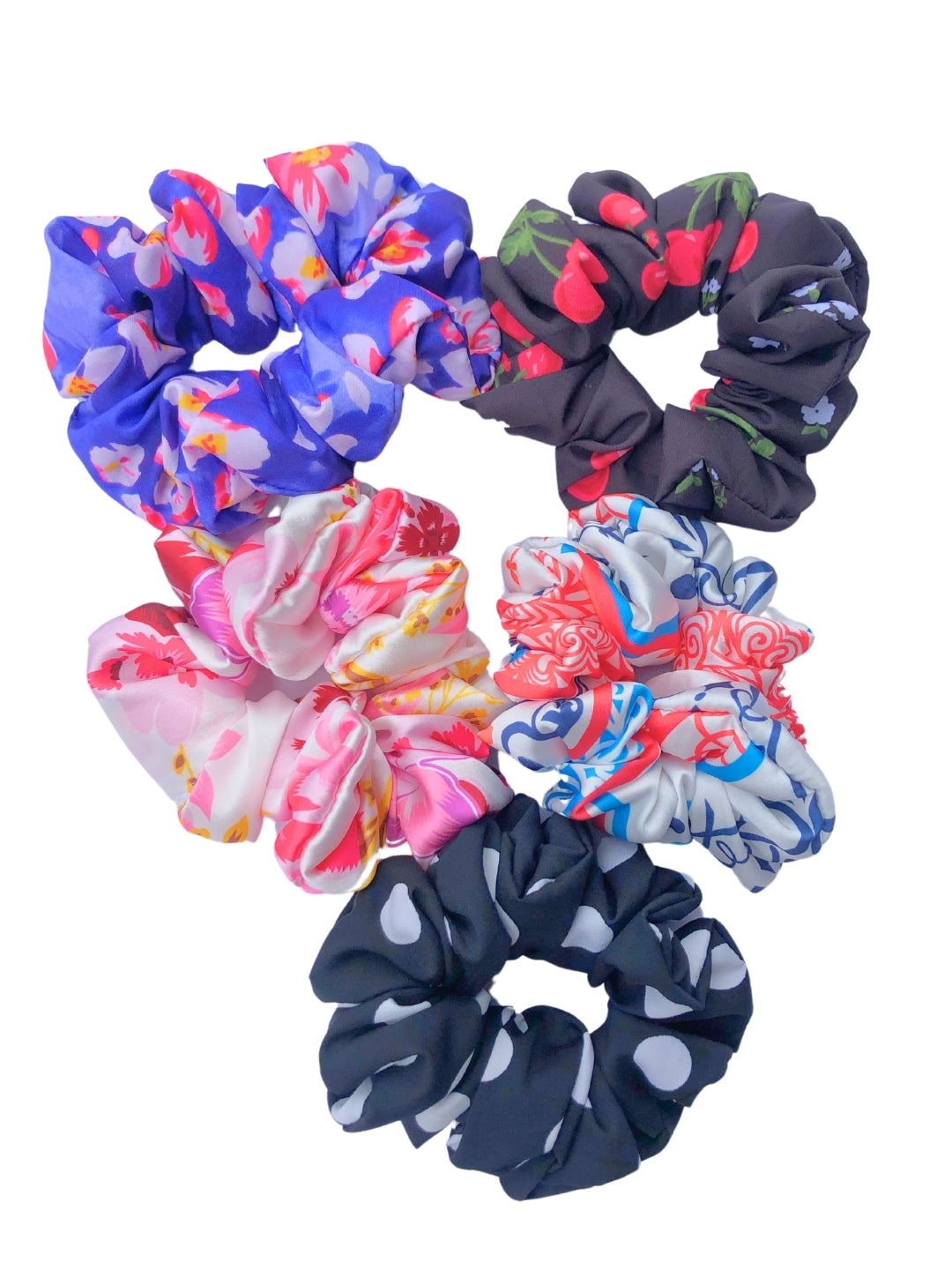Elevate your style with this set of 5 scrunchies, perfect for girls and women. Designed for comfort and regular use, these multi-colored printed scrunchies add a vibrant touch to any hairdo. They offer a secure and attractive look, making them ideal for daily wear. Enjoy a mix of patterns and colors that effortlessly enhance your hair's appeal.