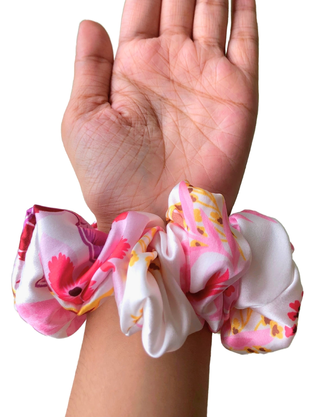 This set of 5 scrunchies is perfect for girls and women seeking comfort and style. Designed for regular use, these multi-colored, printed scrunchies add an attractive flair to any hairstyle. Their soft, durable material ensures a secure hold, making them ideal for daily wear while enhancing your hair's look effortlessly.