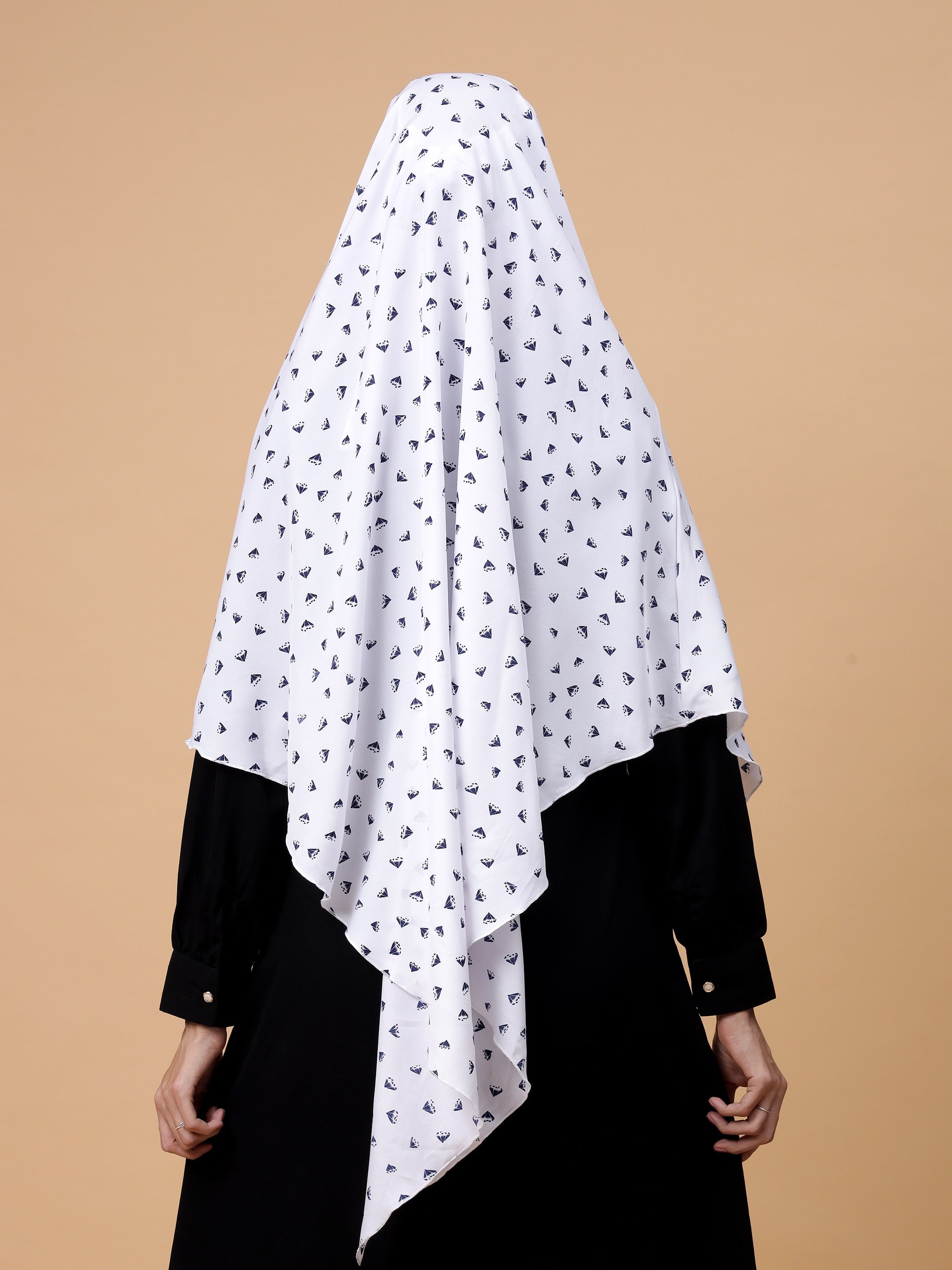 Experience elegance with our Single Layer White Crepe Diamond Printed Prayer Khimar Hijab, tailored for adult girls and women. Made from premium crepe fabric, it features a delicate diamond print for a sophisticated look. Perfect for prayers and daily wear, this hijab combines style with comfort, enhancing your spiritual journey with grace and modesty.