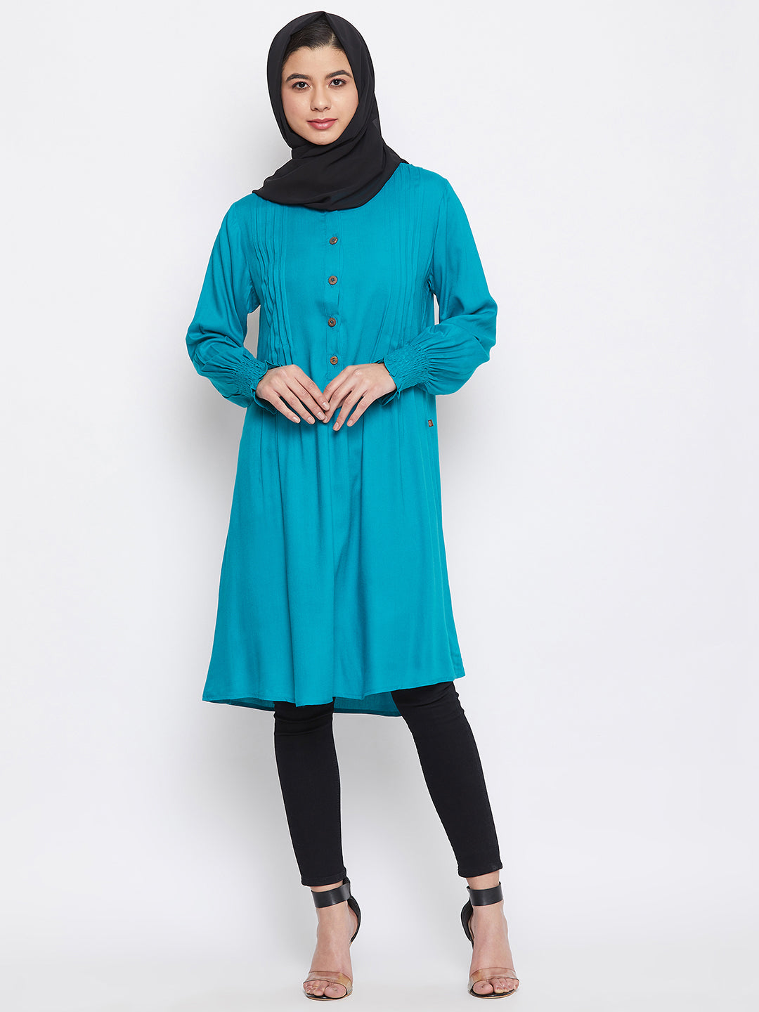 Whether you prefer a simple tunic or fancy something more elaborate, Nabia offers options to meet all your needs. From tunics featuring bold hues to vibrant shades and chic embellishments, our collection spans occasions and styles. This style has round neck, long sleeves, solid pattern, button closure and made of soft rayon fabric.