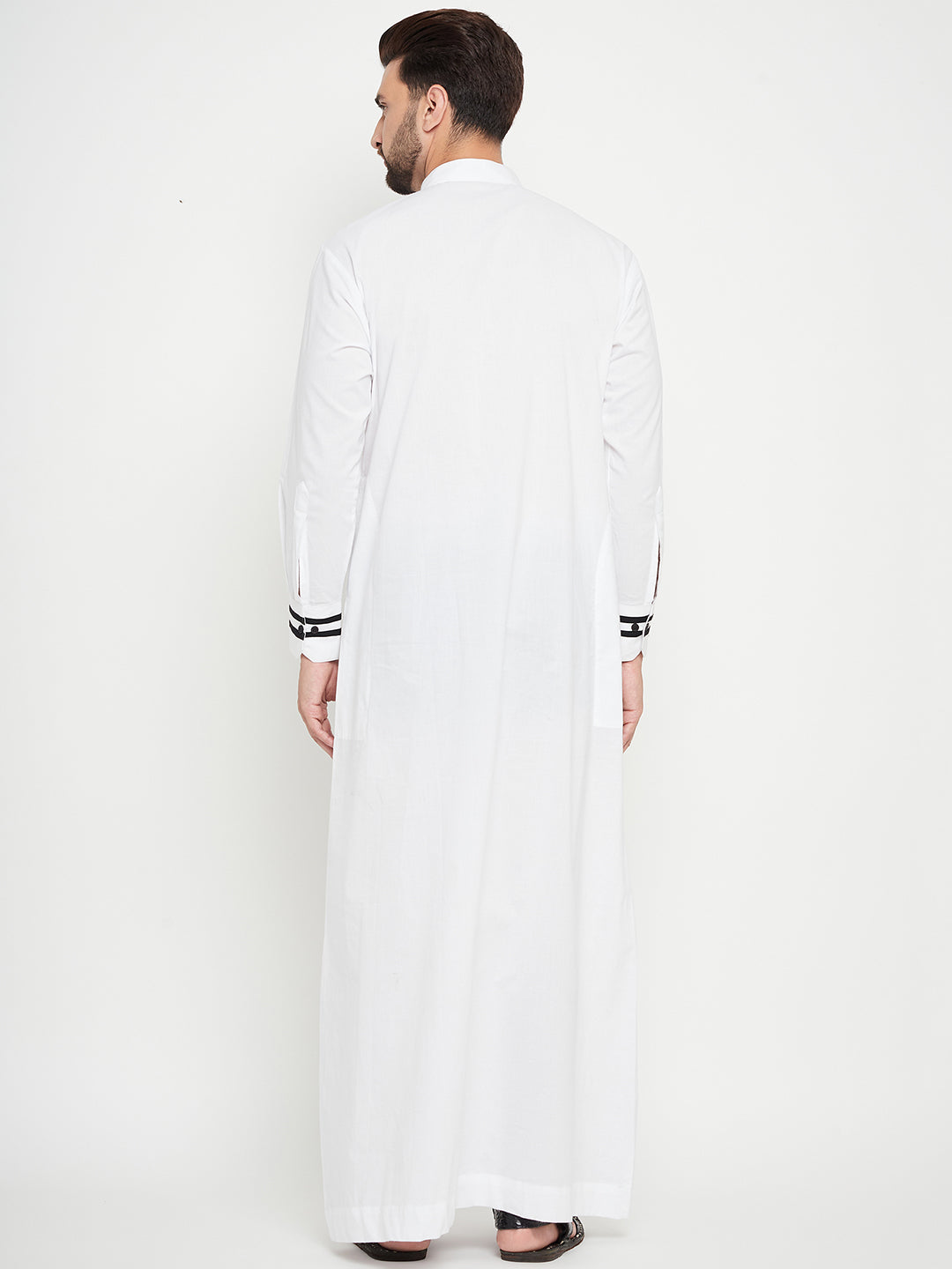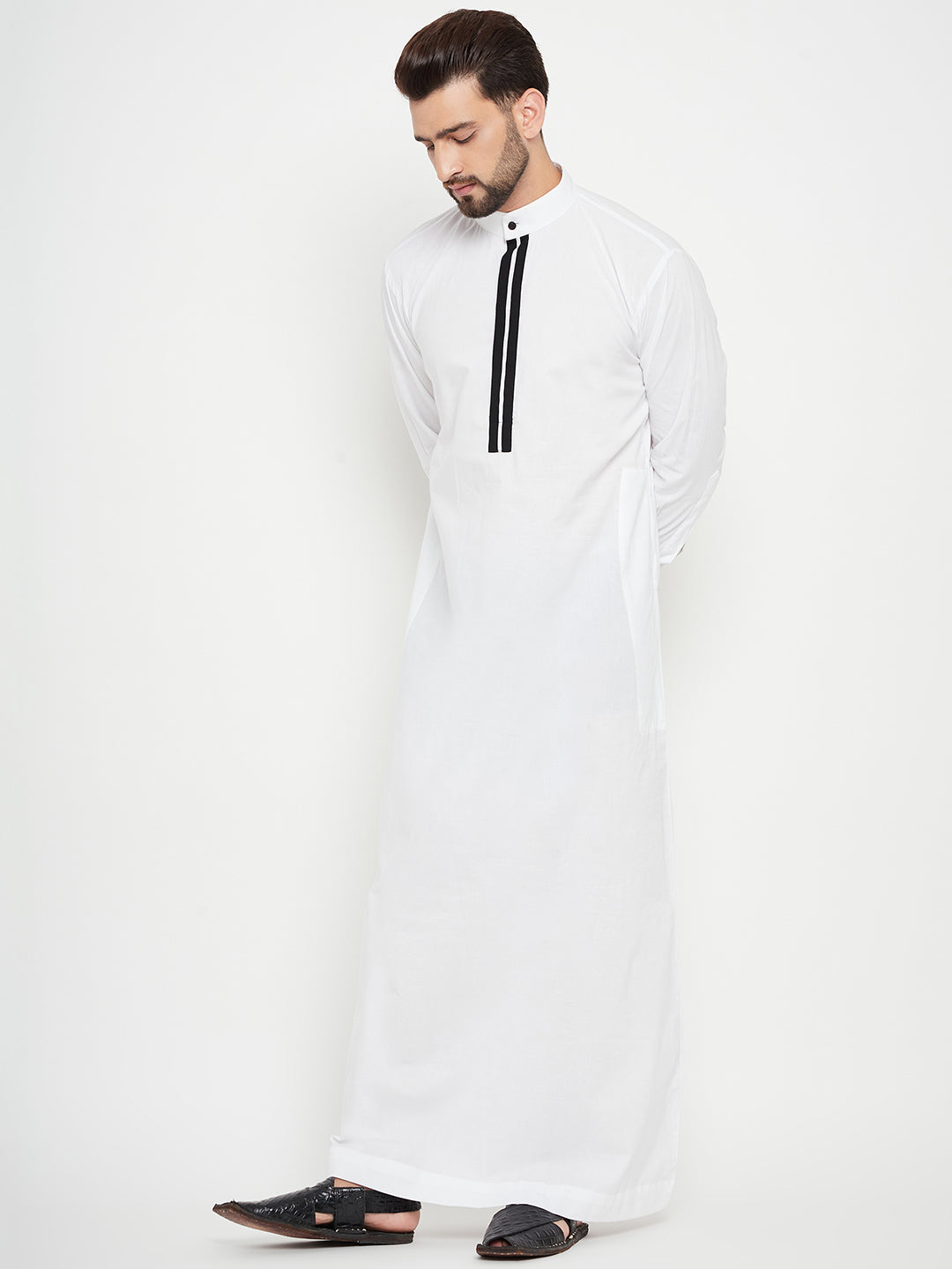 The Nabia Thobe/Jubba is a versatile garment tailored for Muslim men, ideal for daily or occasional wear. Crafted from poplin fabric, it provides full-length coverage with full sleeves, striking a harmonious balance between comfort and modesty. This attire is a perfect blend of traditional Islamic values and contemporary style, making it suitable for various occasions while maintaining a modest and elegant appearance.