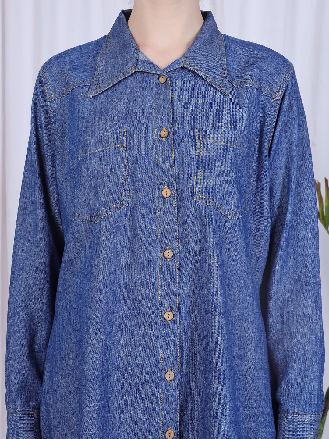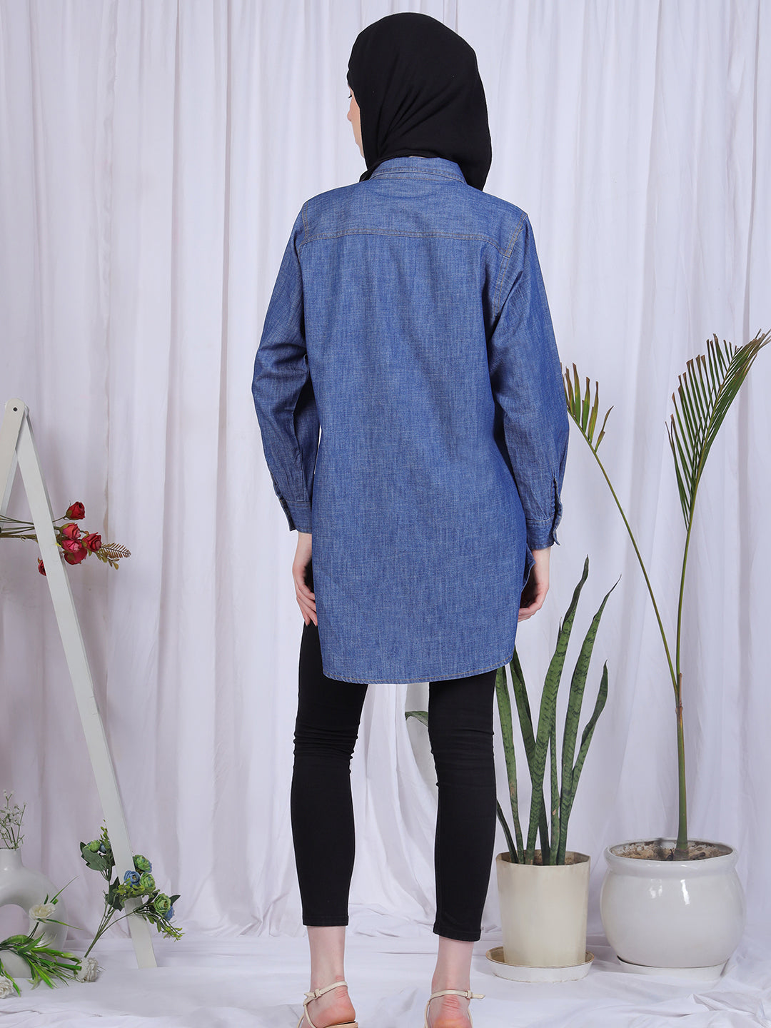 Discover the perfect blend of comfort and style with this solid denim shirt for women. Featuring a front-open design, it offers a modest and fashionable look. Ideal for everyday wear, this shirt combines the latest trends with timeless appeal. Embrace the newest fashion in a piece that's as comfortable as it is chic.